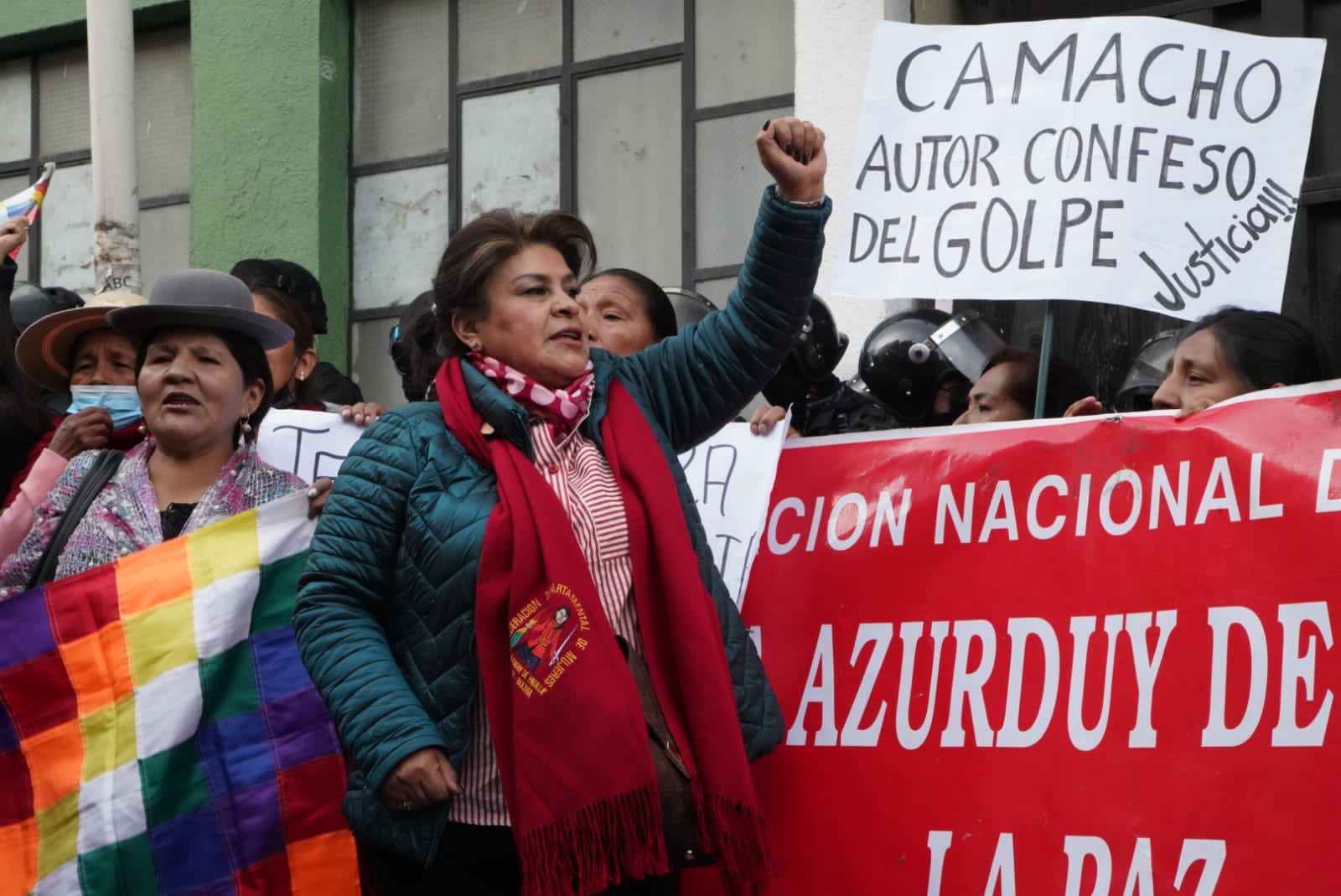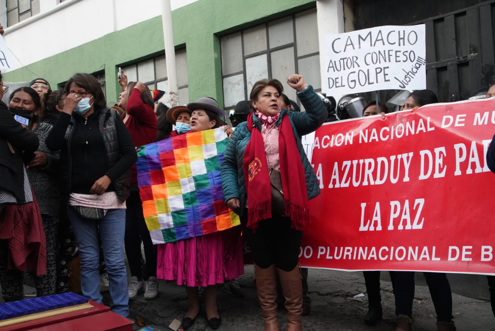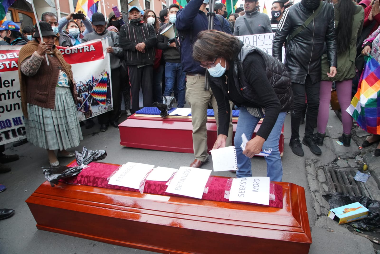 Familiares de las víctimas y heridos de las masacres de Senkata, Sacaba y Huallani instalan vigilia en puertas de la FELCC de La Paz y piden cárcel para Luis Fernando Camacho por el caso Golpe de Estado I