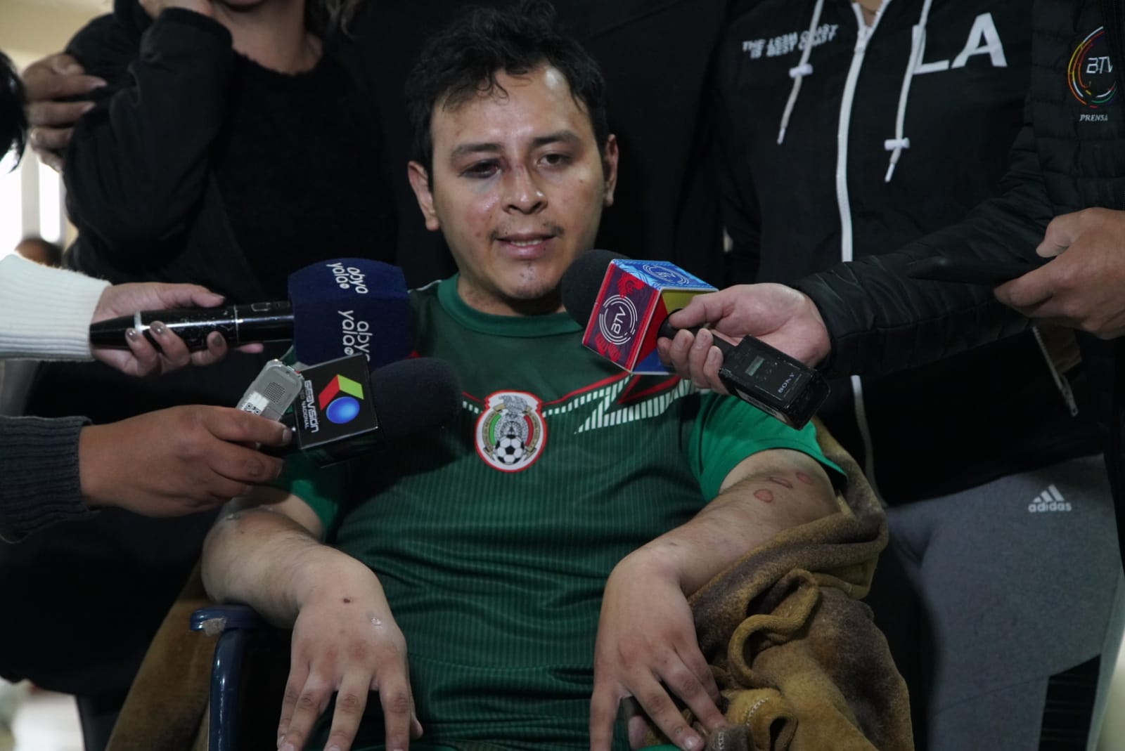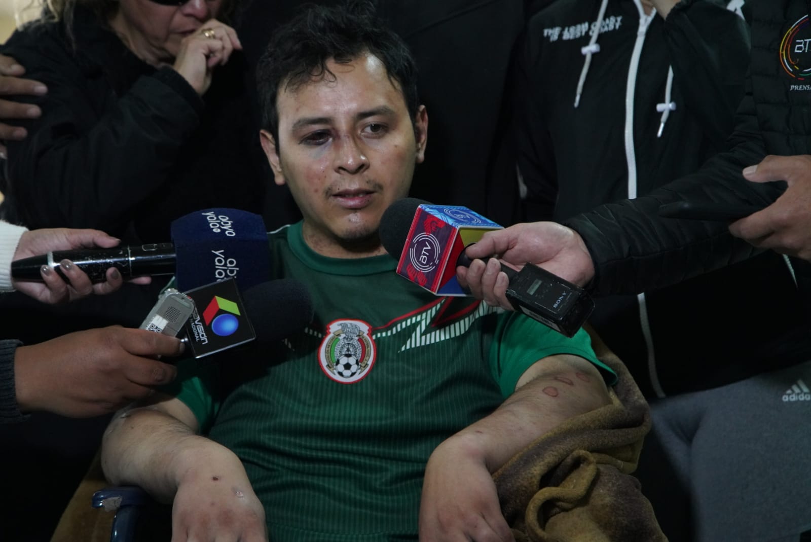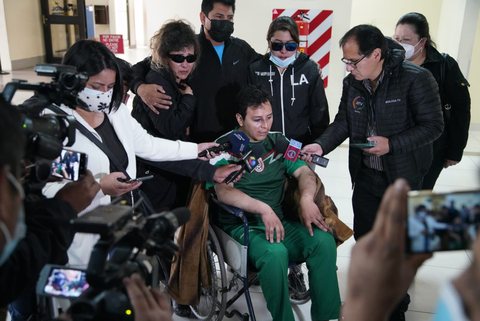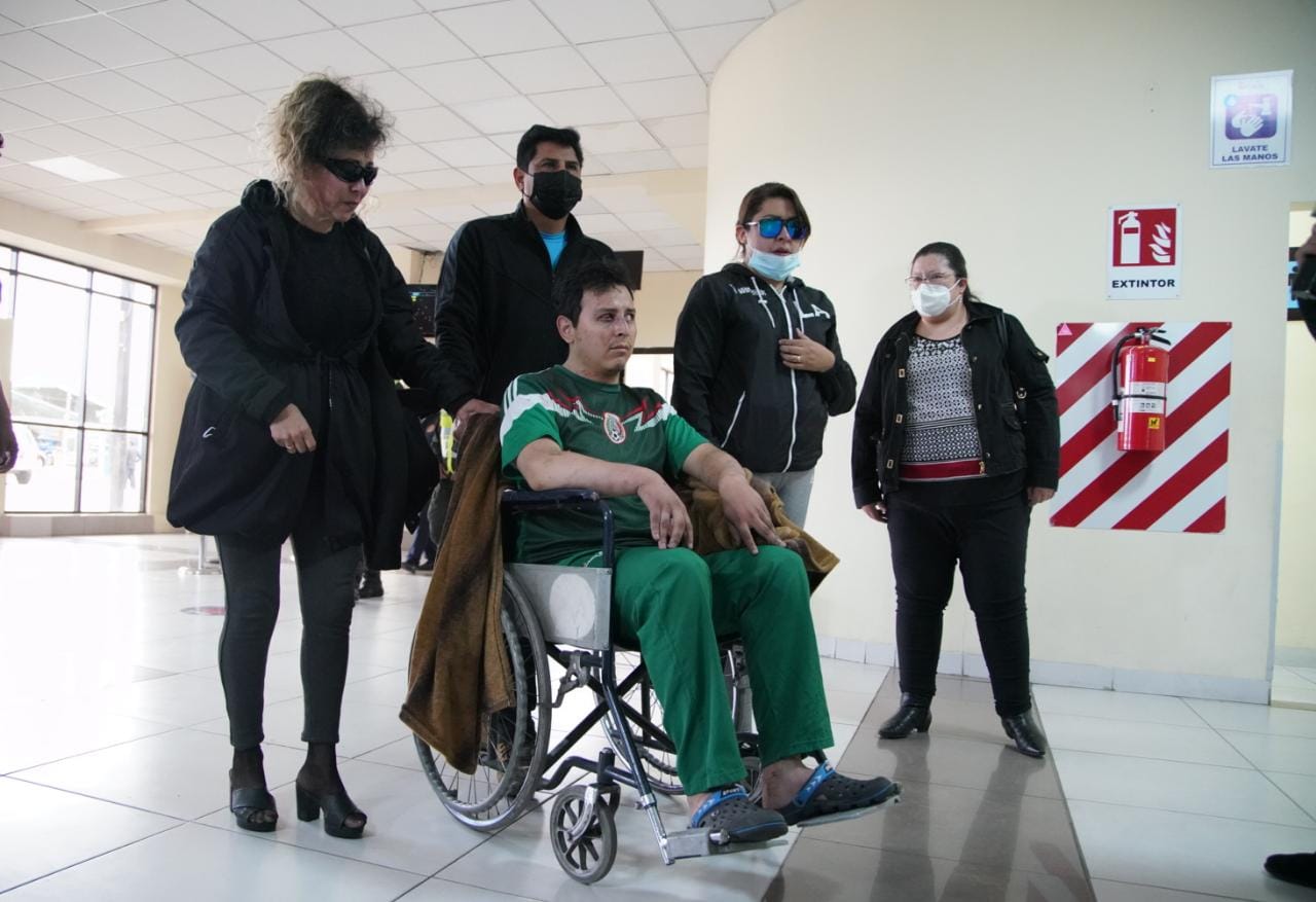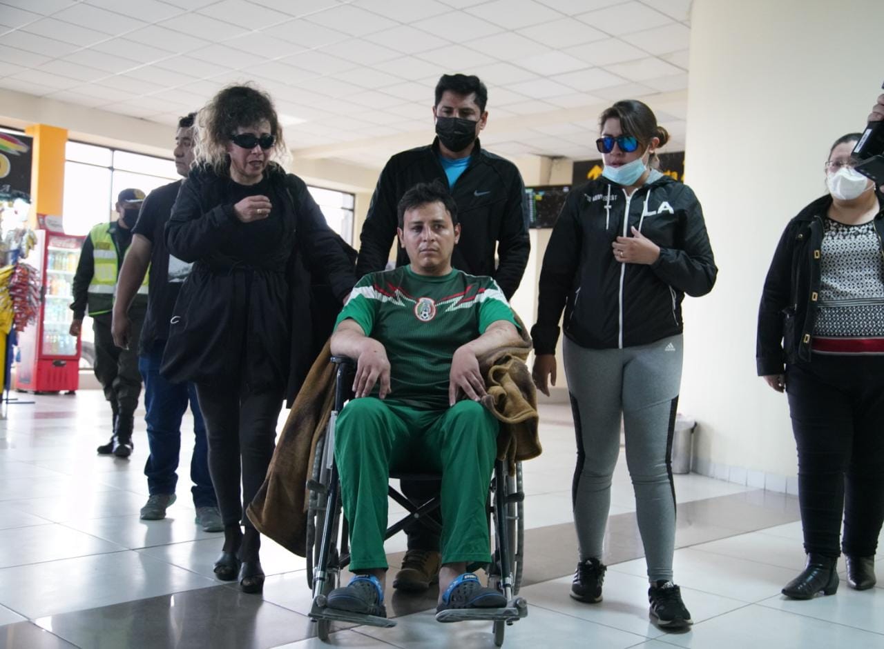 Llegada del funcionario de Impuestos Nacionales al Aeropuerto Internacional de El Alto, quien fue torturado por miembros de la Unión Juvenil CruceñistaUsuario ABIGalería Fotográfica 31 Diciembre 2022 Visto: 8805ShareTwittearshare with Whatsappshare with Telegram Fotos Jorge MamaniAnteriorSiguiente