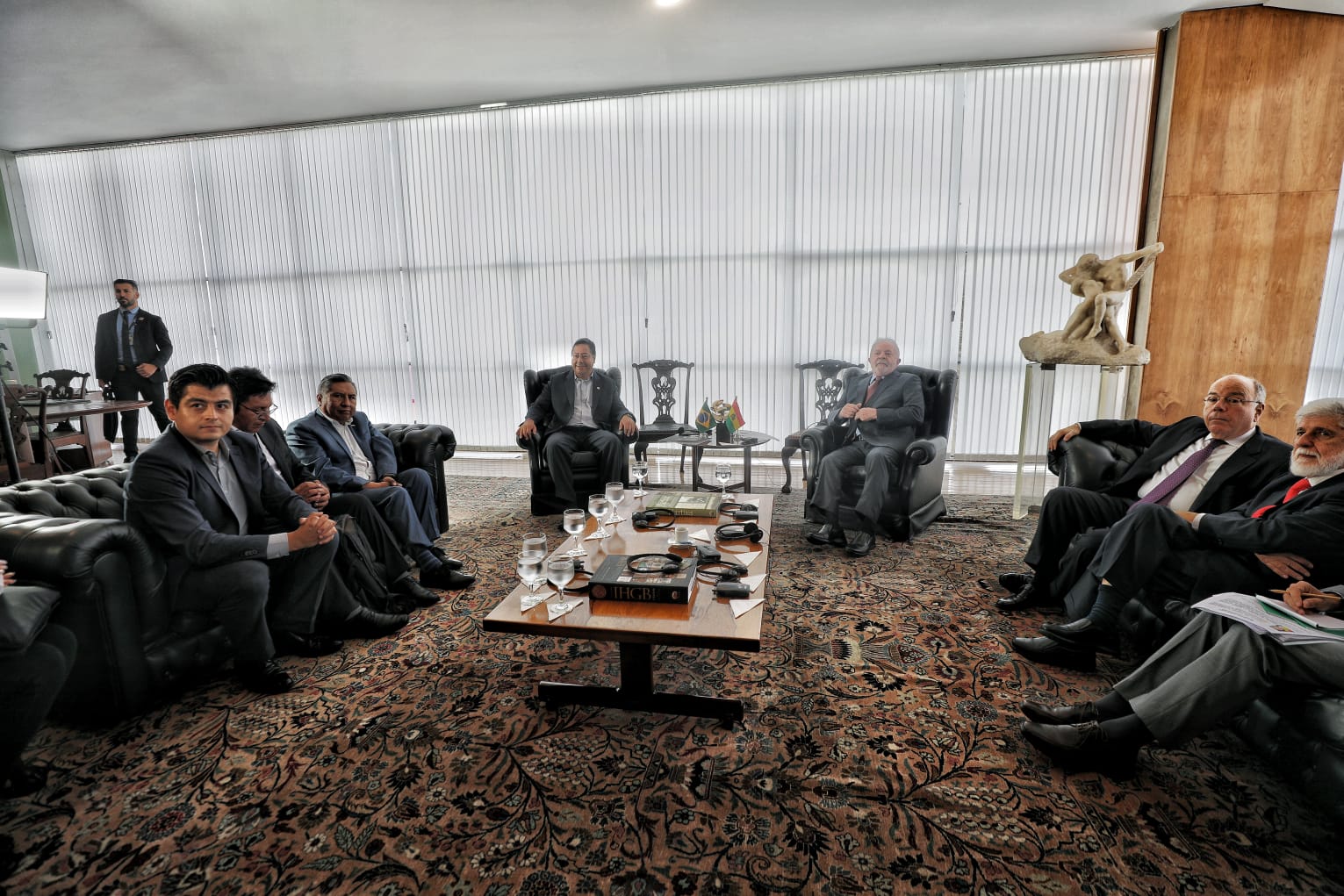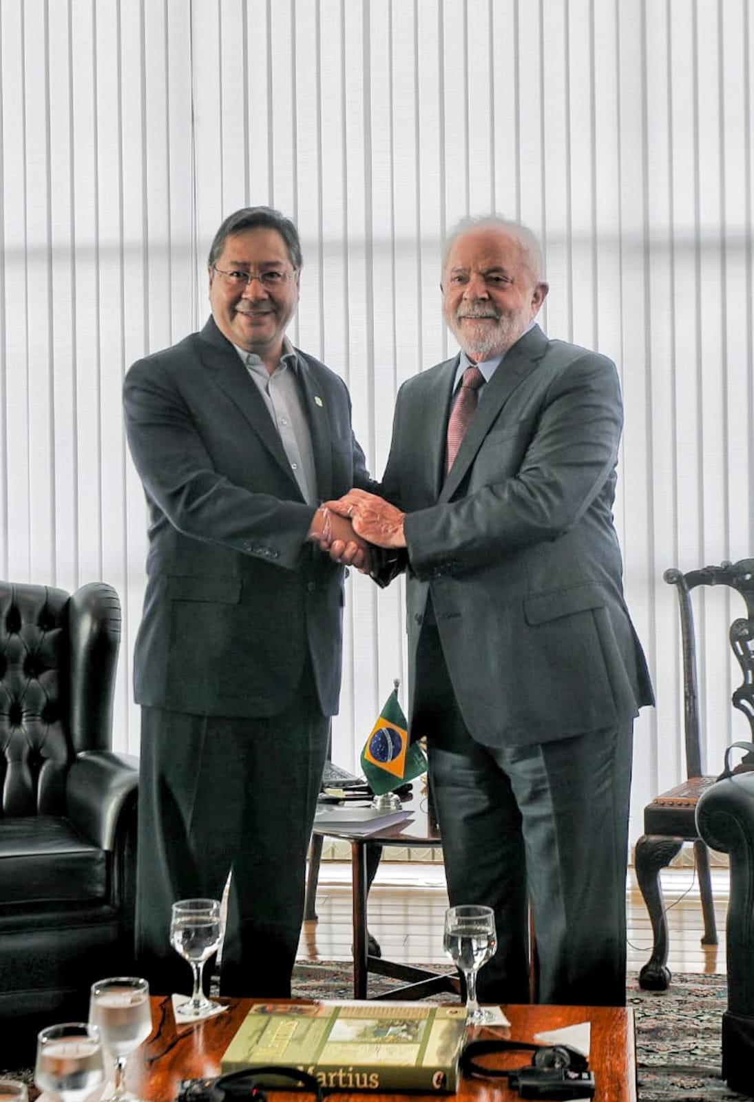 El Presidente del Estado Luis Arce Catacora, sostiene una reunión con su homólogo de Brasil, Luiz Inácio Lula da SilvaUsuario ABIGalería Fotográfica 02 Enero 2023 Visto: 11438ShareTwittearshare with Whatsappshare with Telegram Fuente: Comunicación PresidencialAnteriorSiguiente