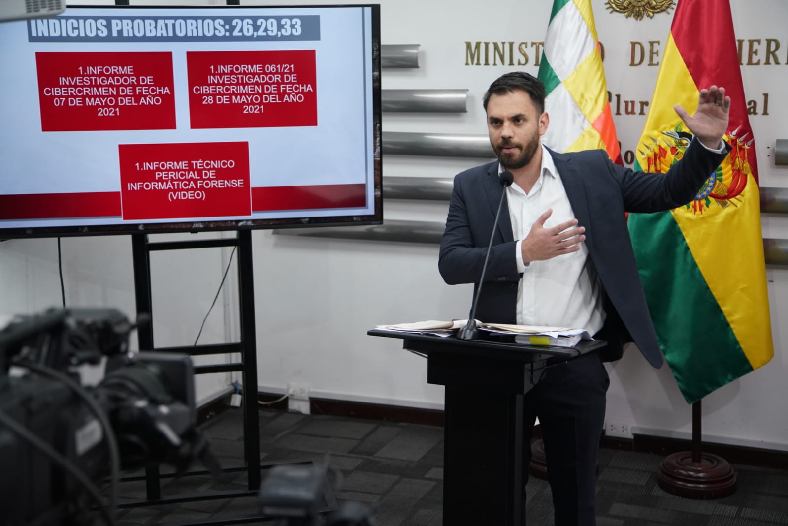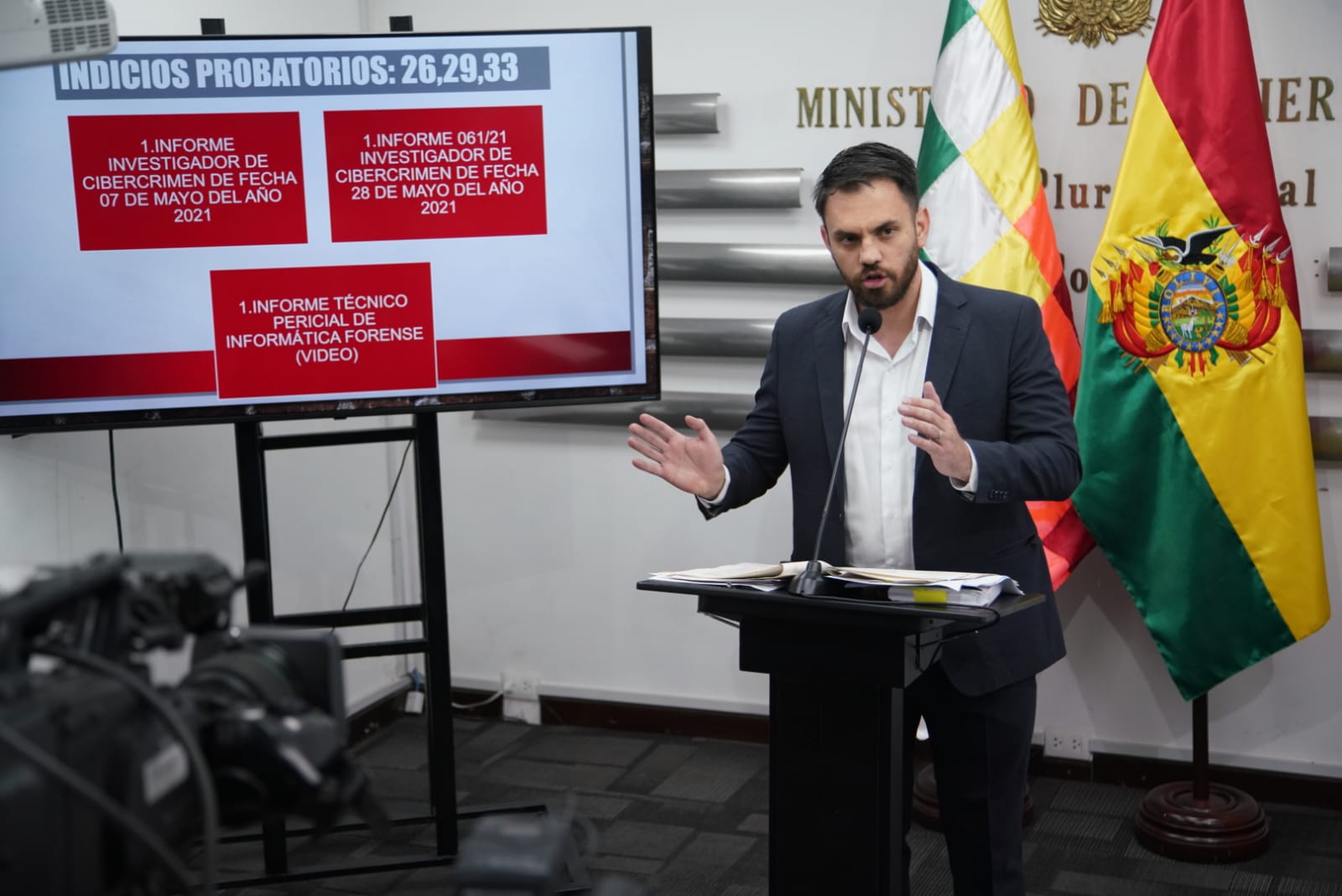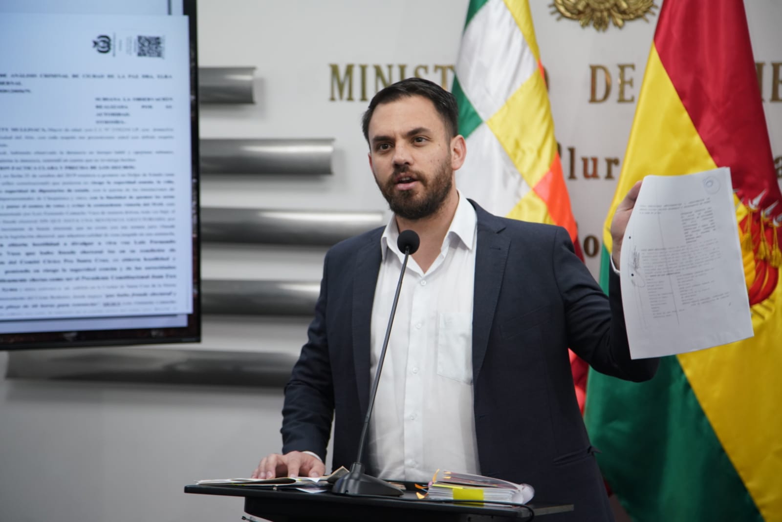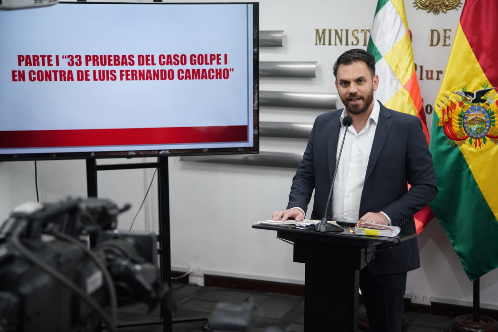 El ministro de Gobierno, Eduardo Del Castillo, brindo conferencia de prensa sobre la aprehensión de Luis Fernando Camacho por el Casó Golpe de Estado IUsuario ABIGalería Fotográfica 04 Enero 2023 Visto: 10581ShareTwittearshare with Whatsappshare with Telegram Fotos Jorge MamaniAnteriorSiguiente