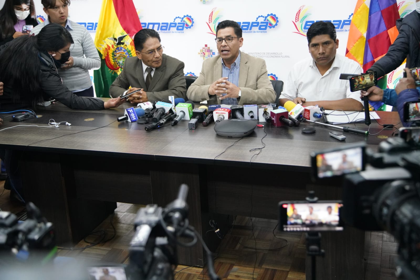 Franklin Flores, gerente general de Emapa y Jorge Silva, Viceministro de Defensa del Consumidor, garantizaron la provisión de carne de res al mercado internoUsuario ABIGalería Fotográfica 05 Enero 2023 Visto: 11516ShareTwittearshare with Whatsappshare with Telegram Fotos Jorge MamaniAnteriorSiguiente