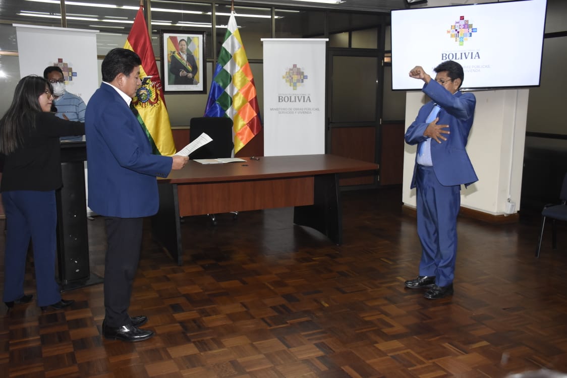 Ministro de Obras públicas y Vivienda, Edgar Montaño tomo posesión a Wilfredo Patricio Gutierrez Carrasco como nuevo Viceministro de Transportes Usuario ABIGalería Fotográfica 09 Enero 2023 Visto: 12590ShareTwittearshare with Whatsappshare with Telegram FOTOS: Gonzalo JallasiAnteriorSiguiente