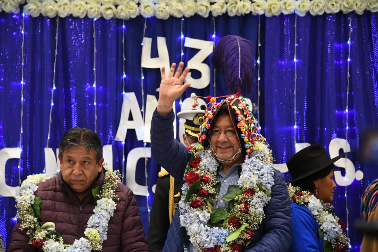 El Presidente del Estado Plurinacional Luis Arce Catacora, participa del XLIII Aniversario de Fundación de la CNMCIOB "BS" en la ciudad de La PazUsuario ABIGalería Fotográfica 10 Enero 2023 Visto: 11643ShareTwittearshare with Whatsappshare with Telegram FOTOS: Foto: Josué Cortéz y Comunicación Presidencial AnteriorSiguiente