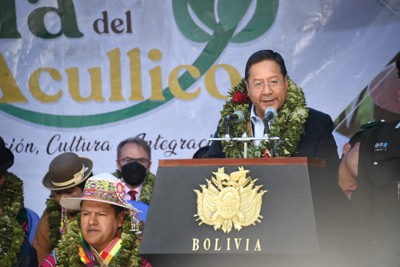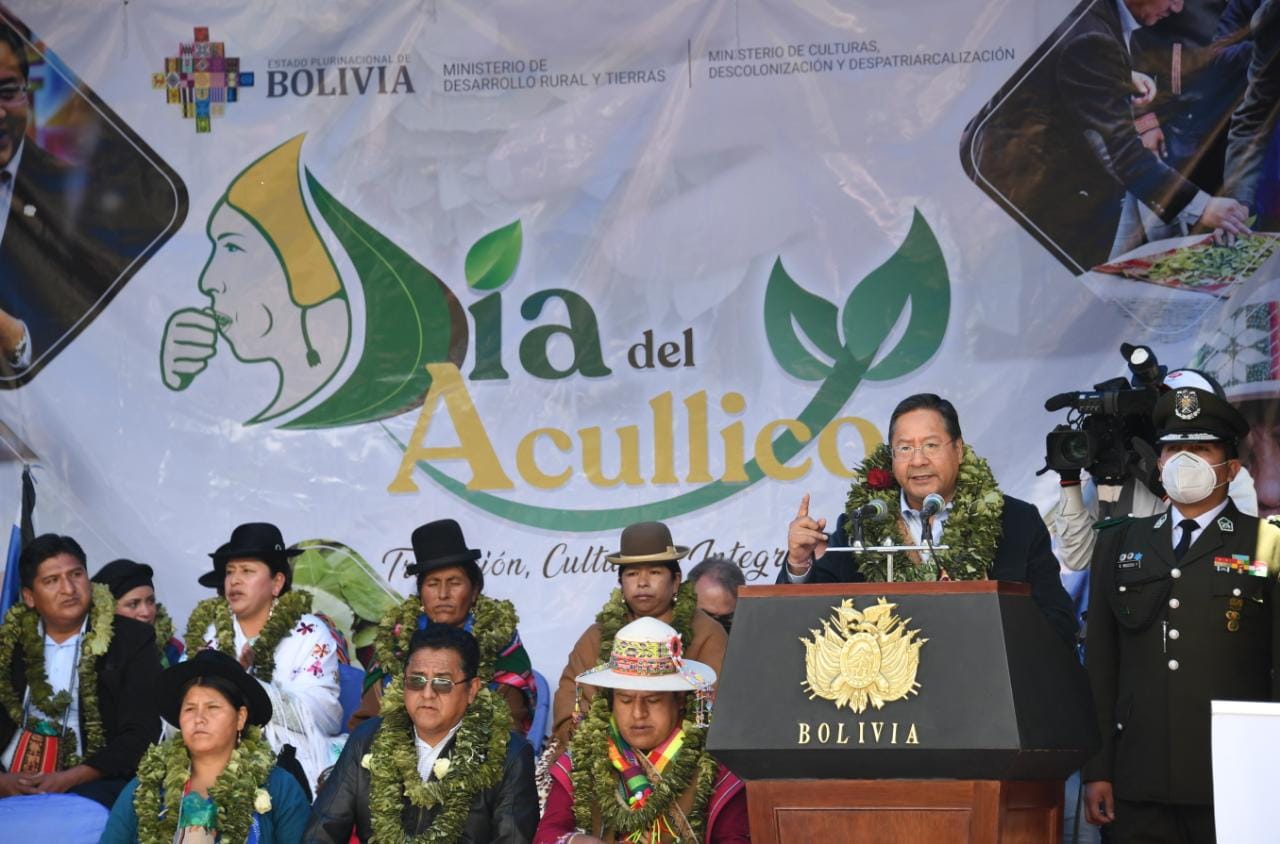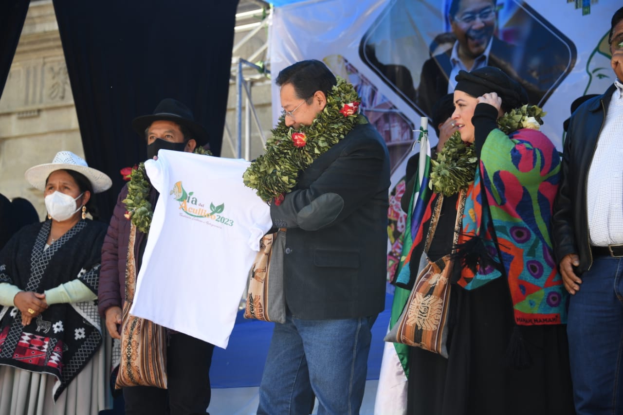 El presidente del Estado Plurinacional de Bolivia Luis Arce y el vicepresidente David Choquehuanca participaron del Día Nacional del Acullico, en plaza Murillo (Parte 01)