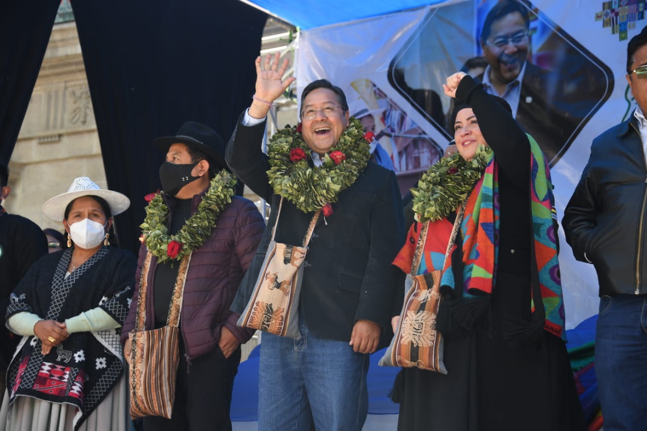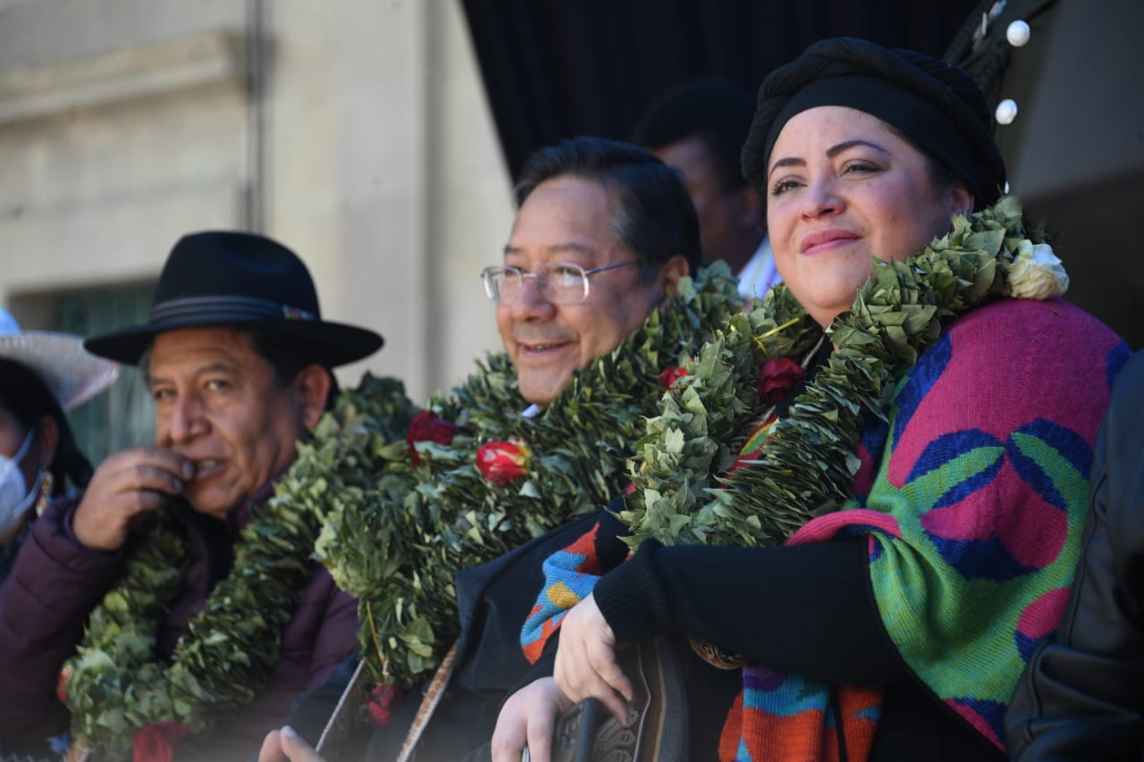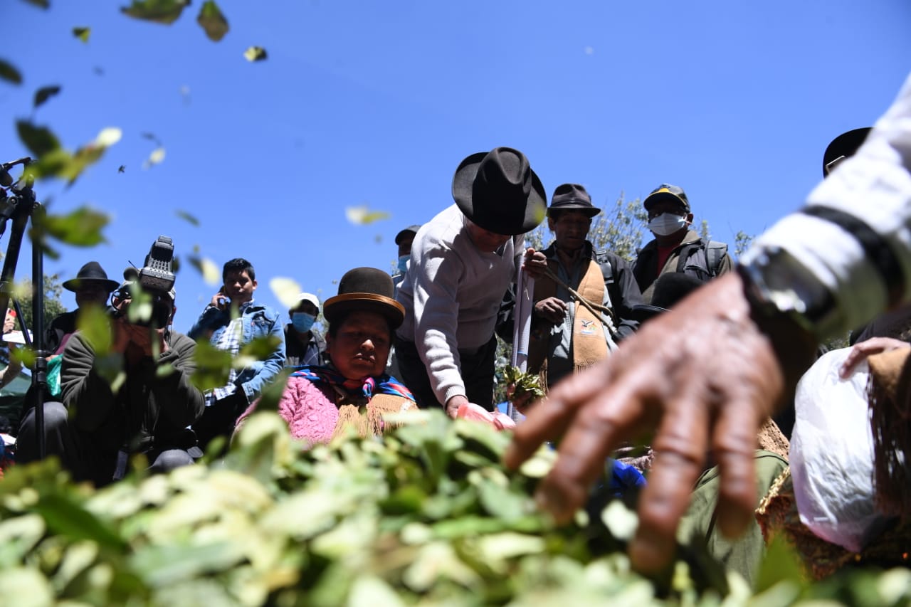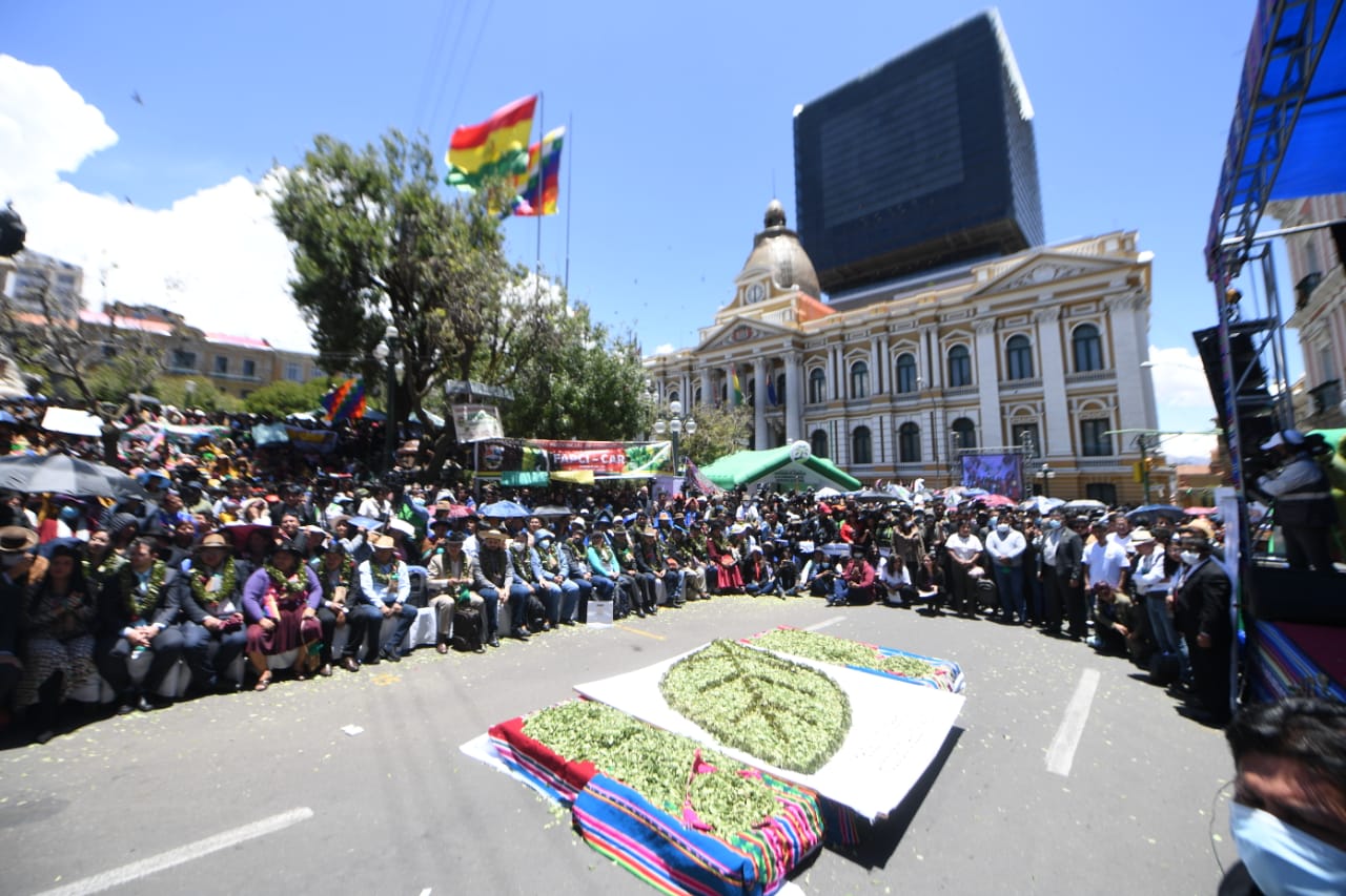 El presidente del Estado Plurinacional de Bolivia Luis Arce y el vicepresidente David Choquehuanca participaron del Día Nacional del Acullico, en plaza Murillo (Parte 01)