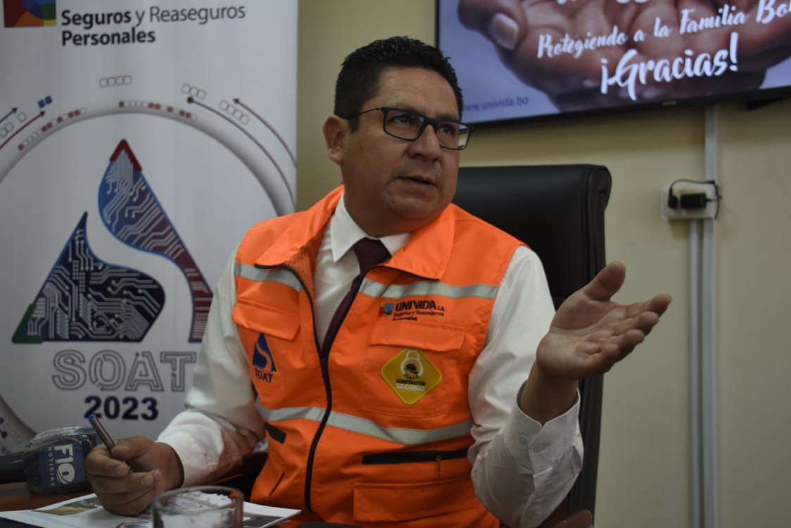 El gerente general de Univida, Larry González indicó que más de un millón de vehículos ya cuentan con el SOATUsuario ABIGalería Fotográfica 12 Enero 2023 Visto: 11117ShareTwittearshare with Whatsappshare with Telegram FOTOS: Gonzalo JallasiAnteriorSiguiente