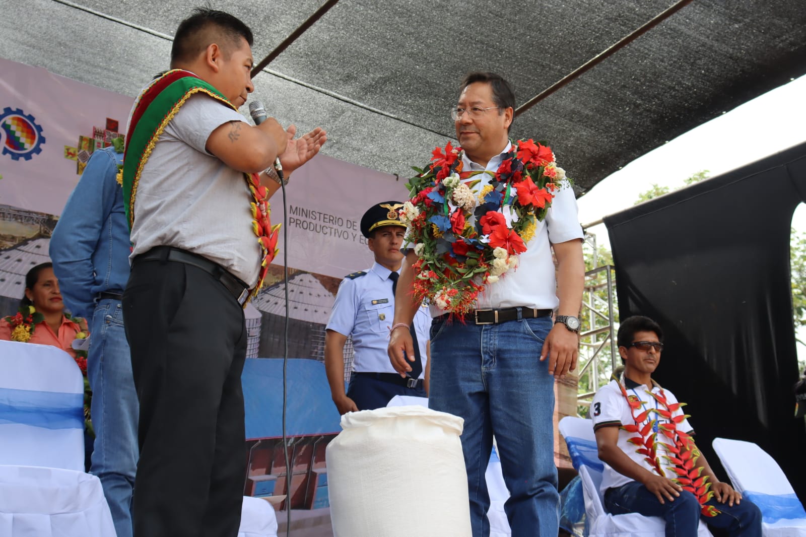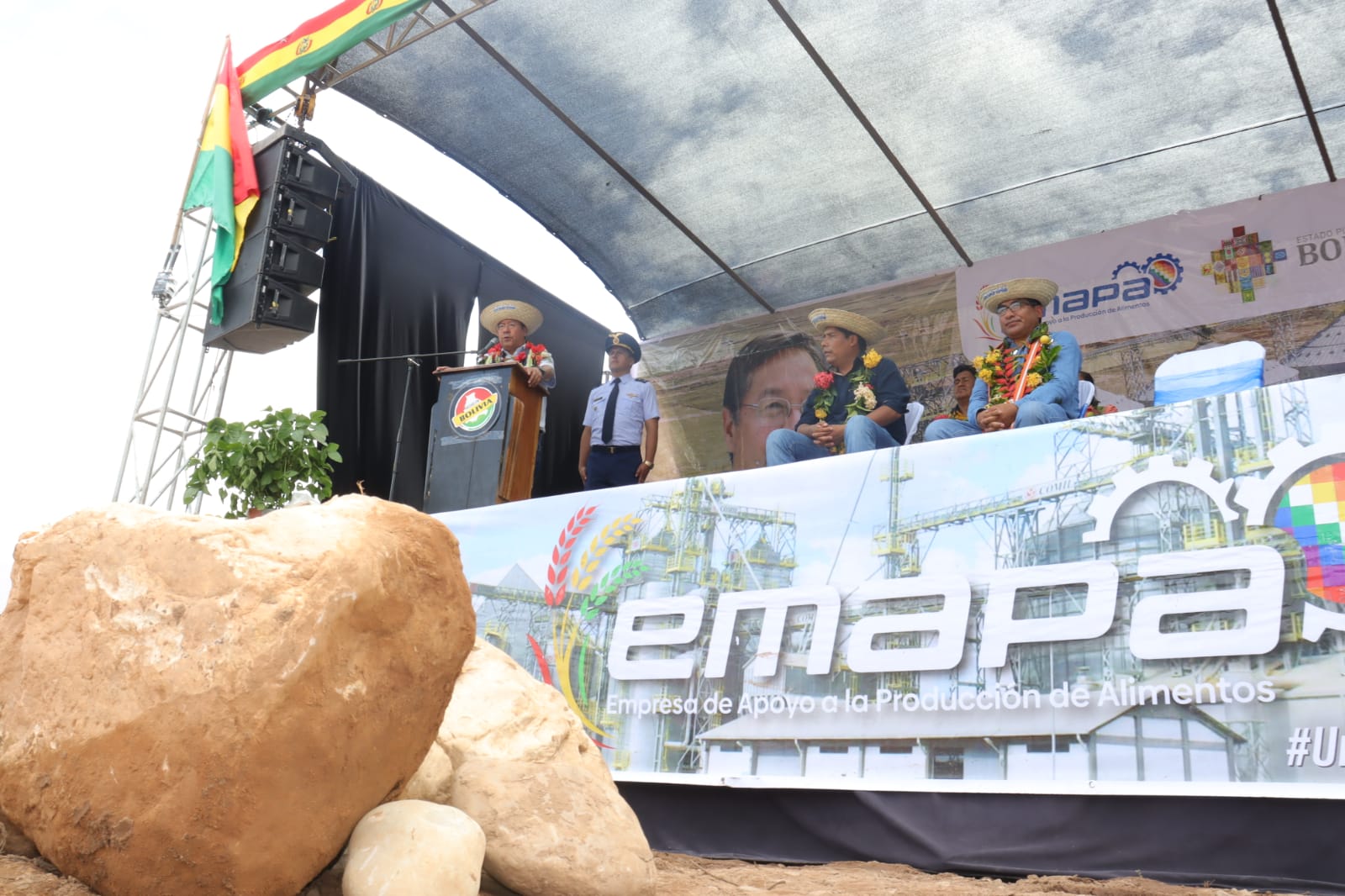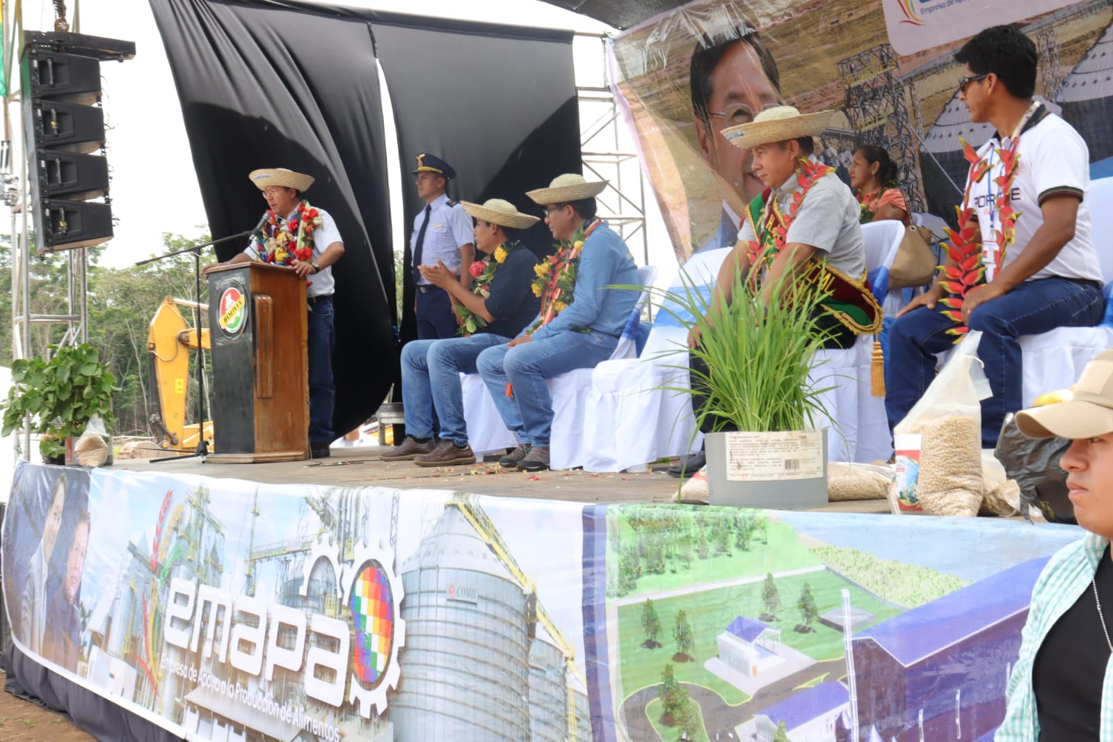 El Presidente del Estado Plurinacional de Bolivia Luis Arce Catacora colocó la piedra fundamental que da inicio a la construcción de una Planta de Acopio, Transformación y Almacenamiento de Granos en Ixiamas