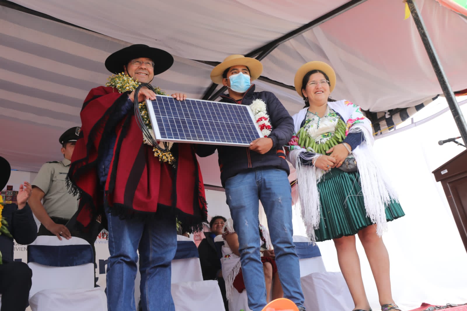 El Presidente del Estado Luis Arce entrega viviendas sociales y un sistema fotovoltaico de electrificación domiciliaria en el municipio de El Puente, TarijaUsuario ABIGalería Fotográfica 13 Enero 2023 Visto: 11122ShareTwittearshare with Whatsappshare with Telegram Fuente: Comunicación PresidencialAnteriorSiguiente