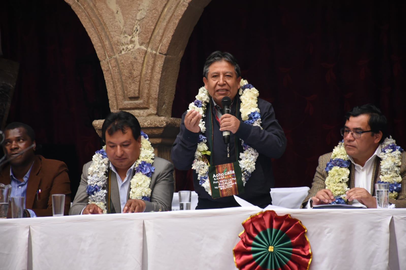 El Vicepresidente del Estado Plurinacional de Bolivia, David Choquehuanca Céspedes, participó en la Sesión Ampliada de Alcaldes y Presidentes de Concejos Municipales de AGAMDEPAZ, realizada en el hotel Torino