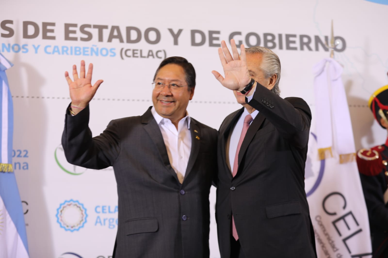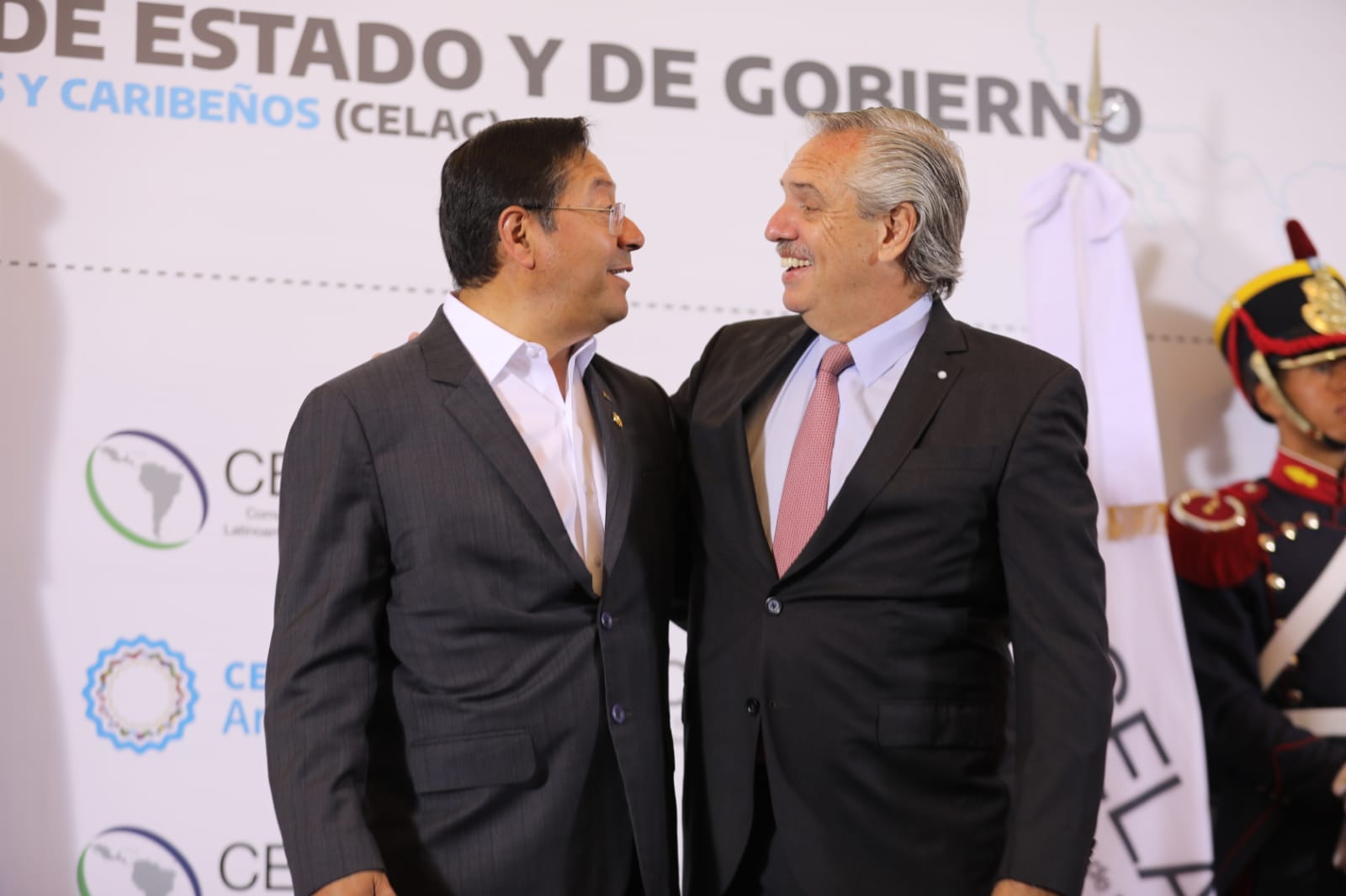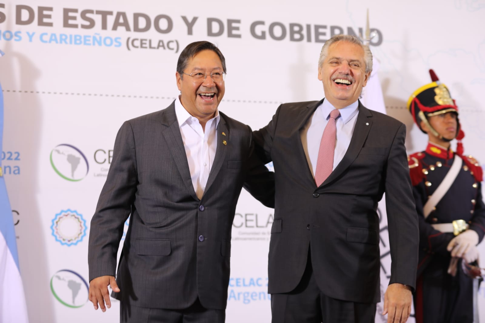 El Presidente de Argentina, Alberto Fernández, da la bienvenida a la Cumbre de la CELAC, al presidente del Estado Plurinacional de Bolivia, Luis Alberto Arce CatacoraUsuario ABIGalería Fotográfica 24 Enero 2023 Visto: 8270ShareTwittearshare with Whatsappshare with Telegram Fuente: Comunicación PresidencialAnteriorSiguiente