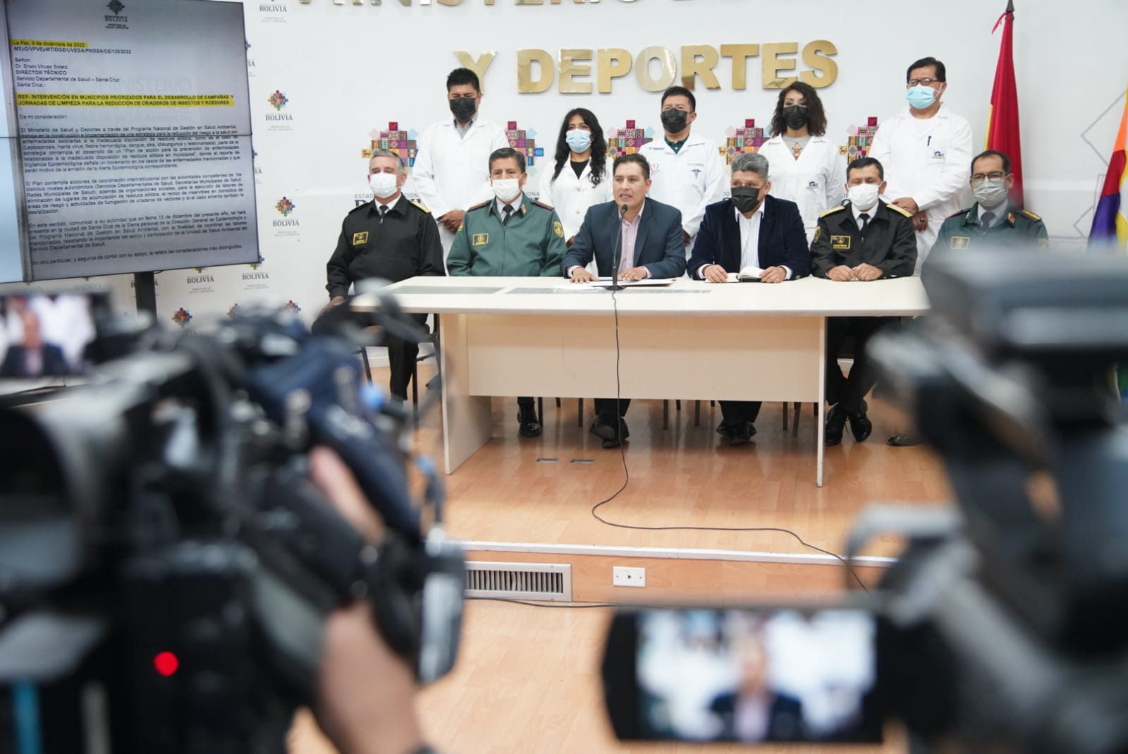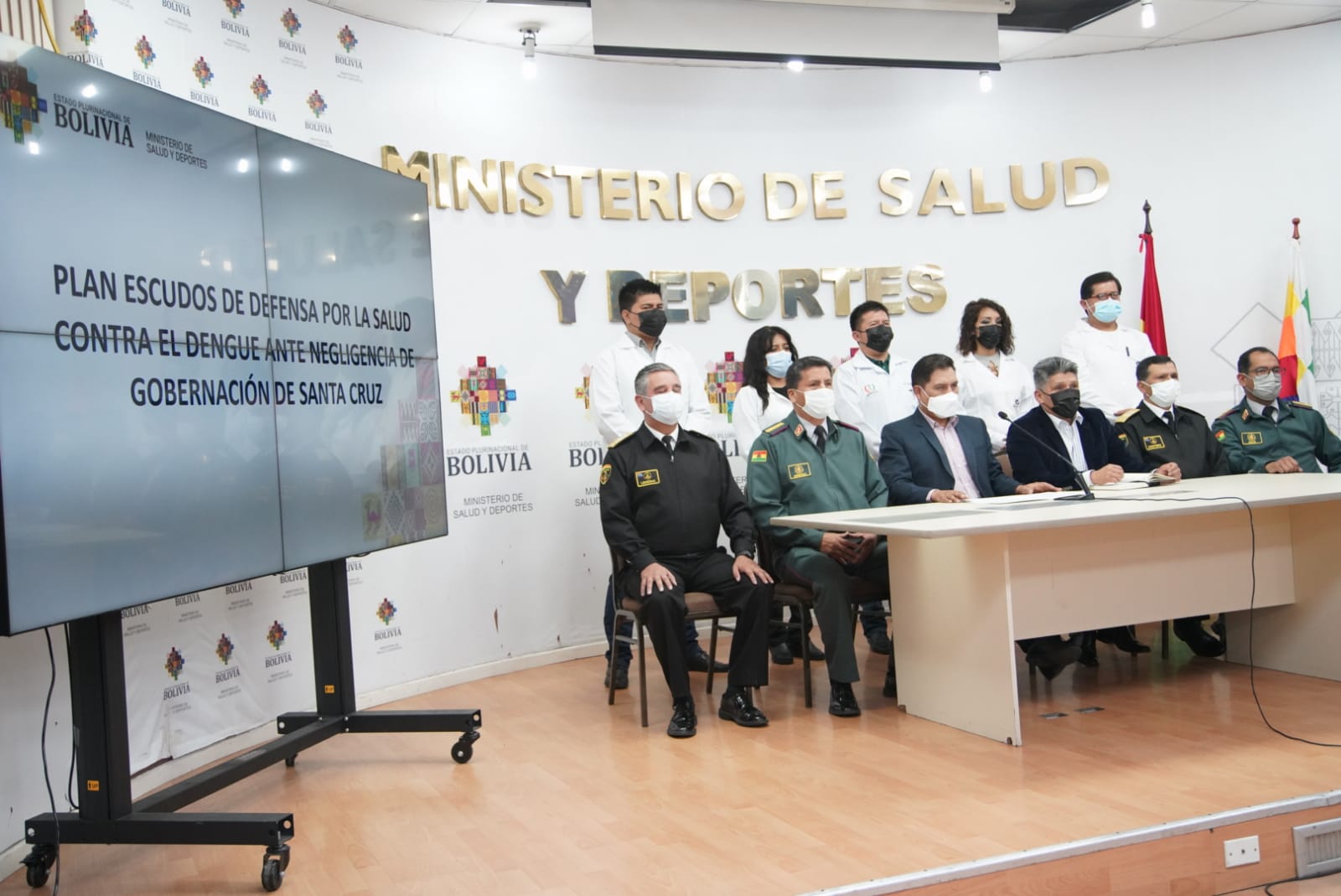 El Ministerio de Salud y Ministerio de Defensa, presentaron el plan de escudo de defensa por la salud contra el dengue en la ciudad de Santa Cruz ABI USUARIO HISTORICOGalería Fotográfica 28 Enero 2023 Visto: 8722ShareTwittearshare with Whatsappshare with Telegram Fuente: Jorge MamaniAnteriorSiguiente