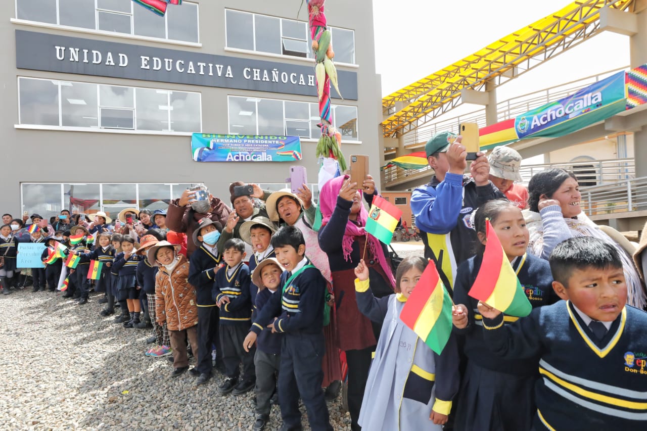 El Presidente del Estado Luis Arce entregó la Unidad Educativa Chañocahua en el municipio de Achocalla, La PazUsuario ABIGalería Fotográfica 30 Enero 2023 Visto: 8792ShareTwittearshare with Whatsappshare with Telegram Fuente: Comunicación Presidencial AnteriorSiguiente