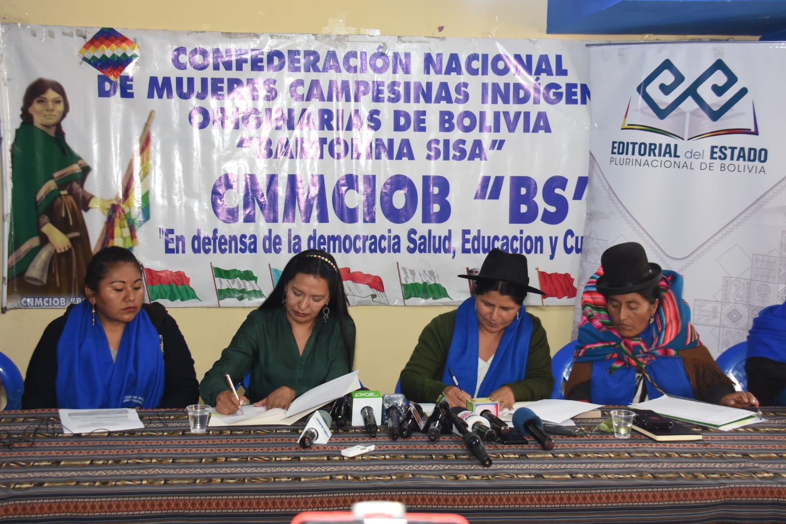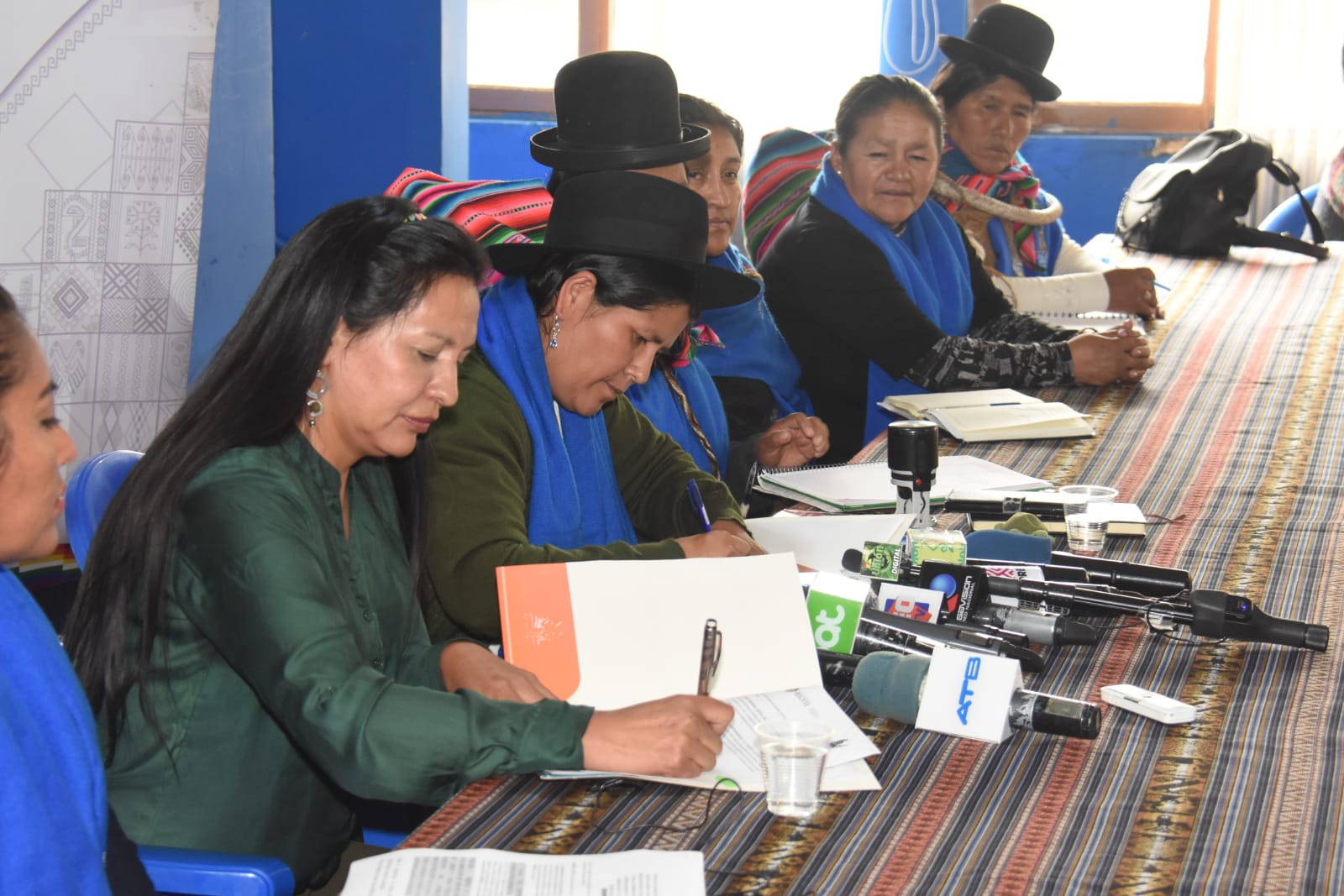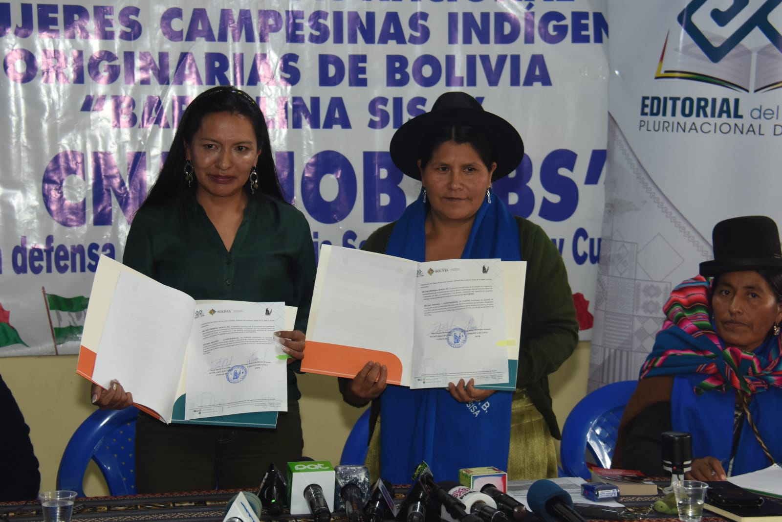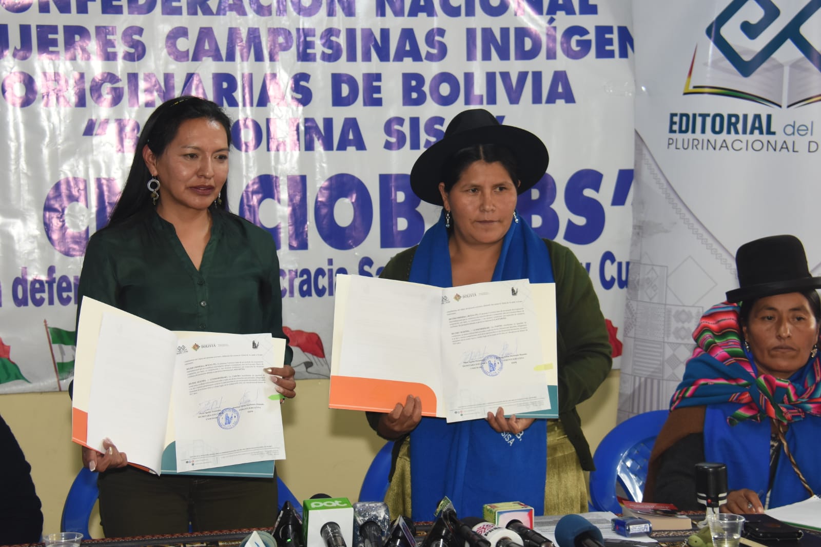 Firma de convenio entre la Confederación Nacional de Mujeres Campesinas Indígenas Originarias de Bolivia Bartolina Sisa y la Editorial del Estado Plurinacional de BoliviaUsuario ABIGalería Fotográfica 01 Febrero 2023 Visto: 12427ShareTwittearshare with Whatsappshare with Telegram Foto: Gonzalo JallasiAnteriorSiguiente