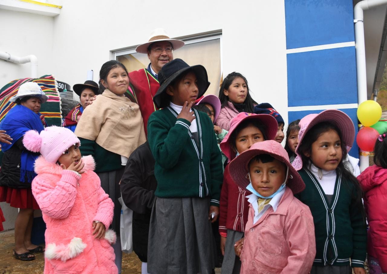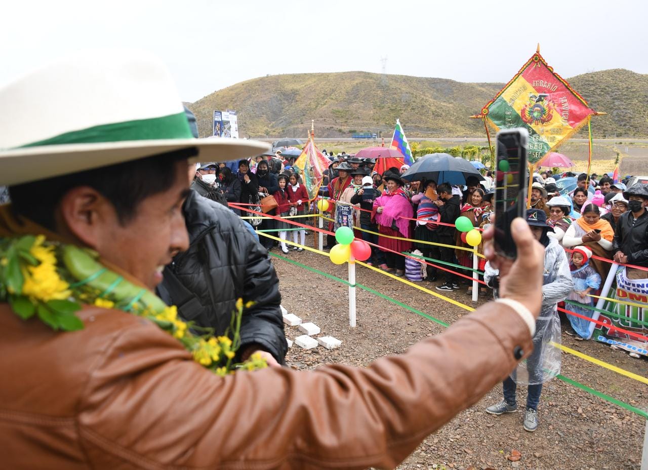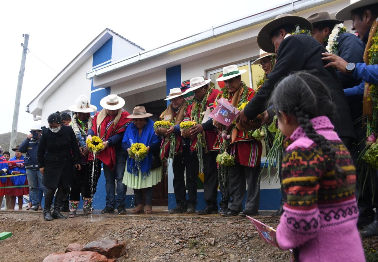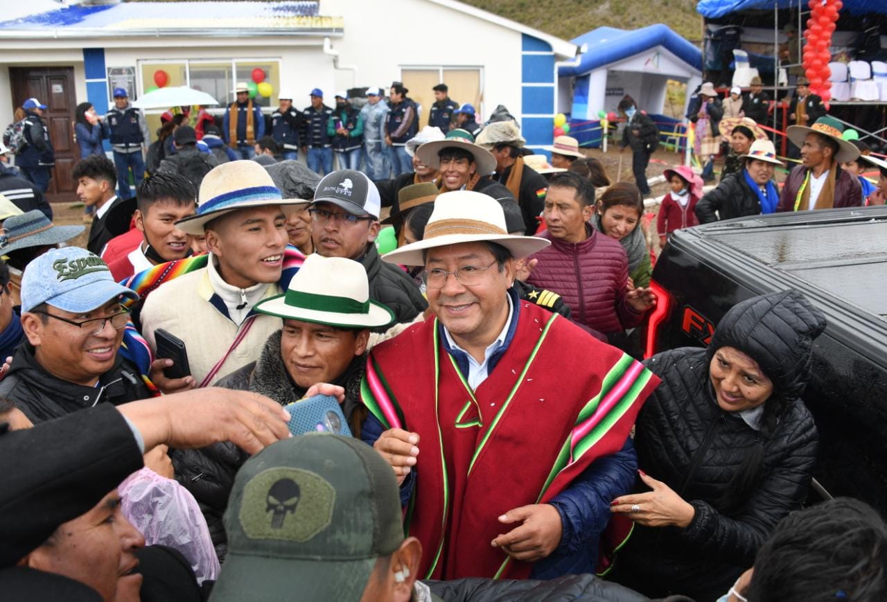 El presidente del Estado Luis Alberto Arce entrega el proyecto de vivienda nueva autoconstrucción en el municipio de Soracachi de la Provincia Cercado, Oruro