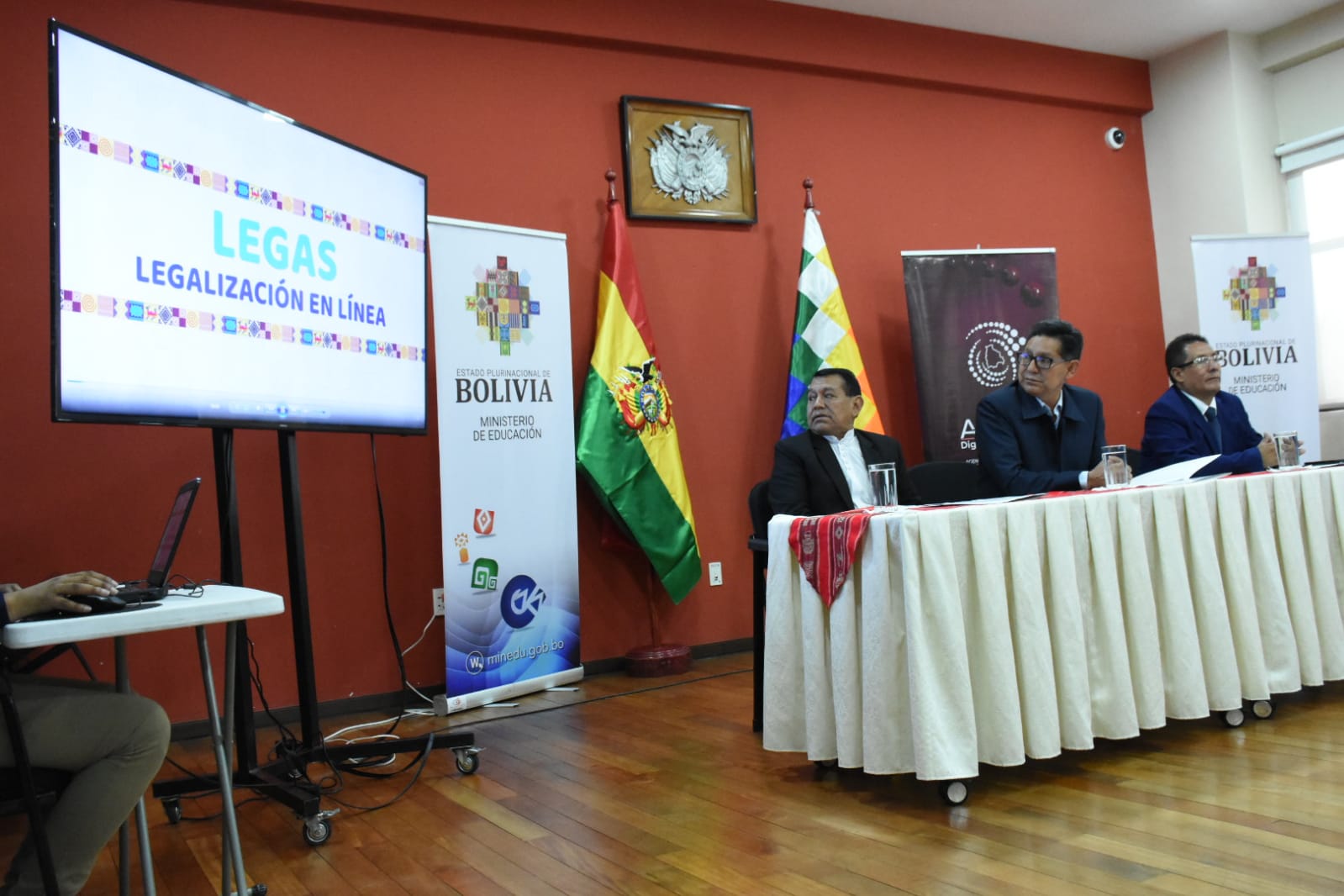 El ministro de Educación, Edgar Pary, realizó el lanzamiento del sistema de Legalización y Certificaciones digitales - legaUsuario ABIGalería Fotográfica 07 Febrero 2023 Visto: 12106ShareTwittearshare with Whatsappshare with Telegram Fotos Jorge MamaniAnteriorSiguiente