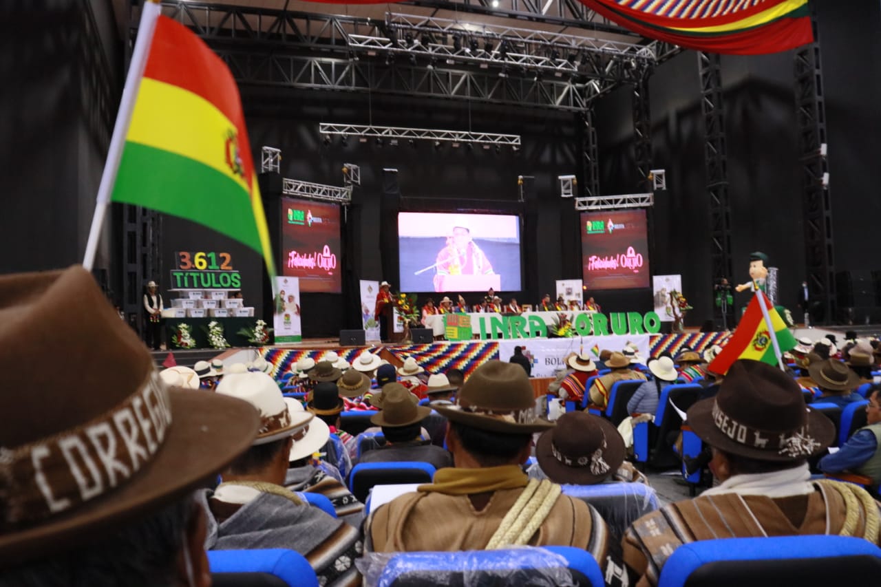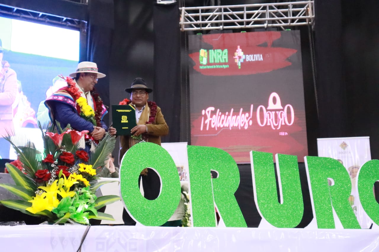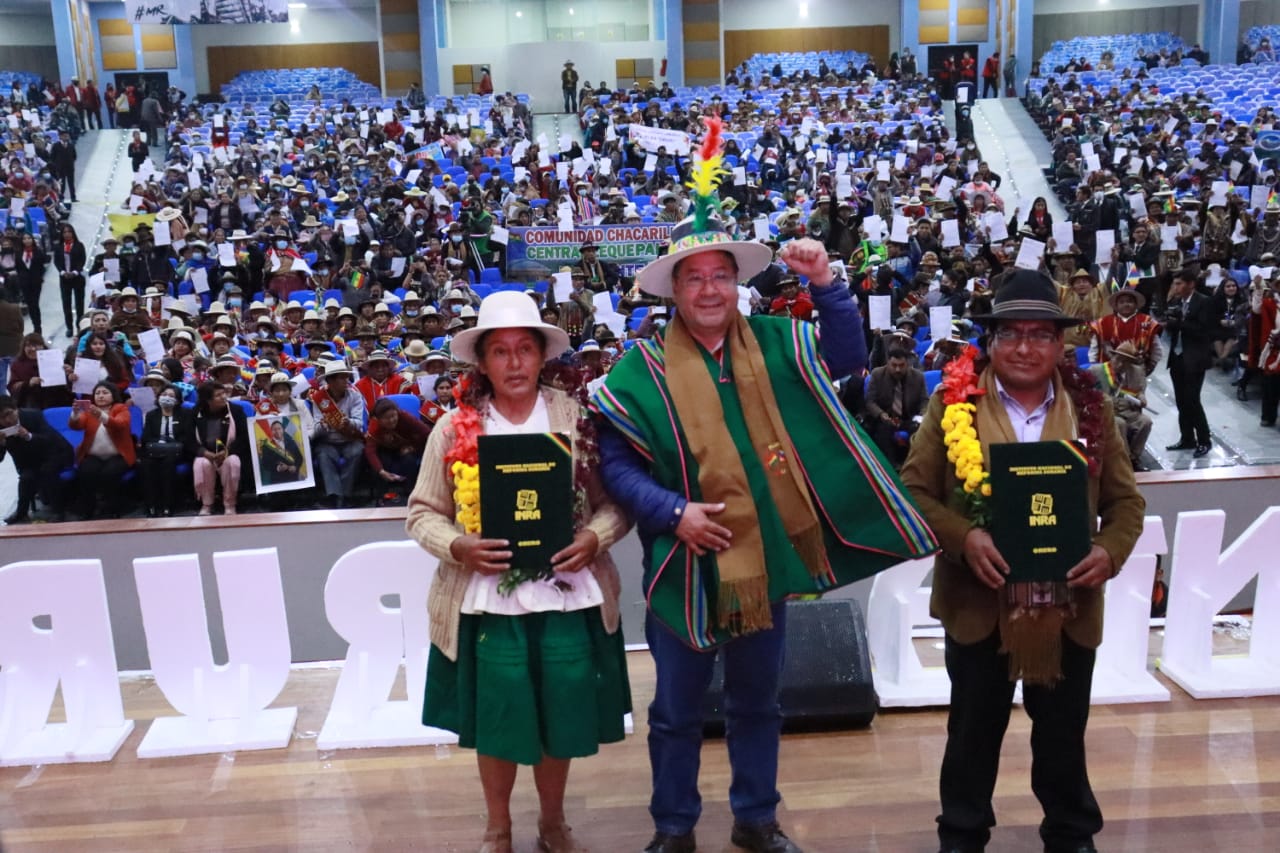 El Presidente del Estado Luis Arce Catacora entrega 3.612 títulos agrarios de propiedad en OruroUsuario ABIGalería Fotográfica 10 Febrero 2023 Visto: 11759ShareTwittearshare with Whatsappshare with Telegram Fuente: Comunicación PresidencialAnteriorSiguiente
