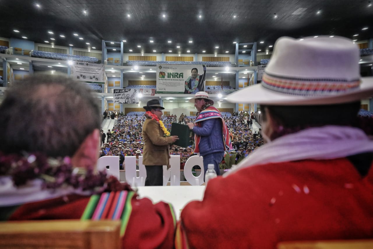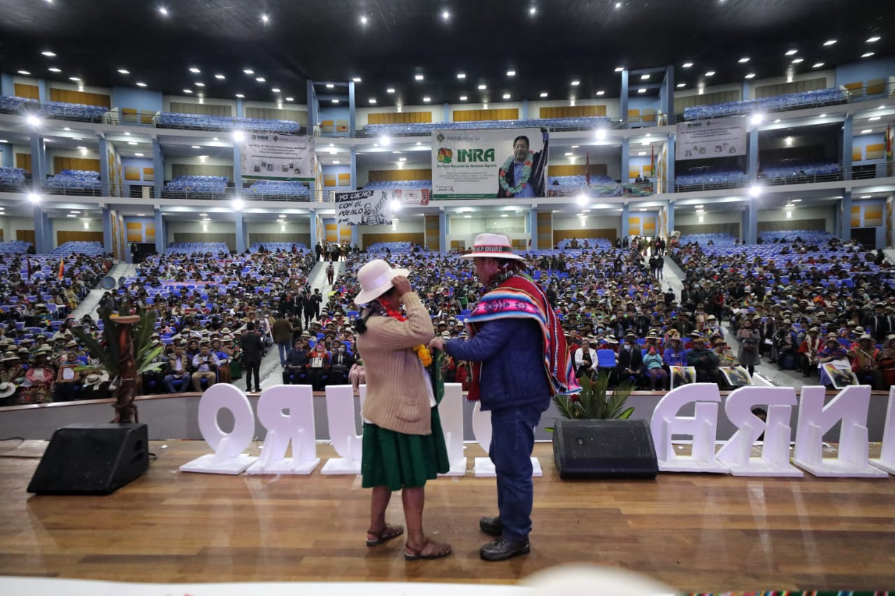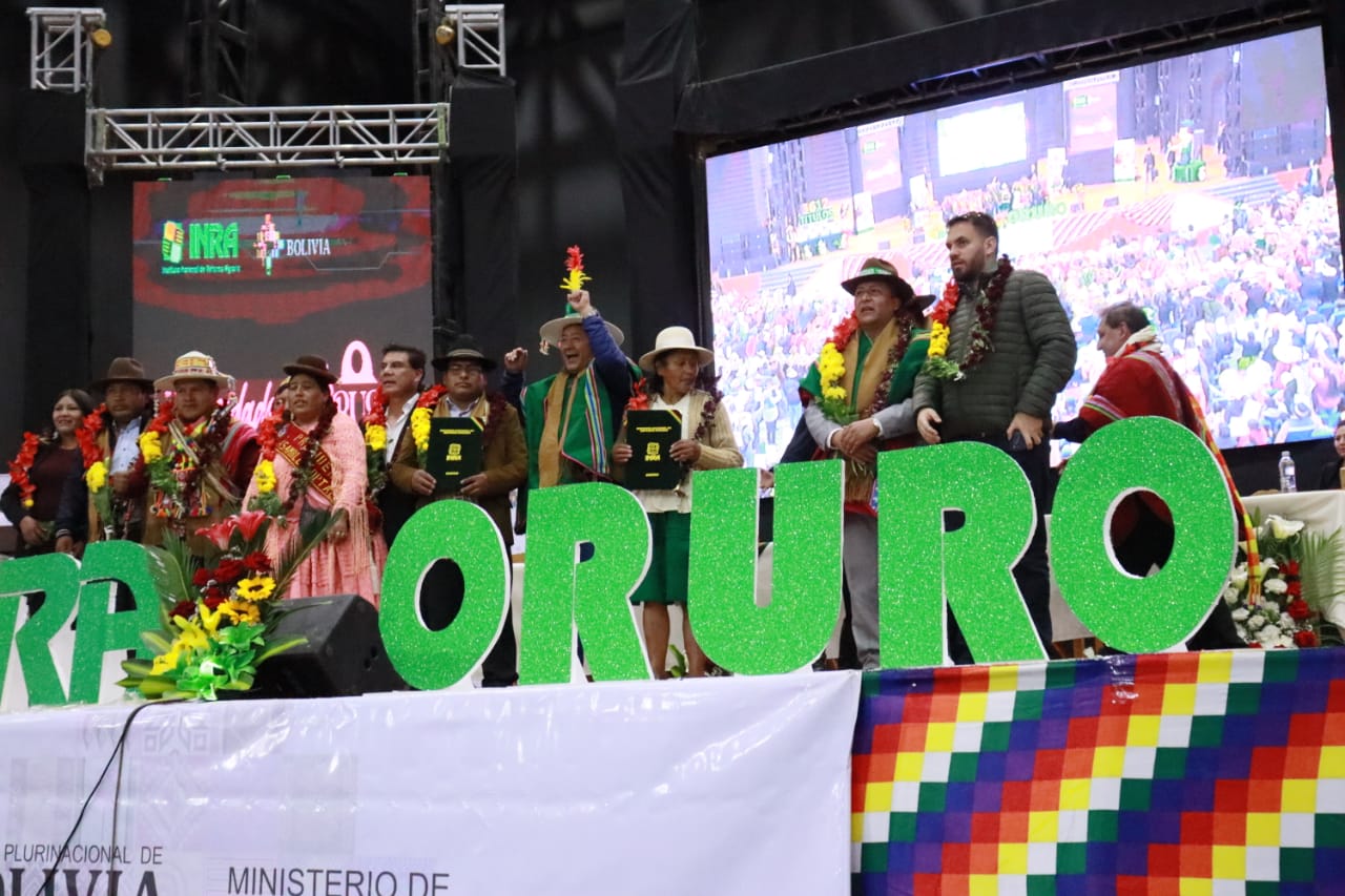 El Presidente del Estado Luis Arce Catacora entrega 3.612 títulos agrarios de propiedad en OruroUsuario ABIGalería Fotográfica 10 Febrero 2023 Visto: 11759ShareTwittearshare with Whatsappshare with Telegram Fuente: Comunicación PresidencialAnteriorSiguiente
