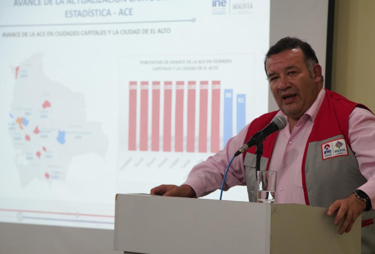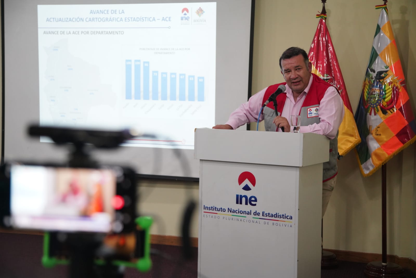 El Director general ejecutivo del Instituto Nacional de Estadística (INE), Humberto Arandia, informa de los avances de la Actualización Cartográfica Estadística registra un avance del 68% a nivel nacional
