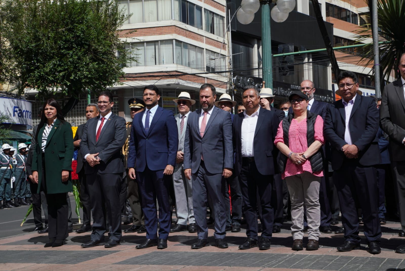 Ofrenda Floral al Monumento del Libertador Simón Bolívar con la participación del Ministro de Relaciones Exteriores, Rogelio Mayta y el Canciller de la República Bolivariana de Venezuela Yván Gil