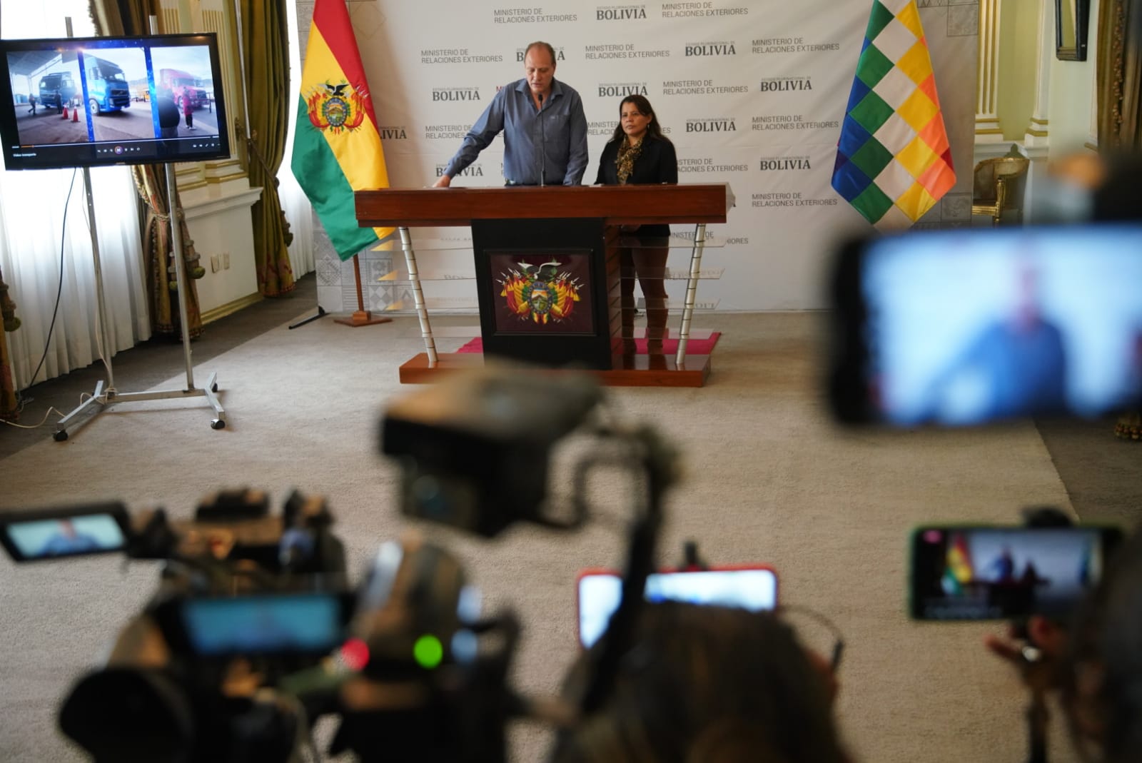 Conferencia de prensa del Viceministro de Comercio Exterior e Integración, Benjamín Blanco, sobre la situación de transportistas en la frontera con PerúABI USUARIO HISTORICOGalería Fotográfica 27 Febrero 2023 Visto: 14767ShareTwittearshare with Whatsappshare with Telegram Fotos Jorge MamaniAnteriorSiguiente