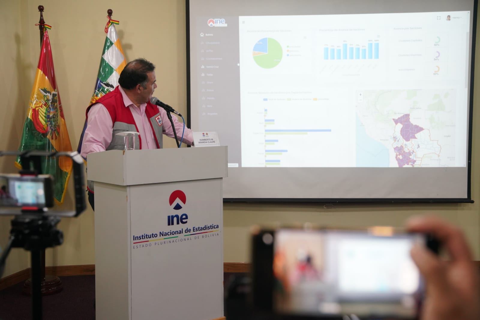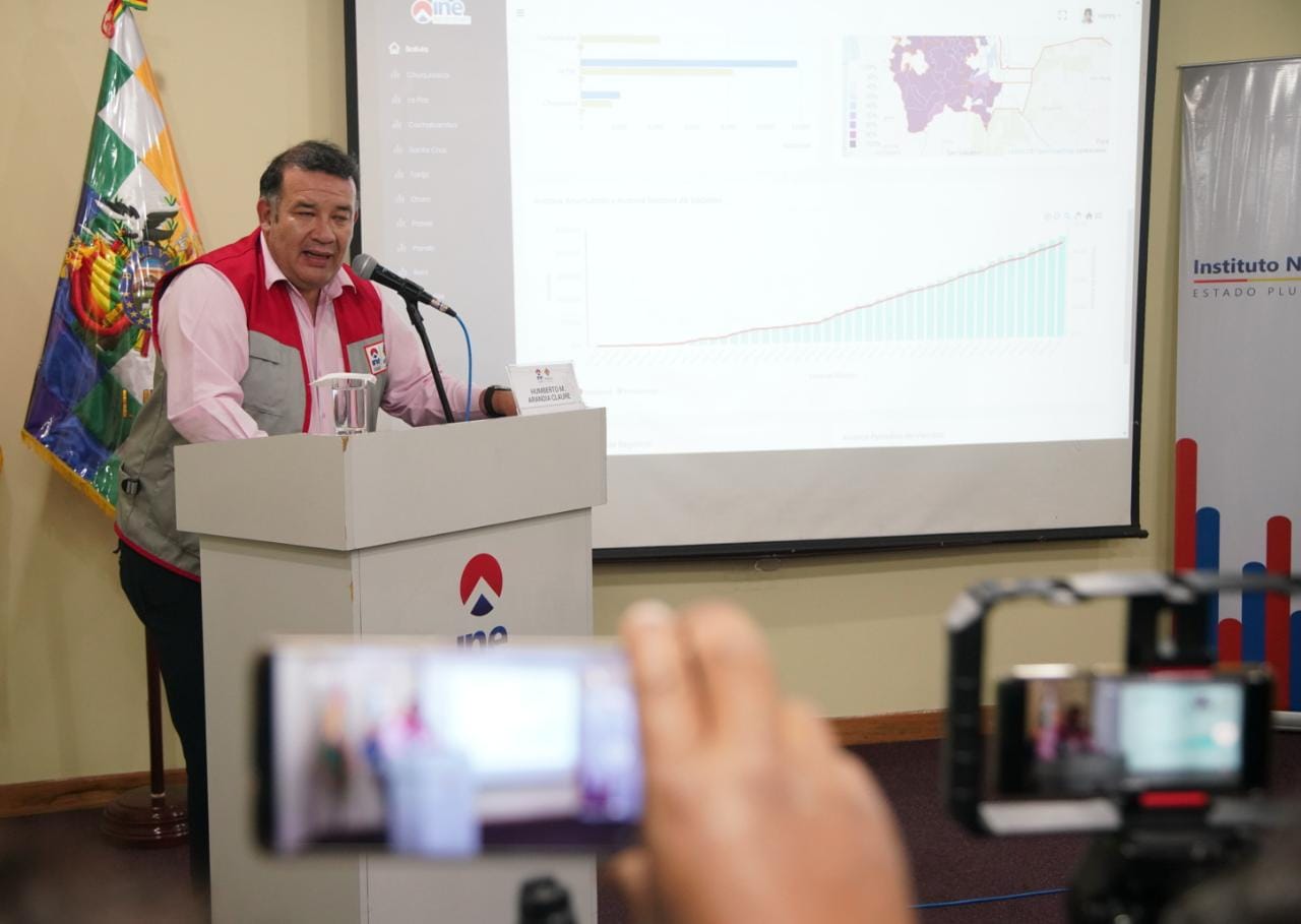 Conferencia de prensa del director del INE Humberto Arandia sobre los Avances de la actualización cartográfica estadísticaABI USUARIO HISTORICOGalería Fotográfica 27 Febrero 2023 Visto: 14947ShareTwittearshare with Whatsappshare with Telegram Fotos Jorge MamaniAnteriorSiguiente