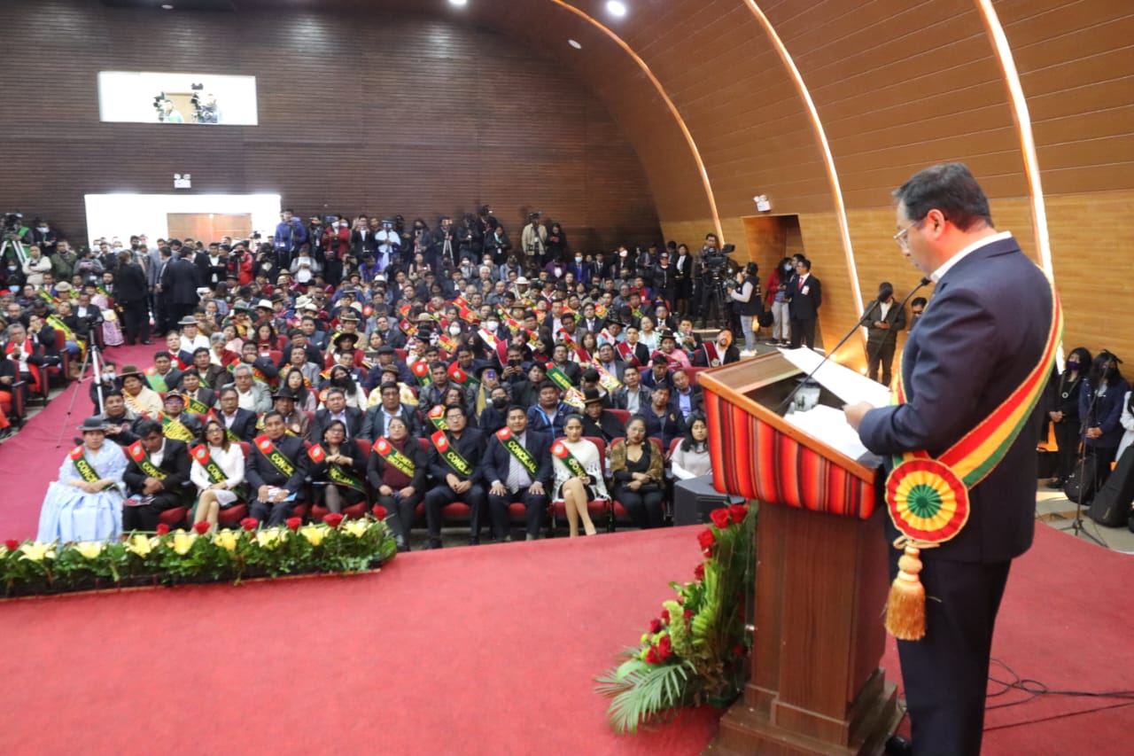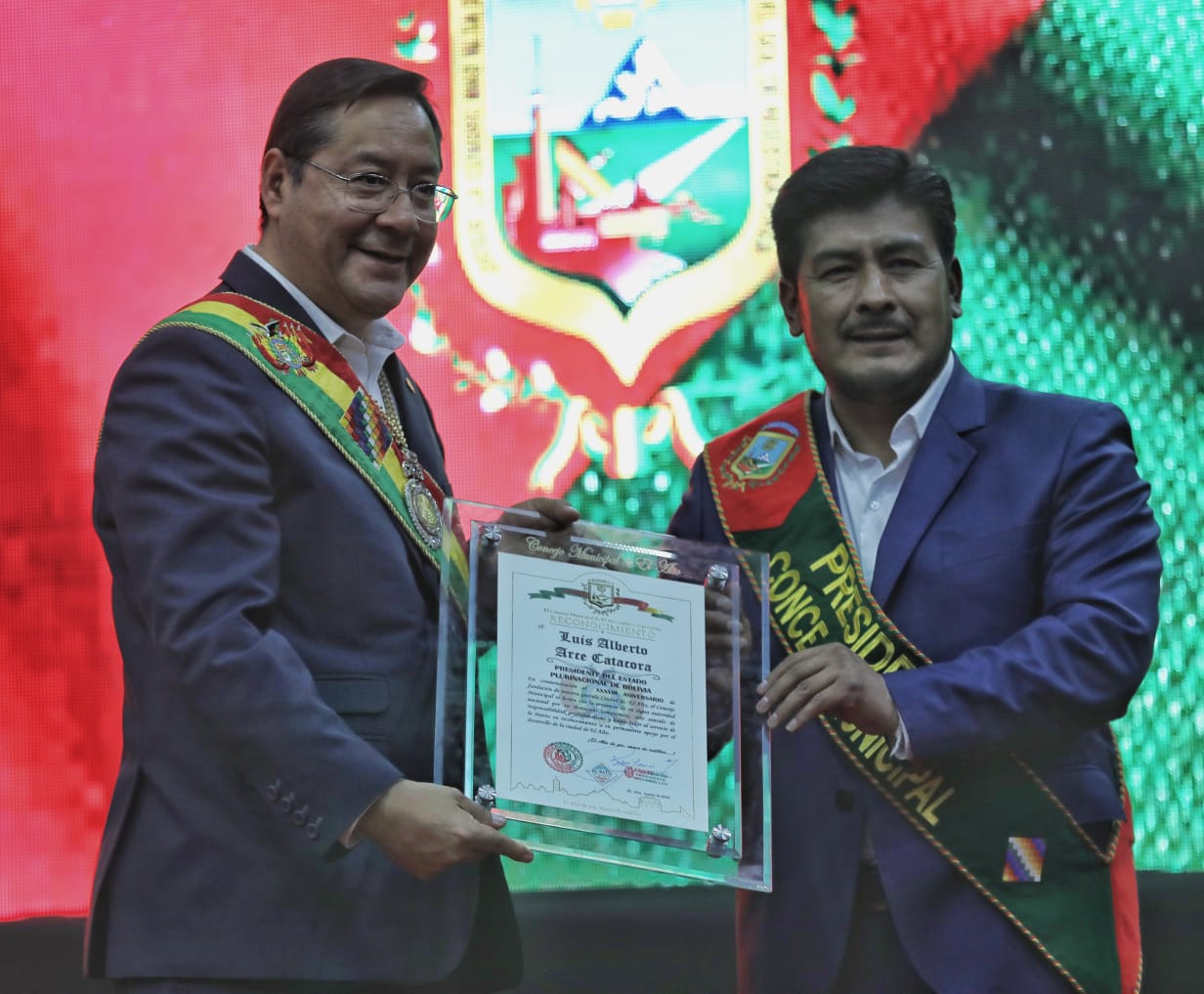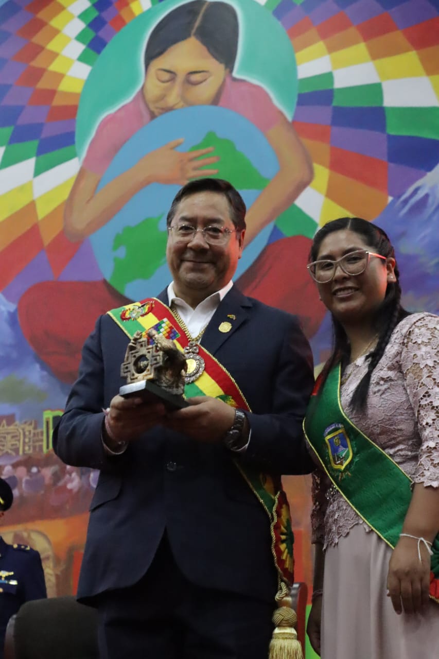 El Presidente del Estado Luis Arce participa en la Sesión de Honor en homenaje al 38 aniversario de la ciudad de El AltoUsuario ABIGalería Fotográfica 06 Marzo 2023 Visto: 18056ShareTwittearshare with Whatsappshare with Telegram Fuente: Comunicación PresidencialAnteriorSiguiente
