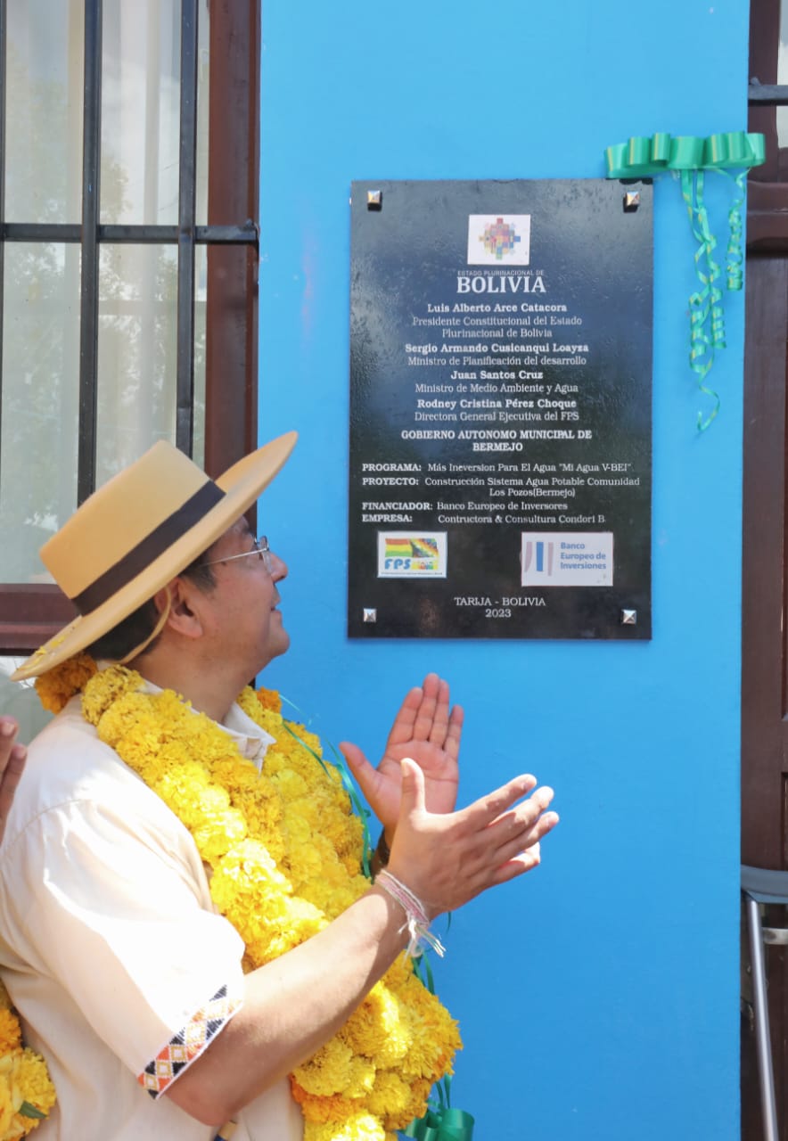 El Presidente del Estado Luis Arce entrega el sistema de agua potable en las comunidades de Los Pozos y Porcelana del municipio de Bermejo, TarijaABI USUARIO HISTORICOGalería Fotográfica 11 Abril 2023 Visto: 5975ShareTwittearshare with Whatsappshare with Telegram Fuente: Comunicación PresidencialAnteriorSiguiente