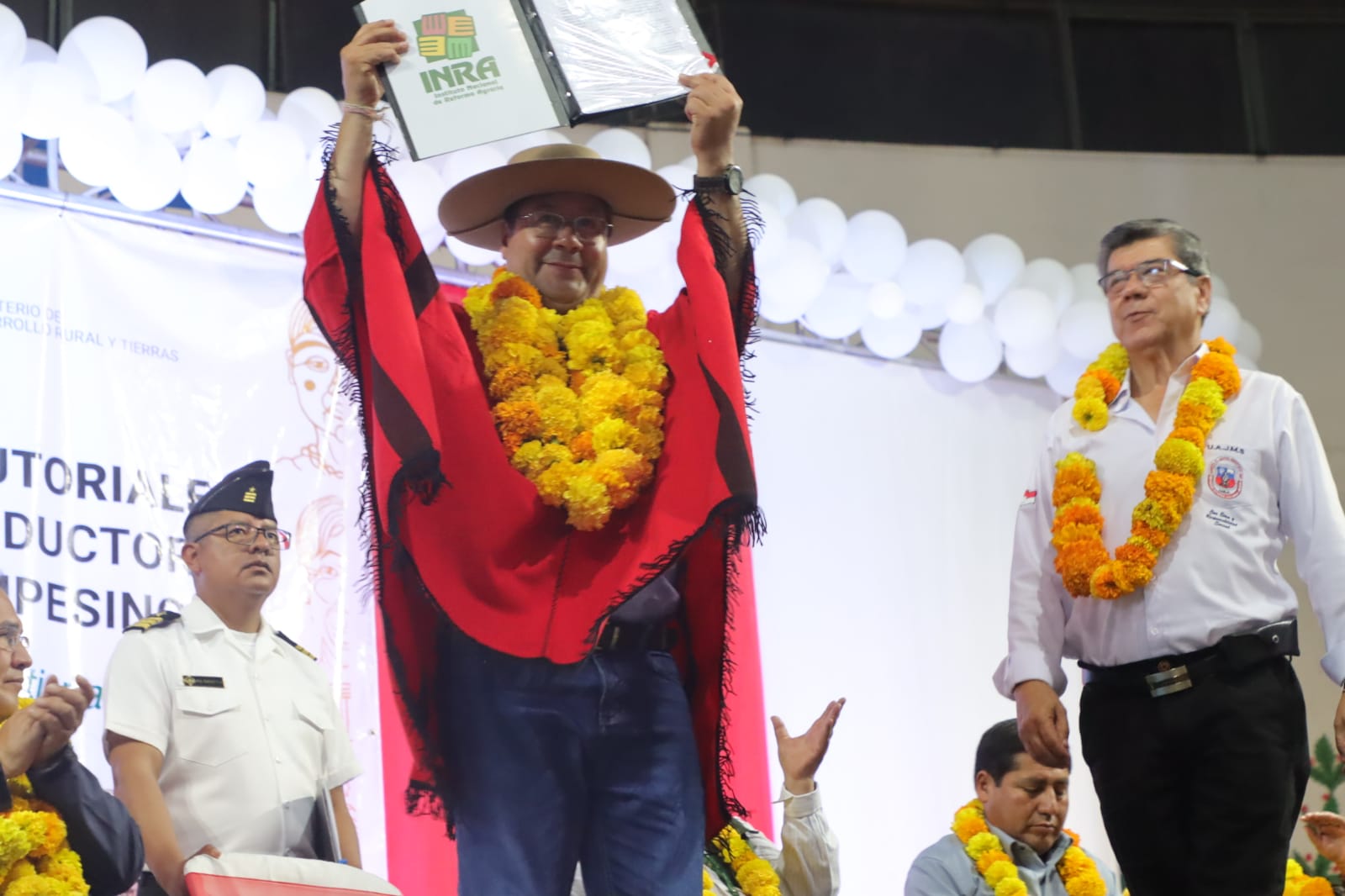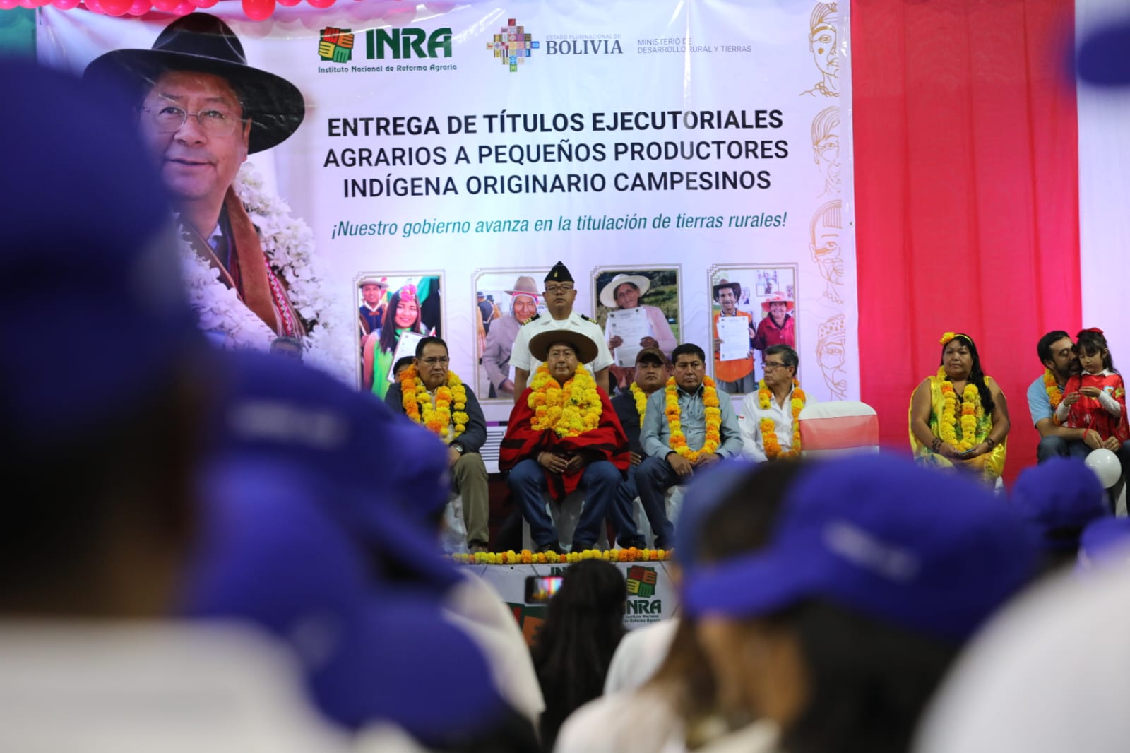 El Presidente del Estado Luis Arce entregó títulos del INRA en TarijaABI USUARIO HISTORICOGalería Fotográfica 12 Abril 2023 Visto: 6240ShareTwittearshare with Whatsappshare with Telegram Fuente: Comunicación PresidencialAnteriorSiguiente