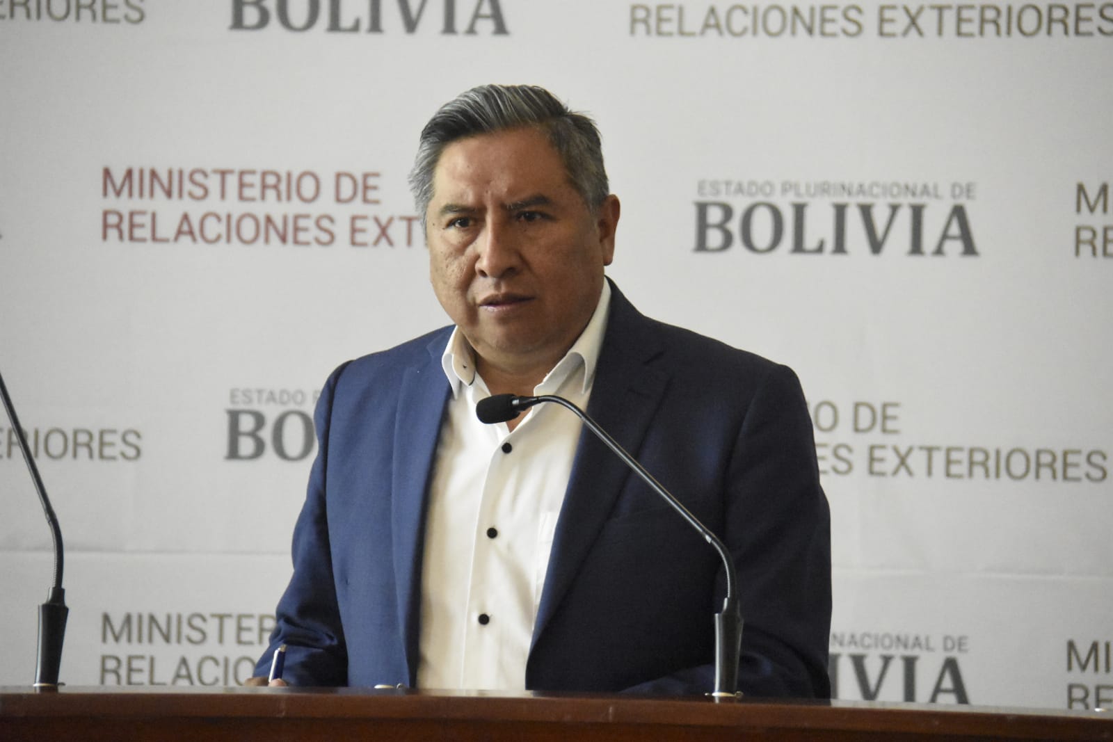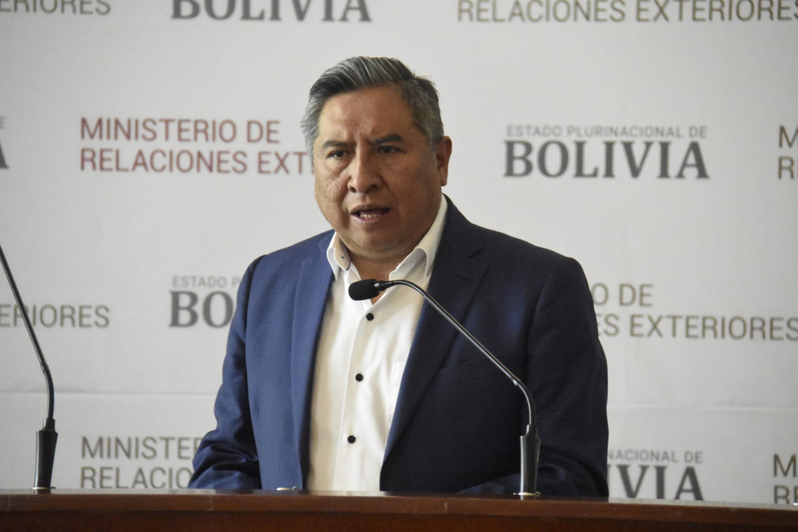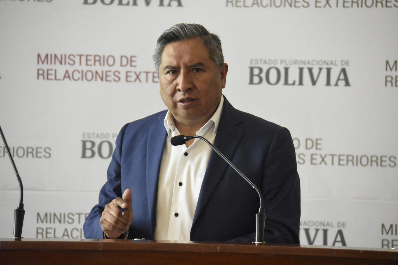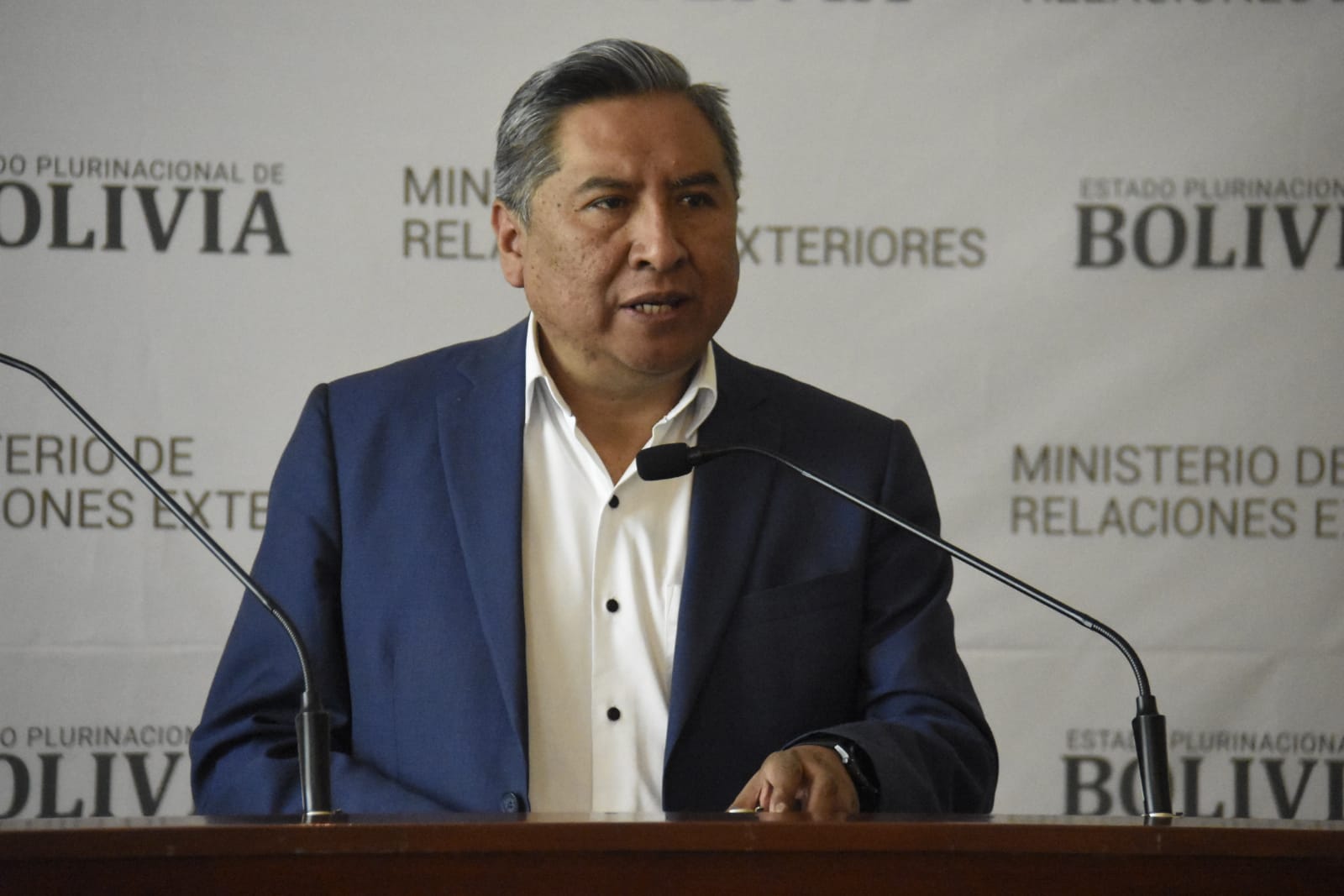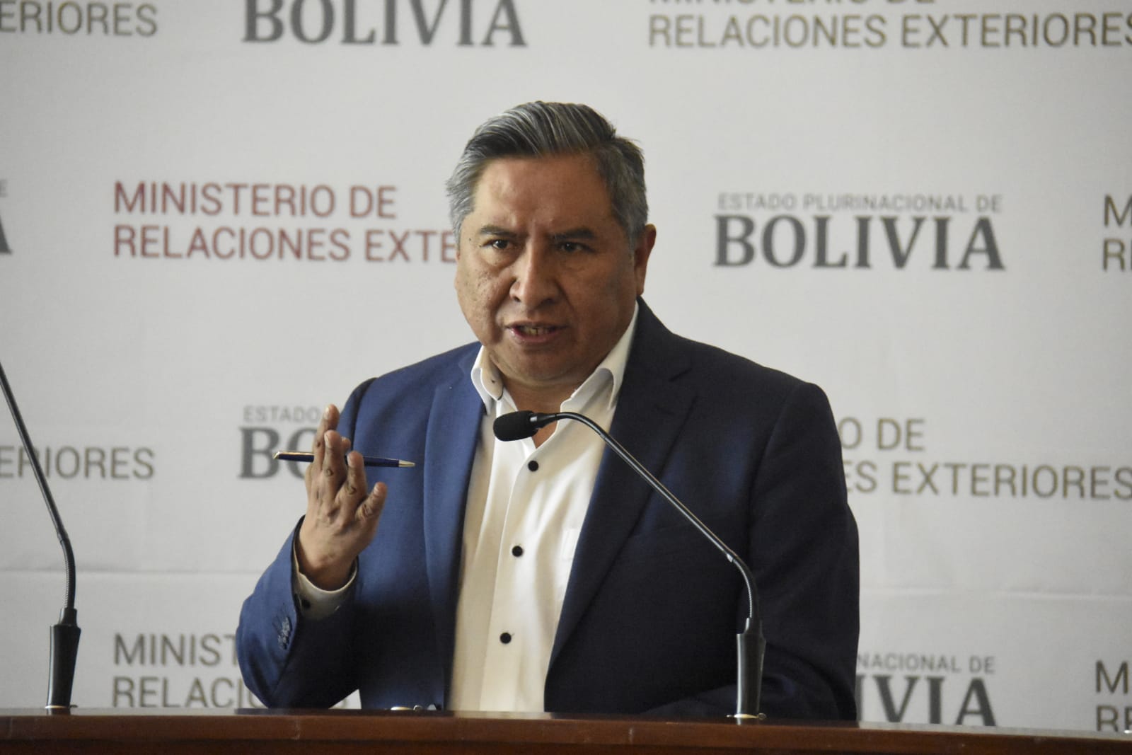 Conferencia del ministro de Relaciones Exteriores Rogelio MaytaFreddy Iván Barragán GarcíaGalería Fotográfica 17 Abril 2023 Visto: 5234ShareTwittearshare with Whatsappshare with Telegram Conferencia de prensa del ministro de Relaciones Exteriores Rogelio Mayta. Fotos: Gonzalo JallasiAnteriorSiguiente