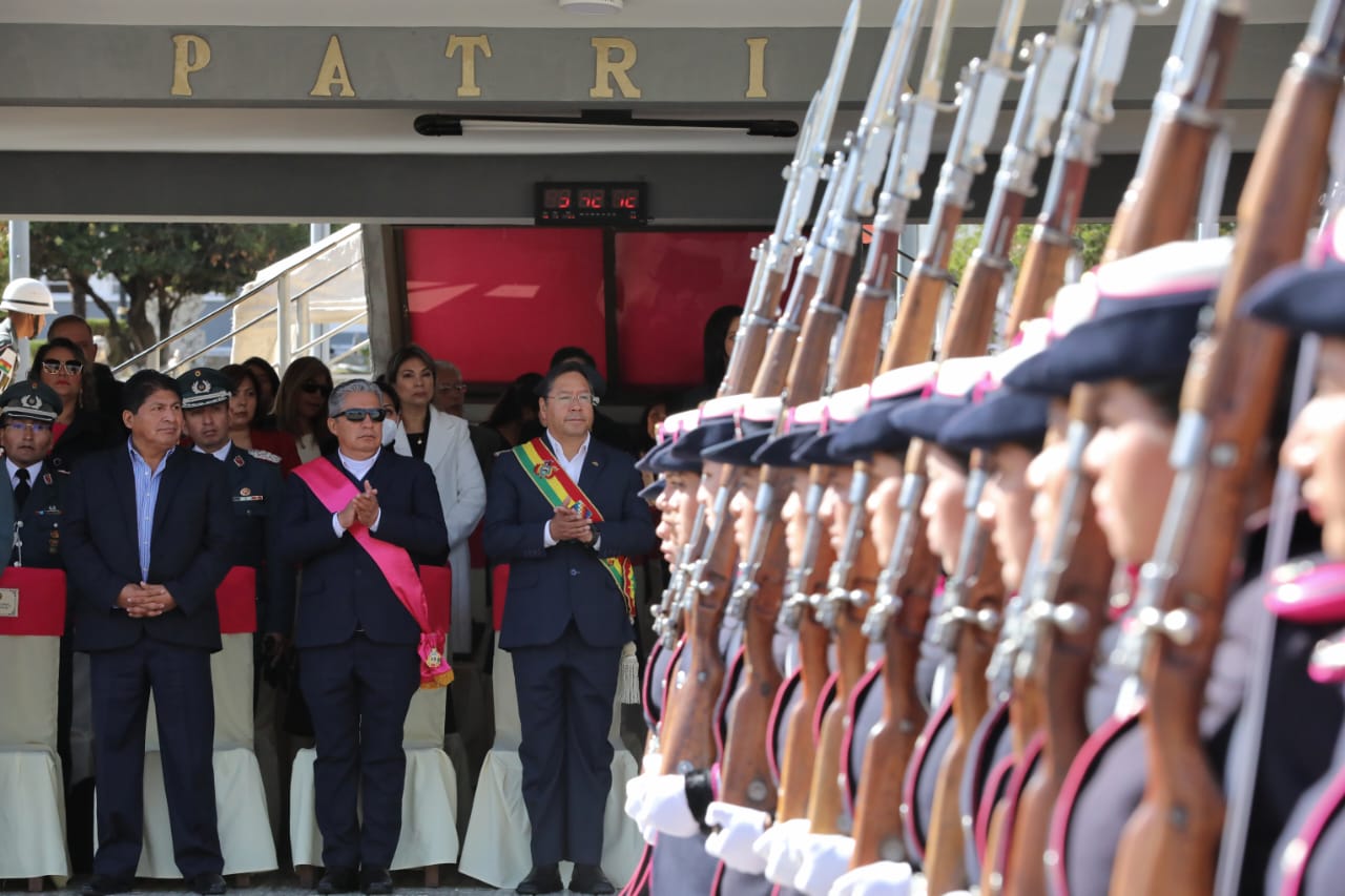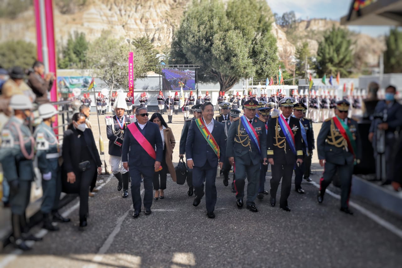Presidente del Estado Luis Arce participa en el 132 aniversario de reapertura del Colegio Militar el Ejército "Gualberto Villarroel". Fuente: Comunicación Presidencial