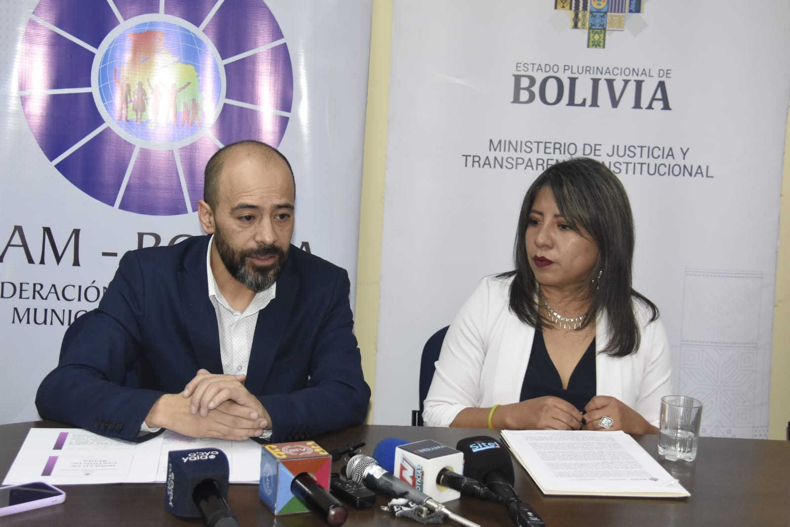 La viceministra de Igualdad de Oportunidades, Nadia Cruz Tarifa, junto a representantes de la Federación de Asociaciones Municipales de Bolivia (FAM) y de la Asociación de Concejalas de Bolivia (ACOBOL) en conferencia de prensa informaron respecto al ingreso a 125 municipios, que se llevará adelante entre abril y junio de este año, con el objetivo de identificar el estado de situación de los servicios municipales de protección a víctimas de violencia. Fotos: G. JALLASI