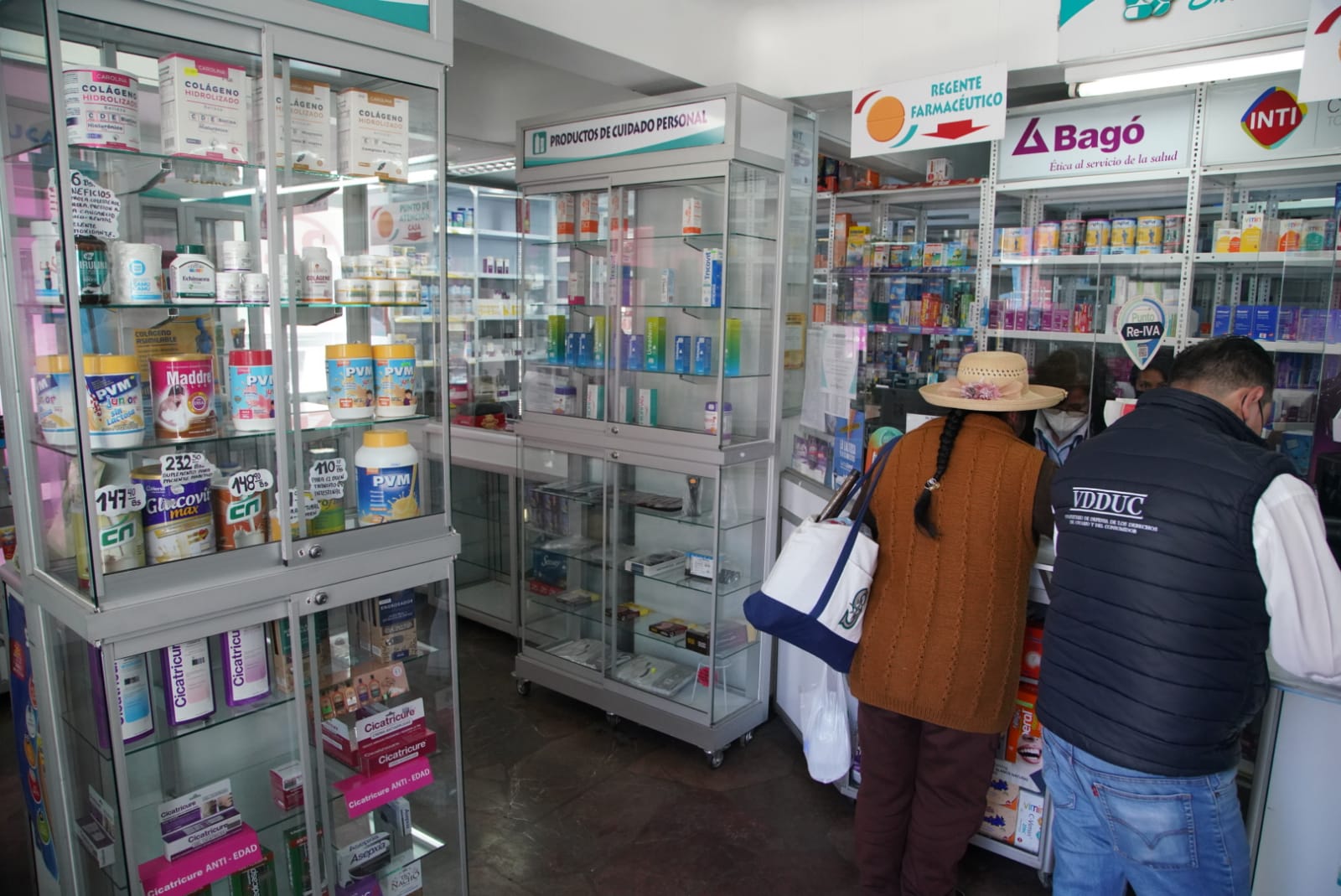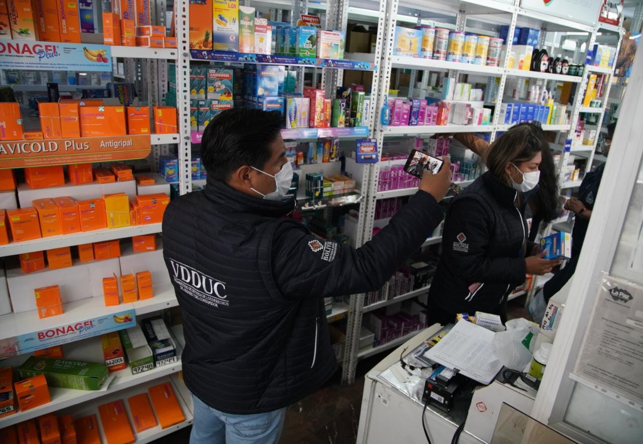 El Viceministerio de Defensa de los Derechos del Usuario y Consumidor y la Agencia Estatal de Medicamentos y Tecnologías (Agemed), realizaron verificativos en farmacias ante denuncias de incremento en precios de medicamentos. Fotos Jorge Mamani