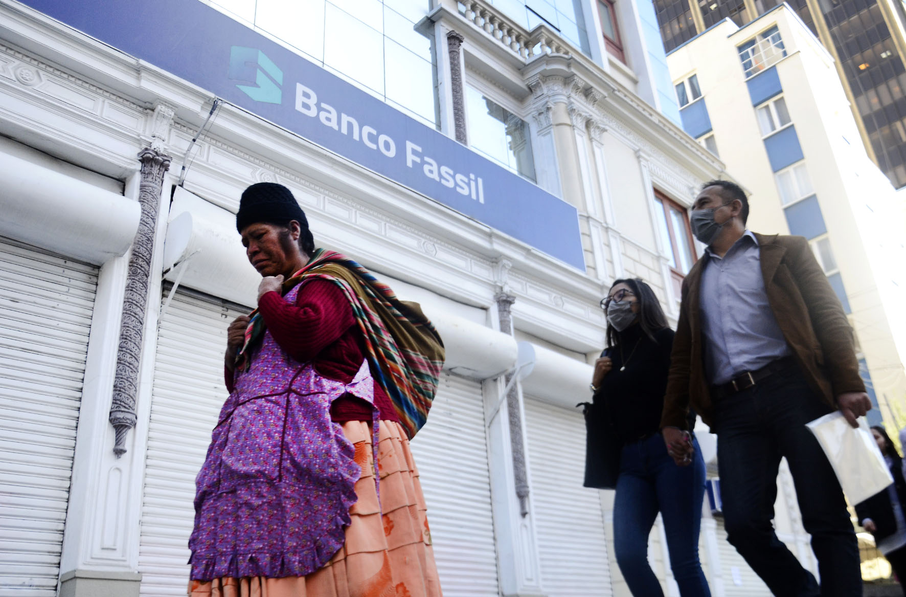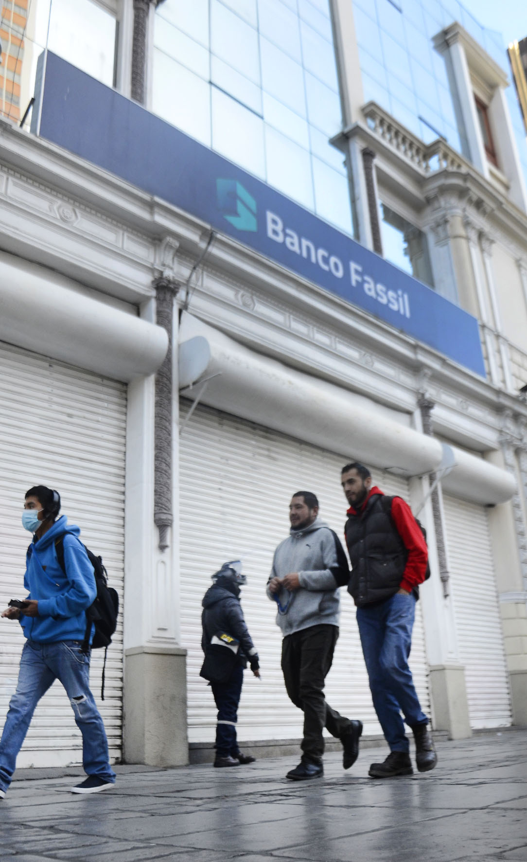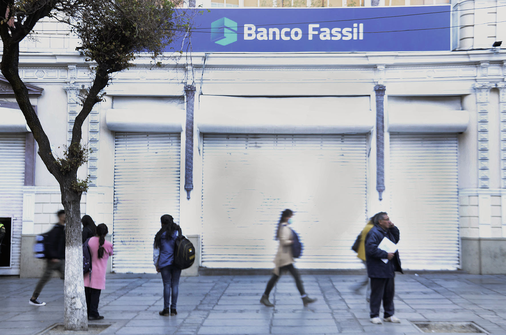 Oficinas del Banco Fassil cerradas en la Av. 16 de julio de La Paz, luego de la intervención de la ASFI. Fotos: Freddy Barragán