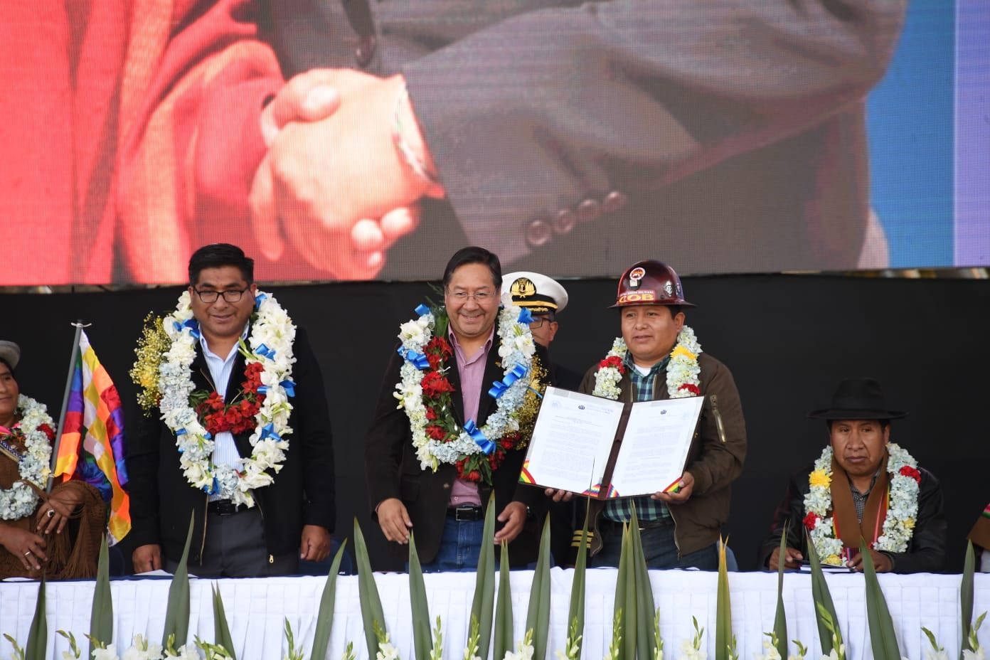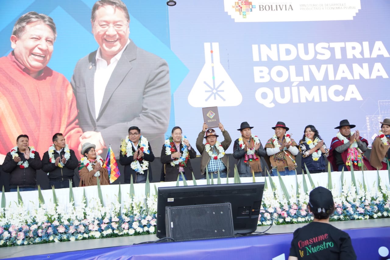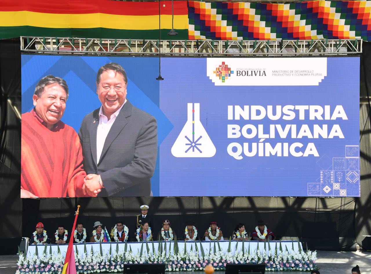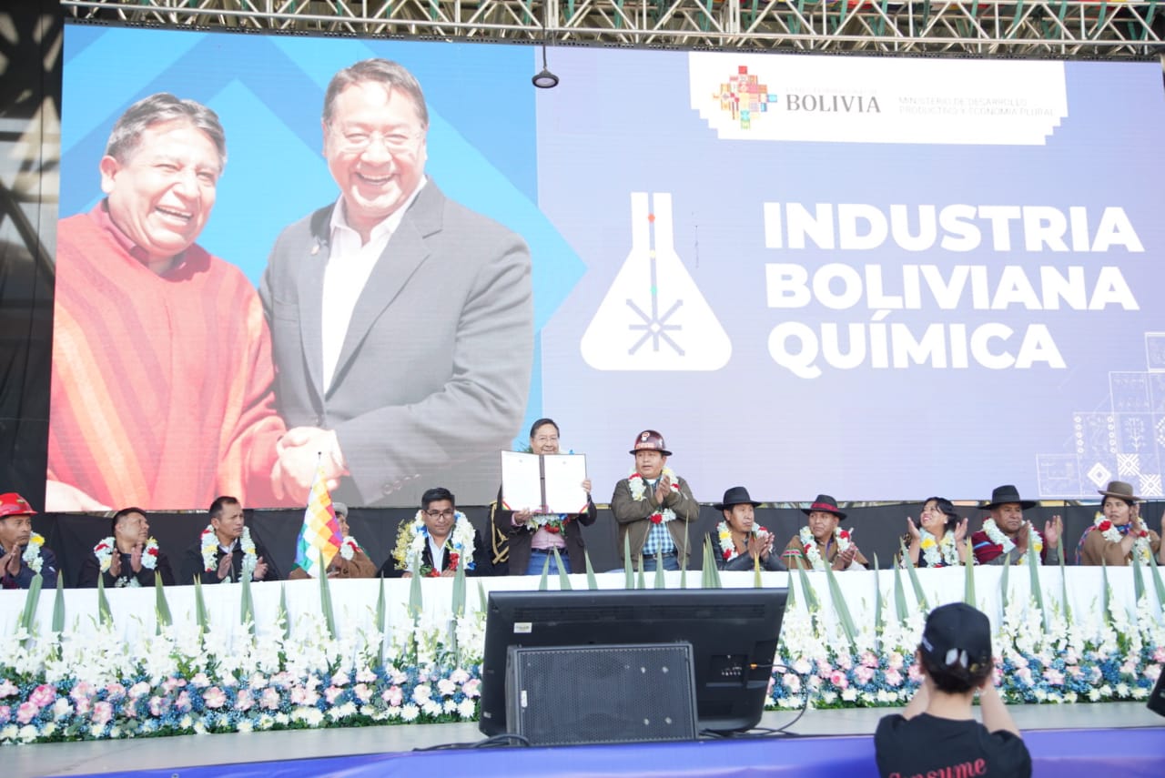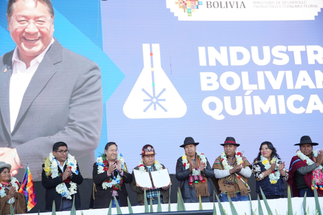 En el marco de la industrialización del país, el Presidente del Estado Plurinacional de Bolivia, Luis Arce Catacora , presenta el Decreto Supremo de Creación de la Empresa Química Básica. Fotos Jorge Mamani y Viceministerio de Comunicación