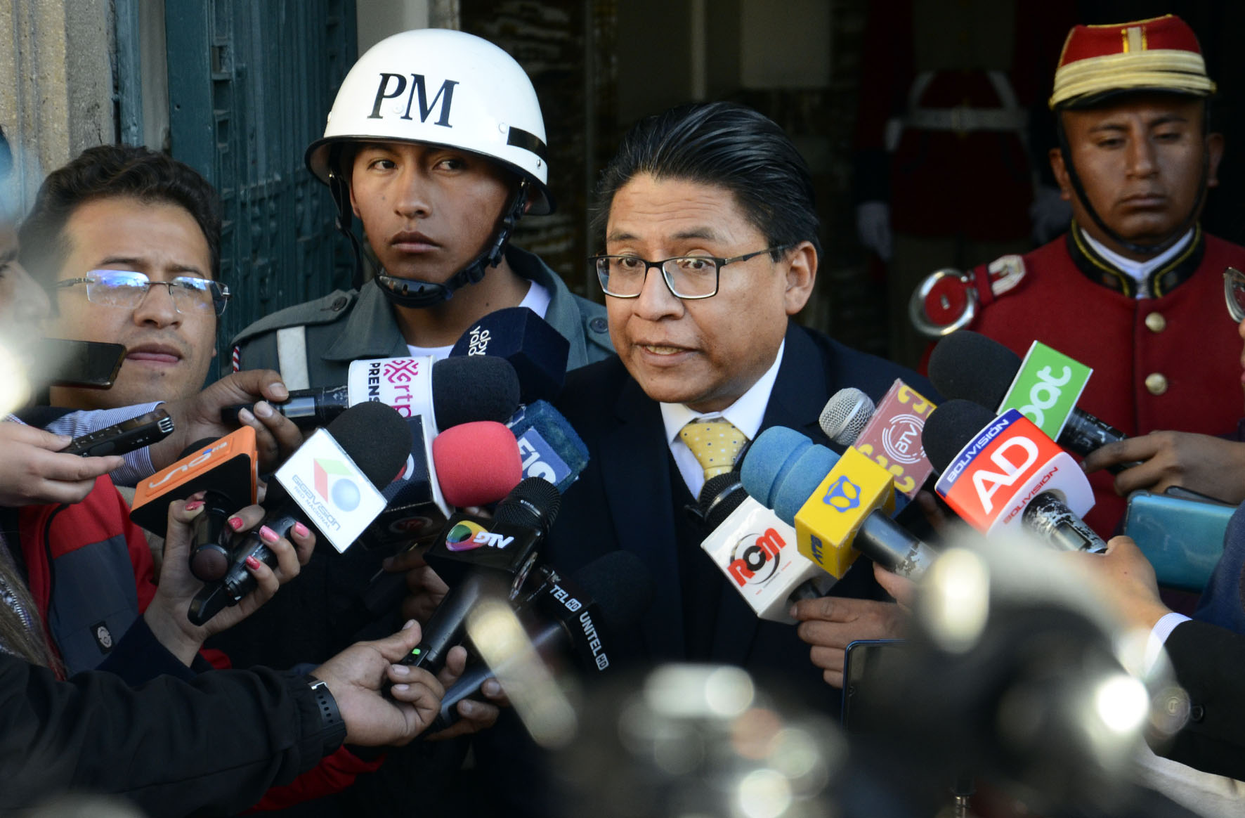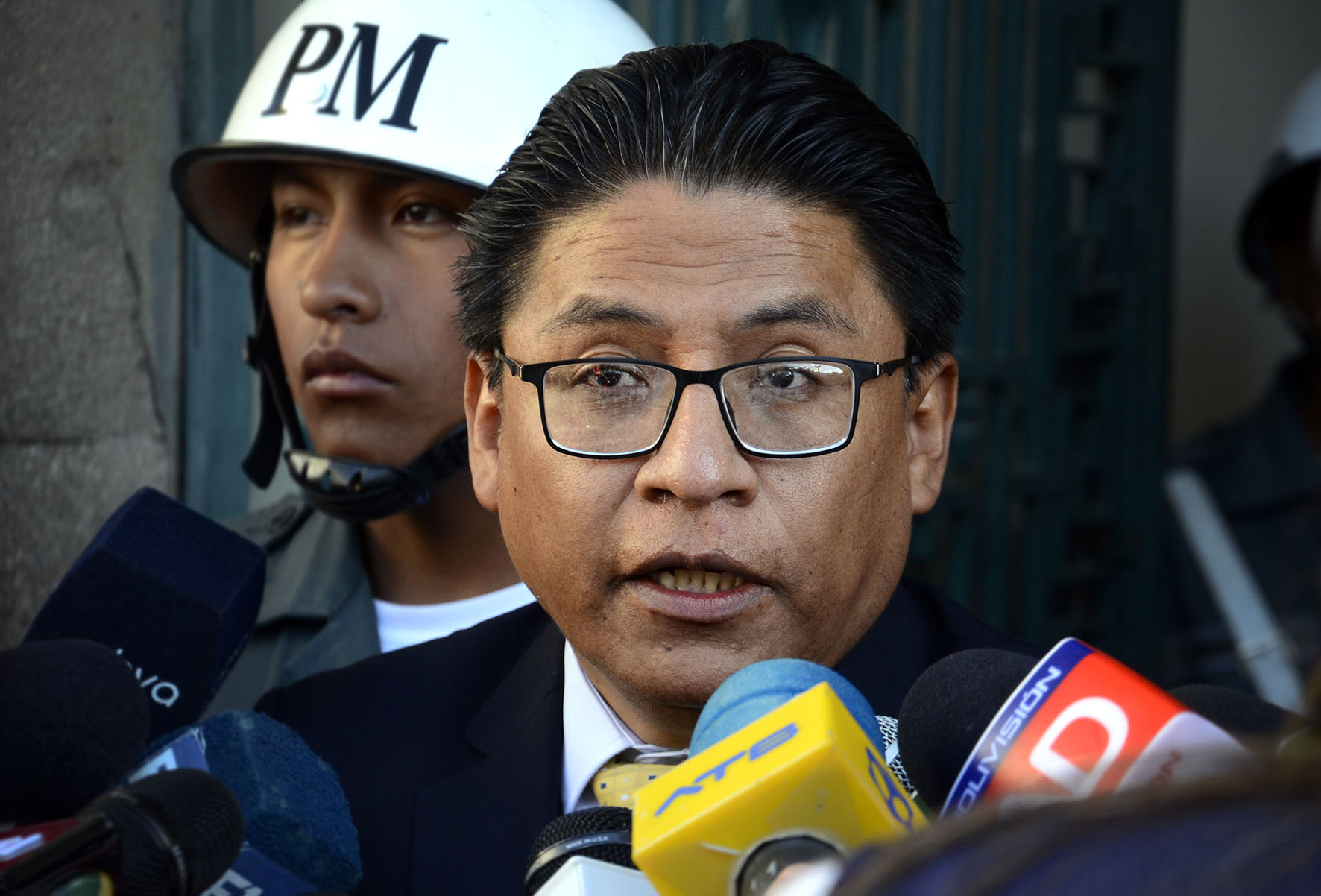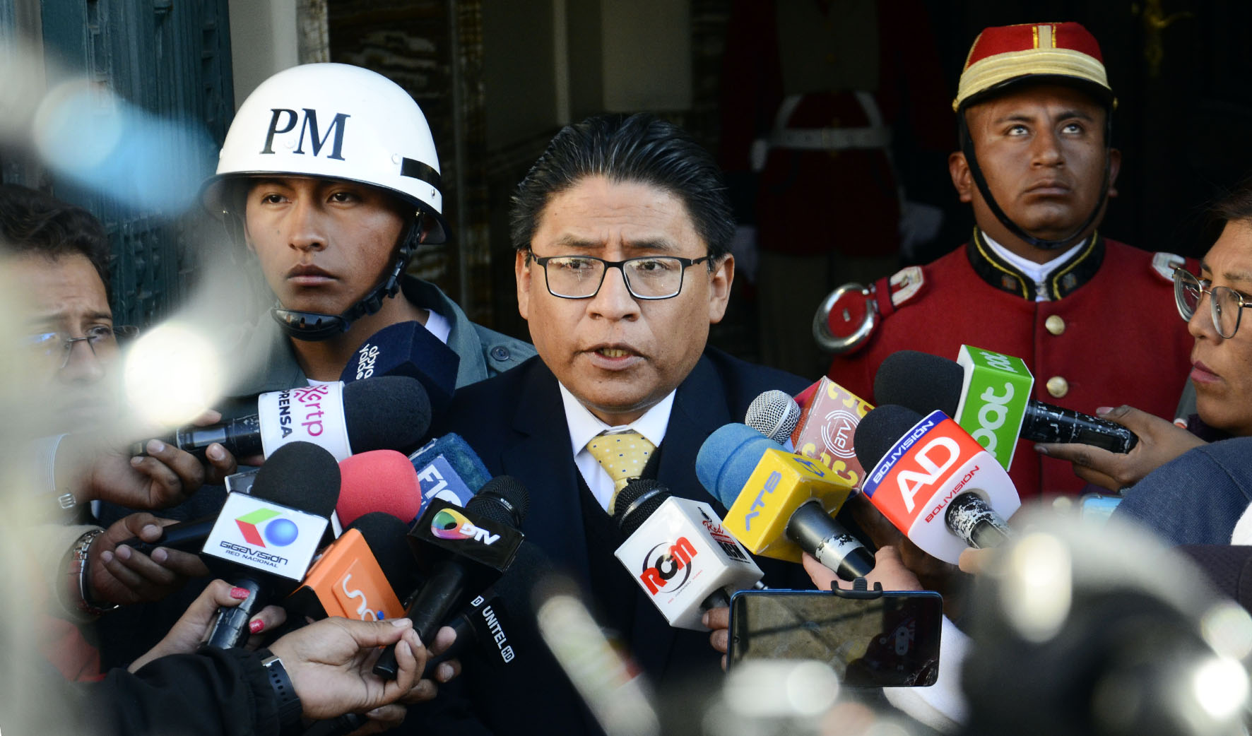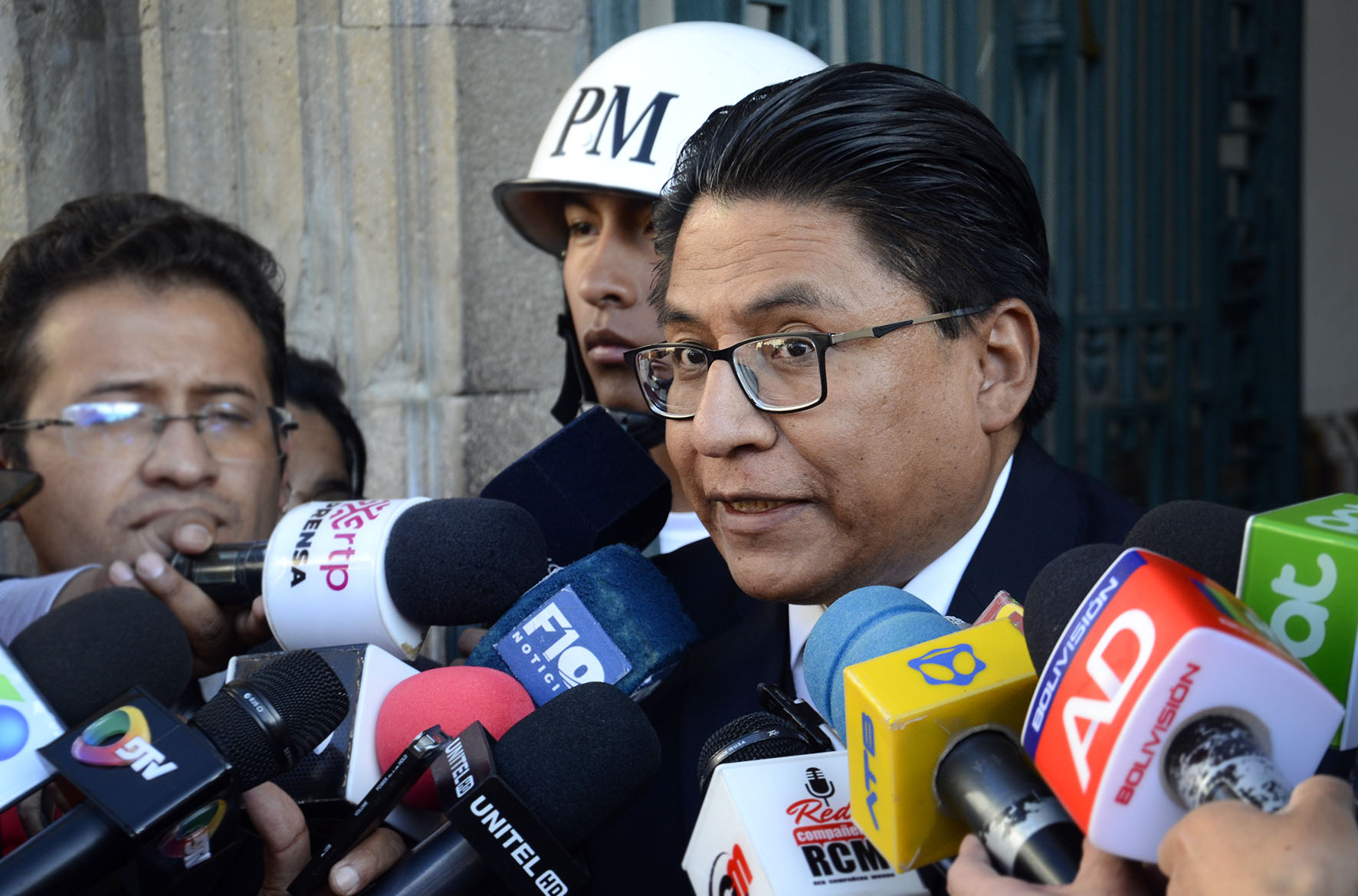 Ministro de Justicia Iván Lima, se dirige a medios de comunicación en Plaza Murillo