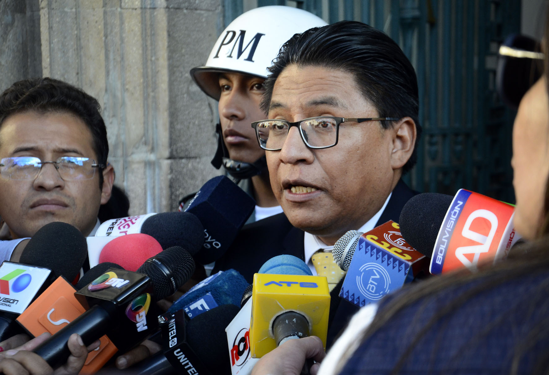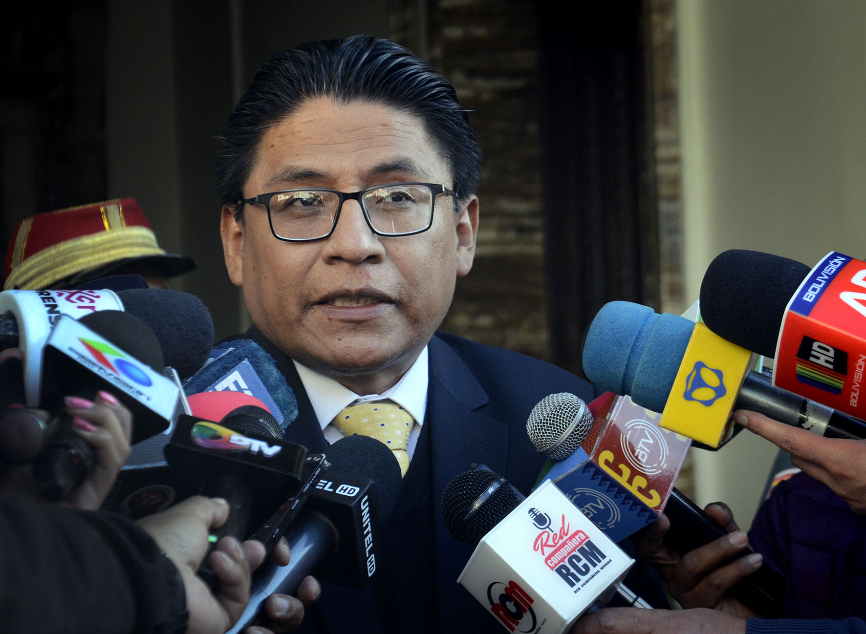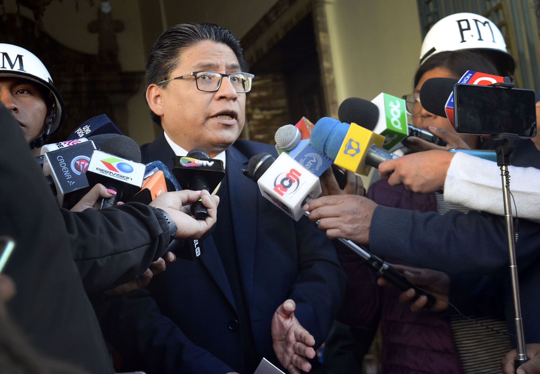 Ministro de Justicia Iván Lima, se dirige a medios de comunicación en Plaza Murillo