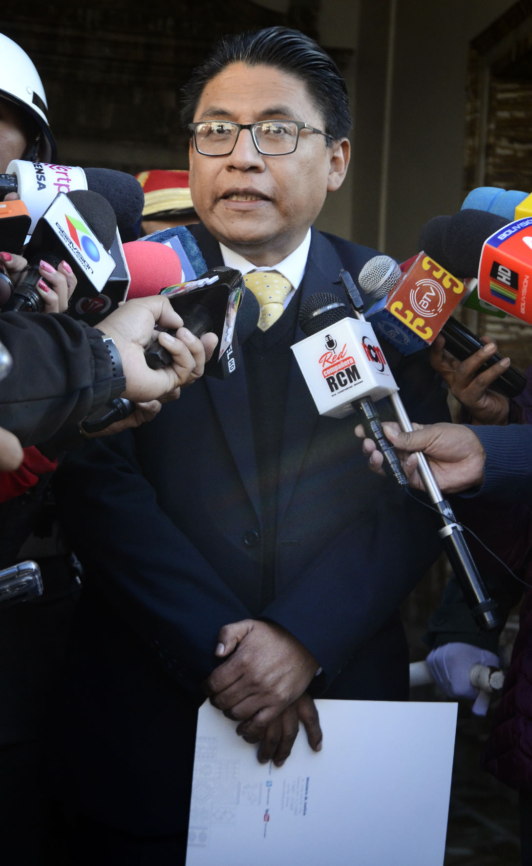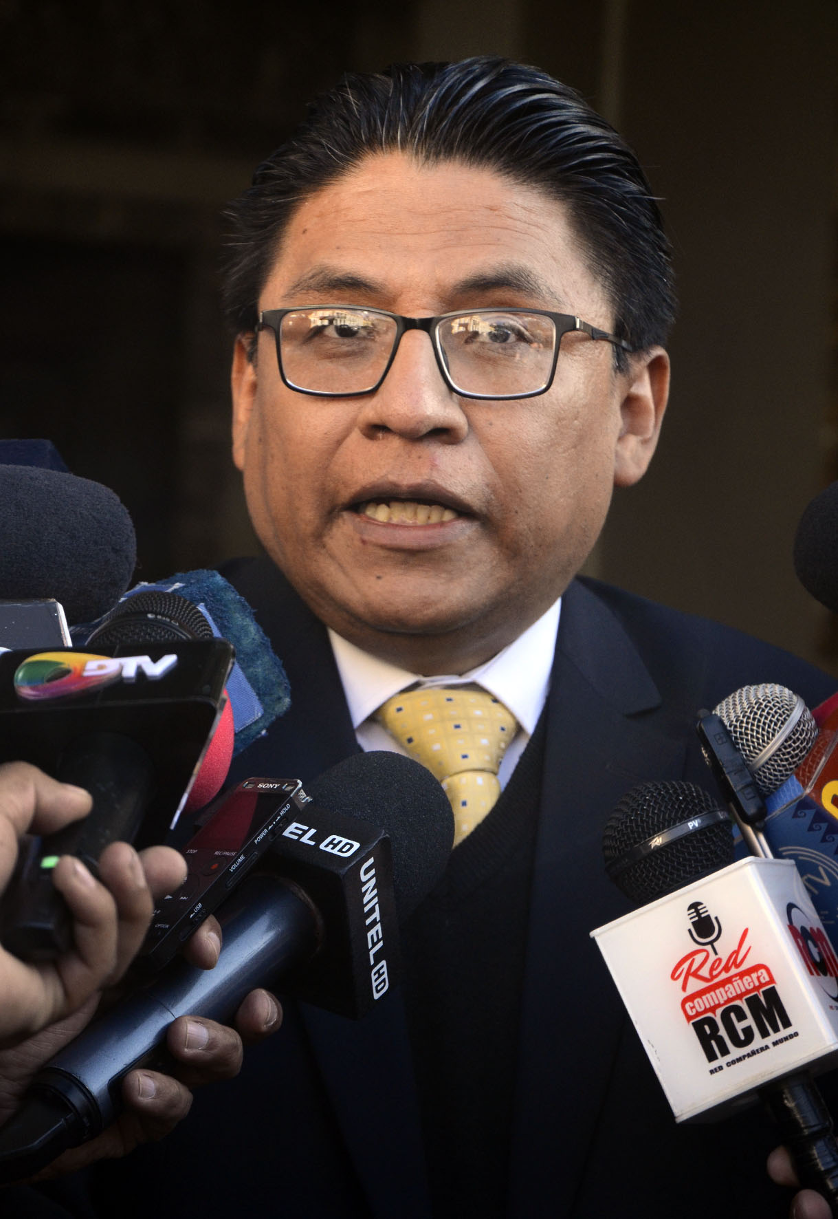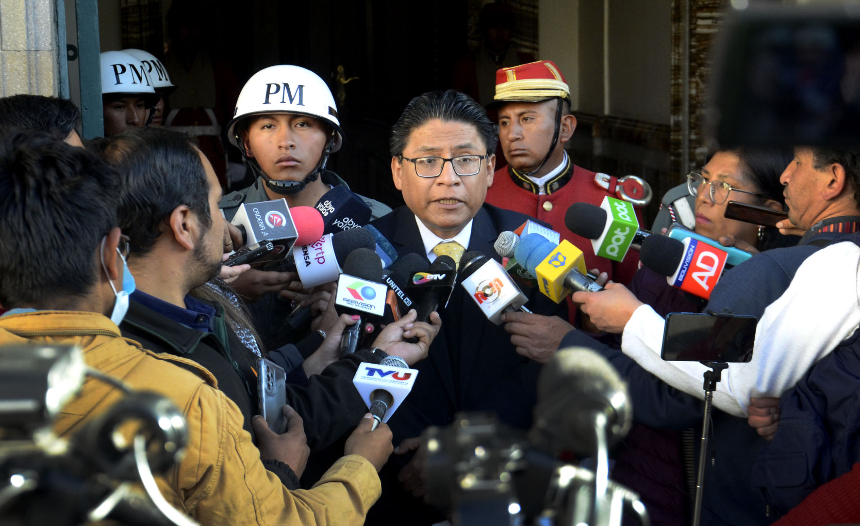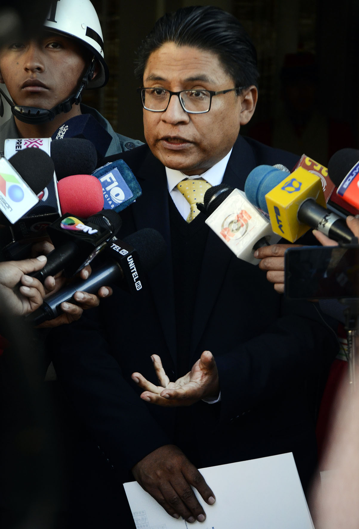 Ministro de Justicia Iván Lima, se dirige a medios de comunicación en Plaza Murillo
