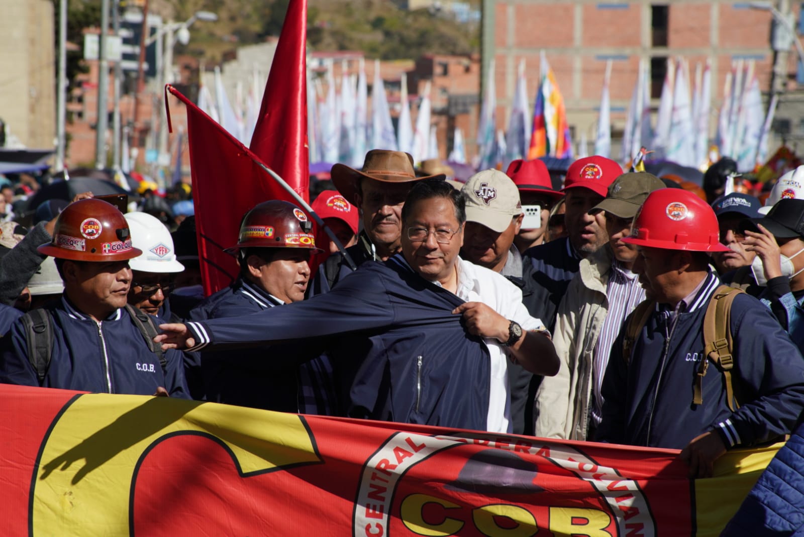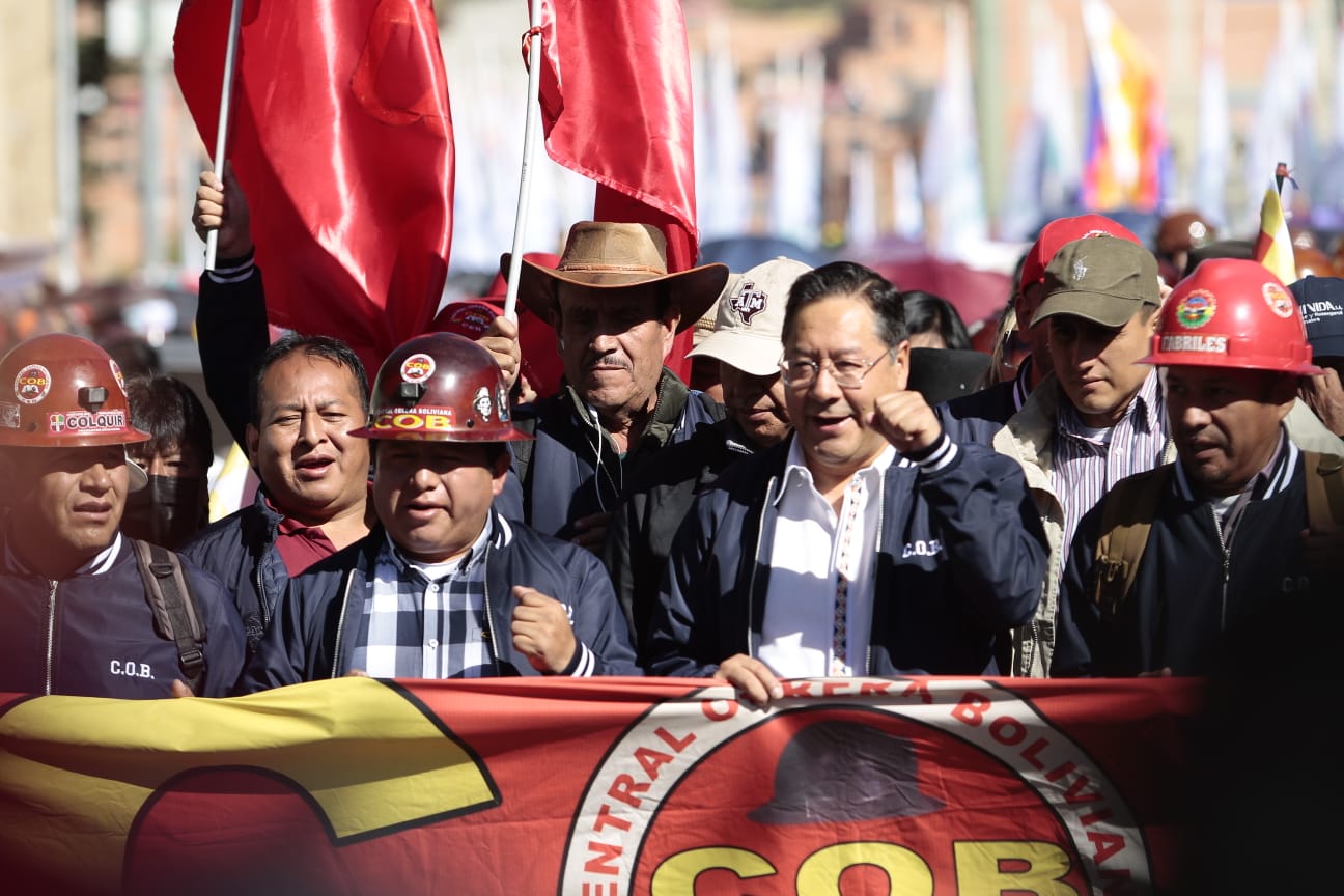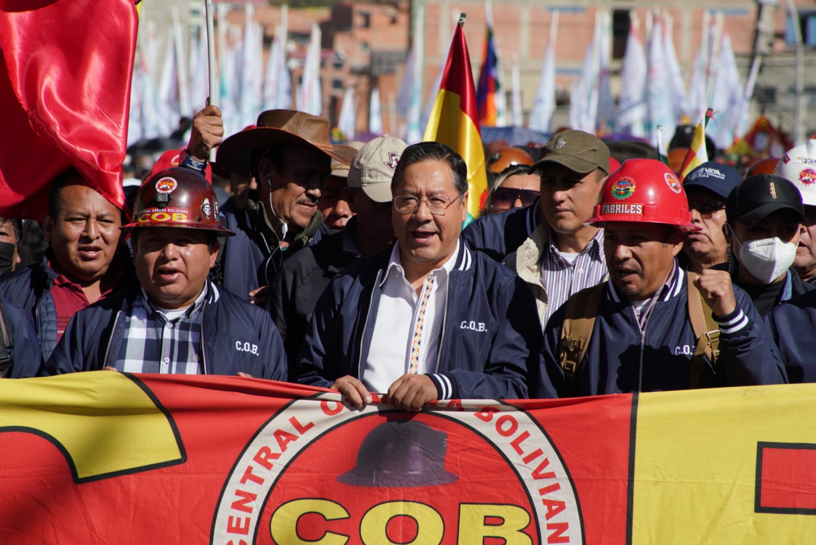 Presidente del Estado Luis Arce Catacora encabeza la marcha junto a la Central Obrera Boliviana