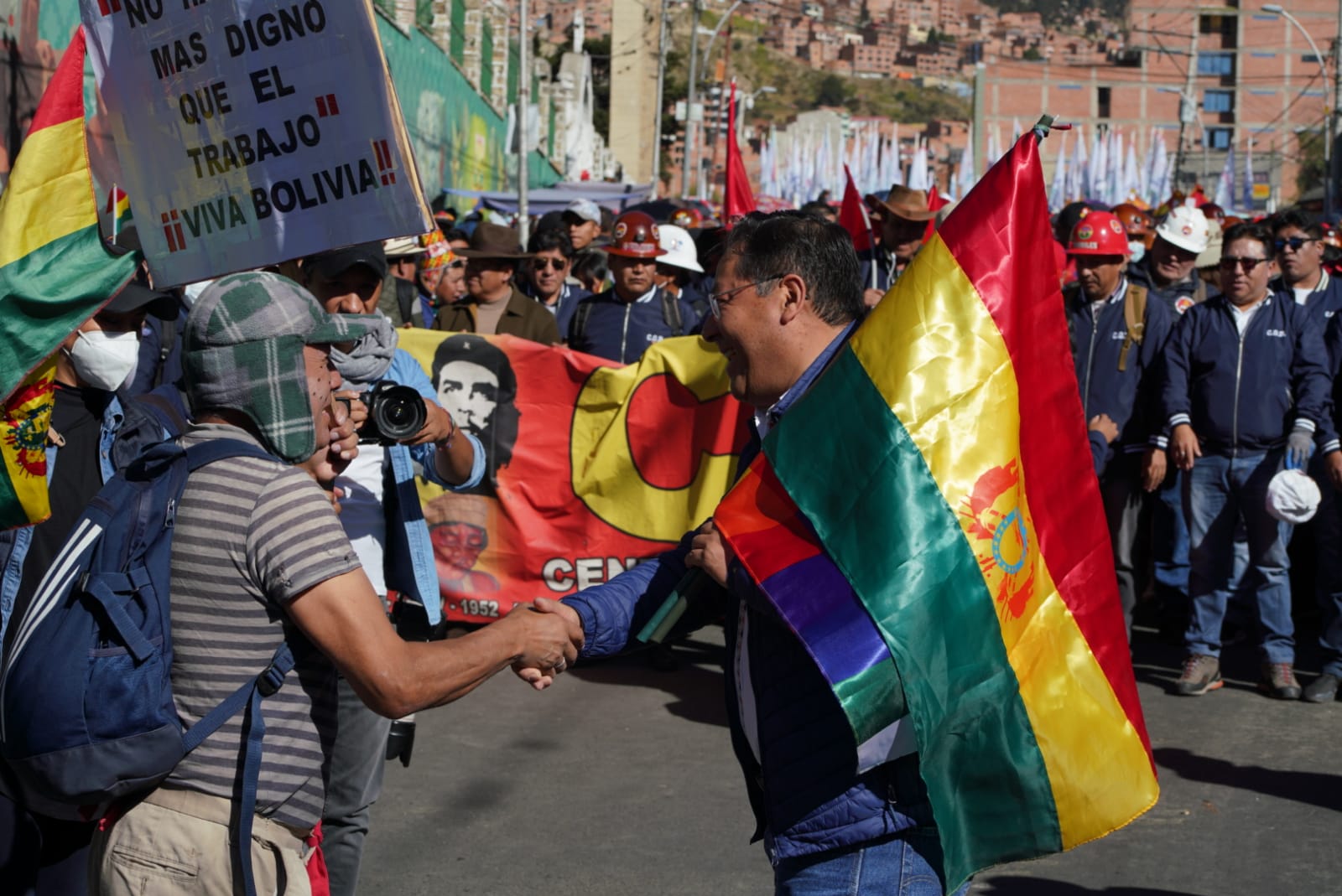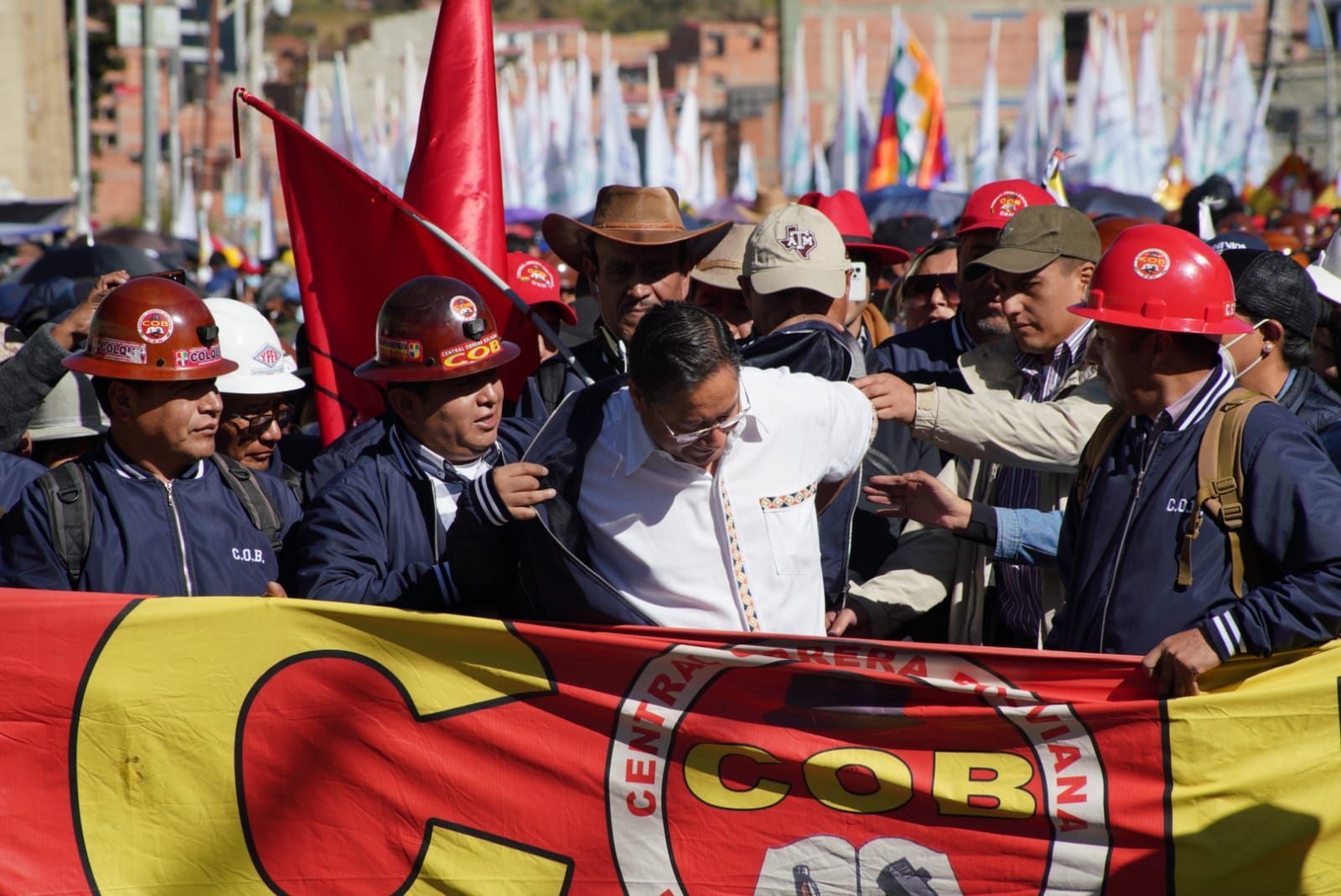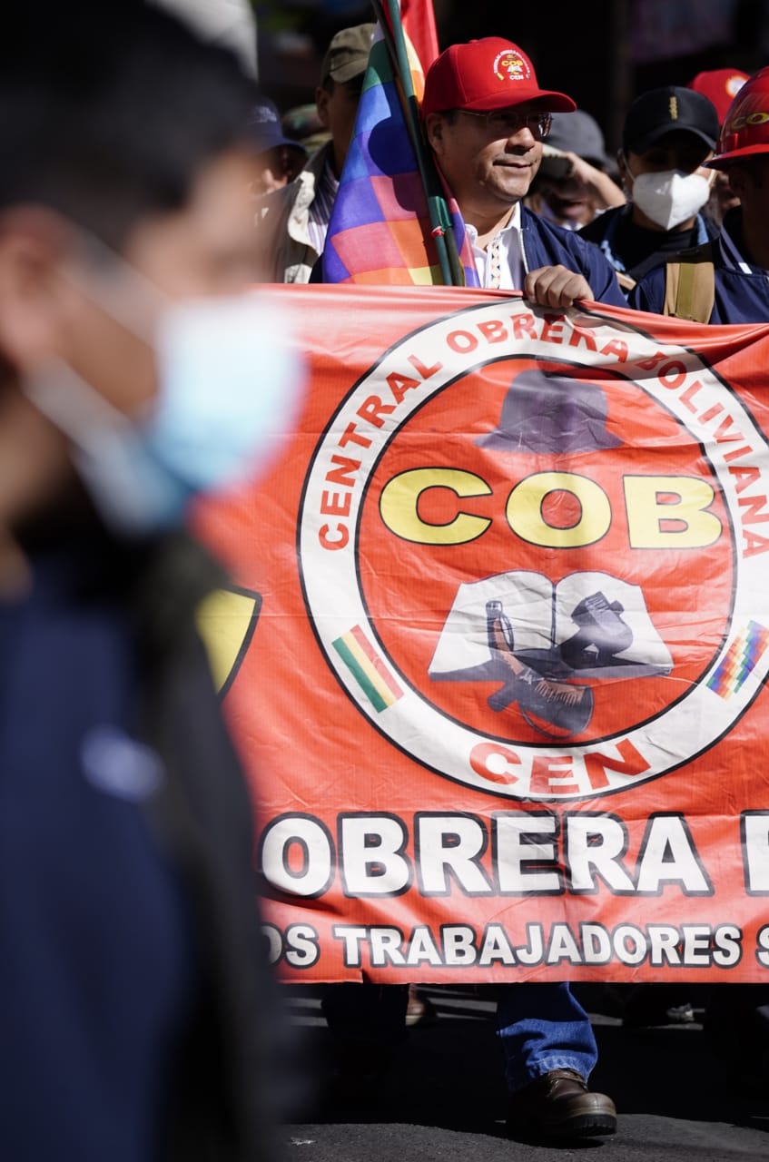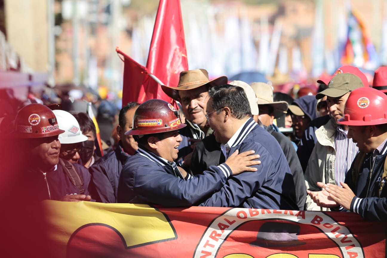Presidente del Estado Luis Arce Catacora encabeza la marcha junto a la Central Obrera Boliviana