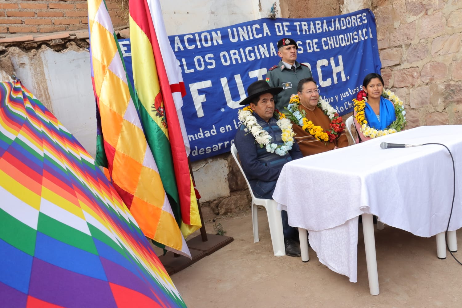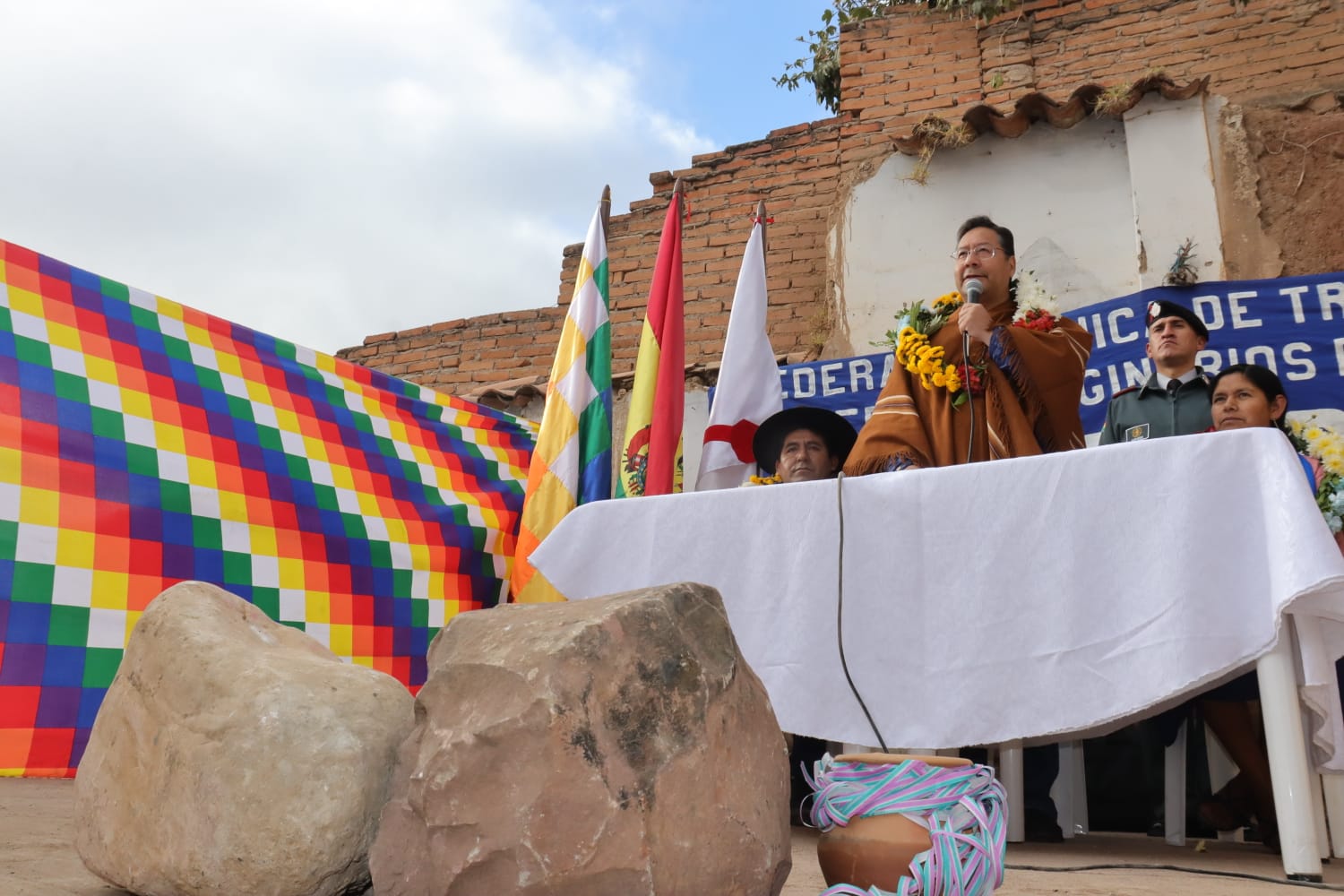 Presidente Luis Arce coloca la piedra fundamental para la construcción de la Casa de Acogida "Kampu-Wawqimanta", en Sucre