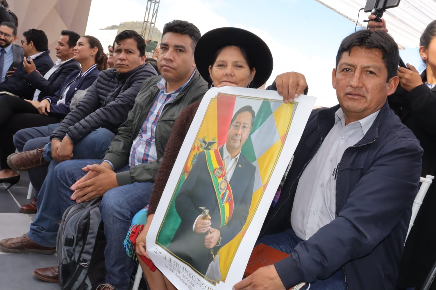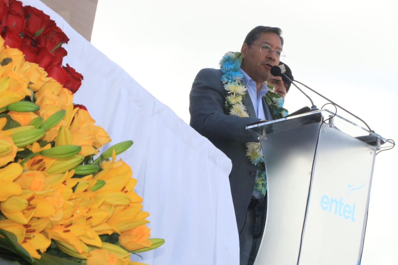 Presidente del Estado Luis Arce participa en el acto por los 15 años de la nacionalización de Entel. Fuente: Comunicación Presidencial