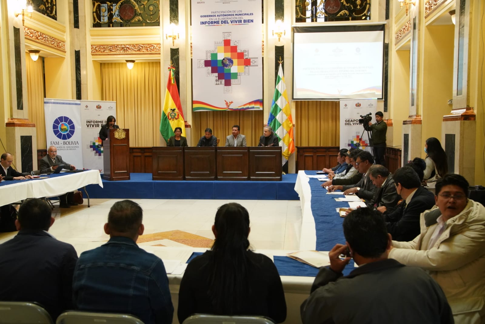 Vicepresidente David Choquehuanca participa en el evento "Gobiernos Autónomos Municipales en la Elaboración del Informe del Vivir Bien”
