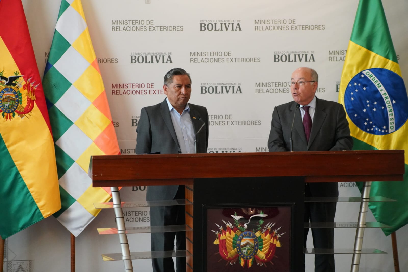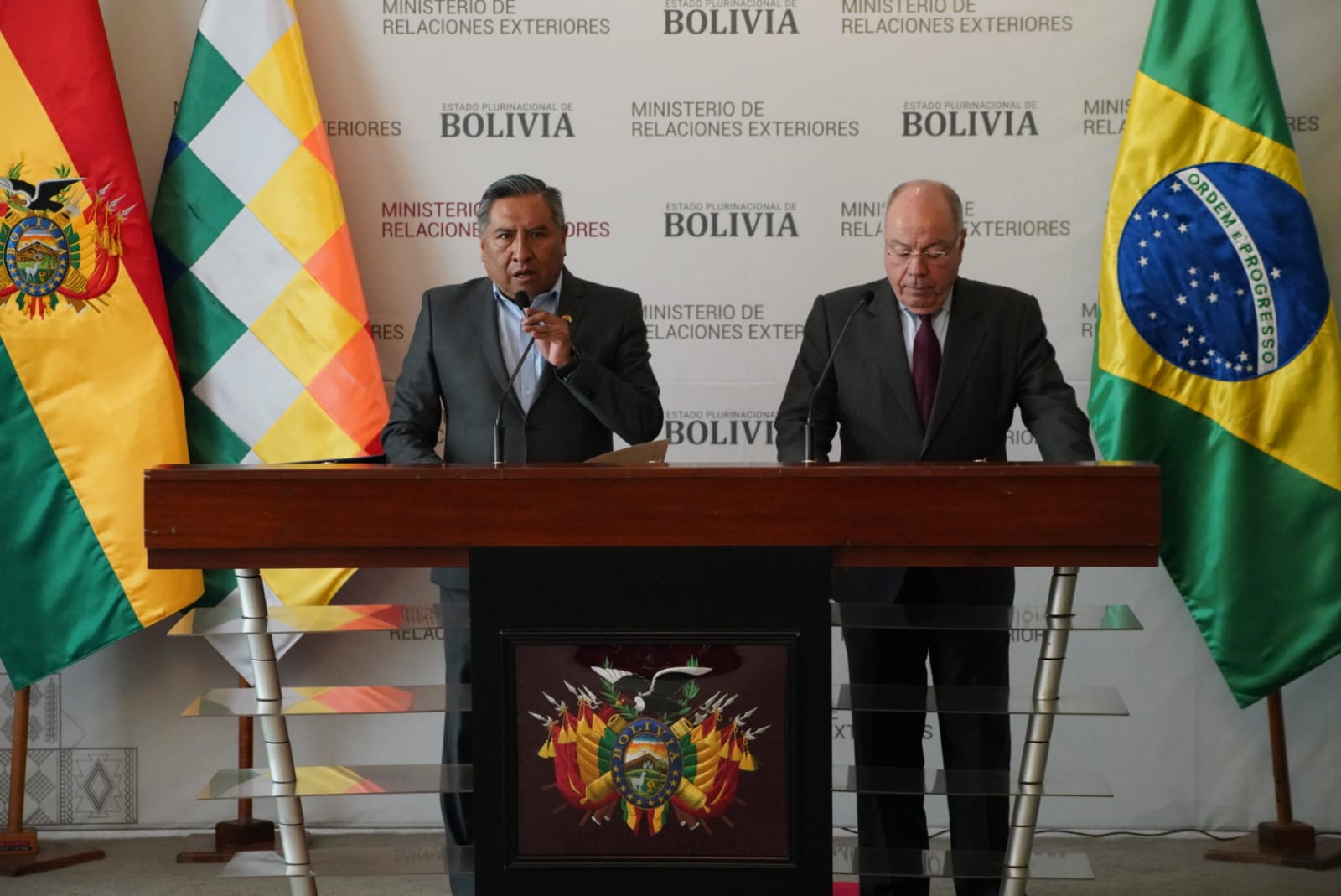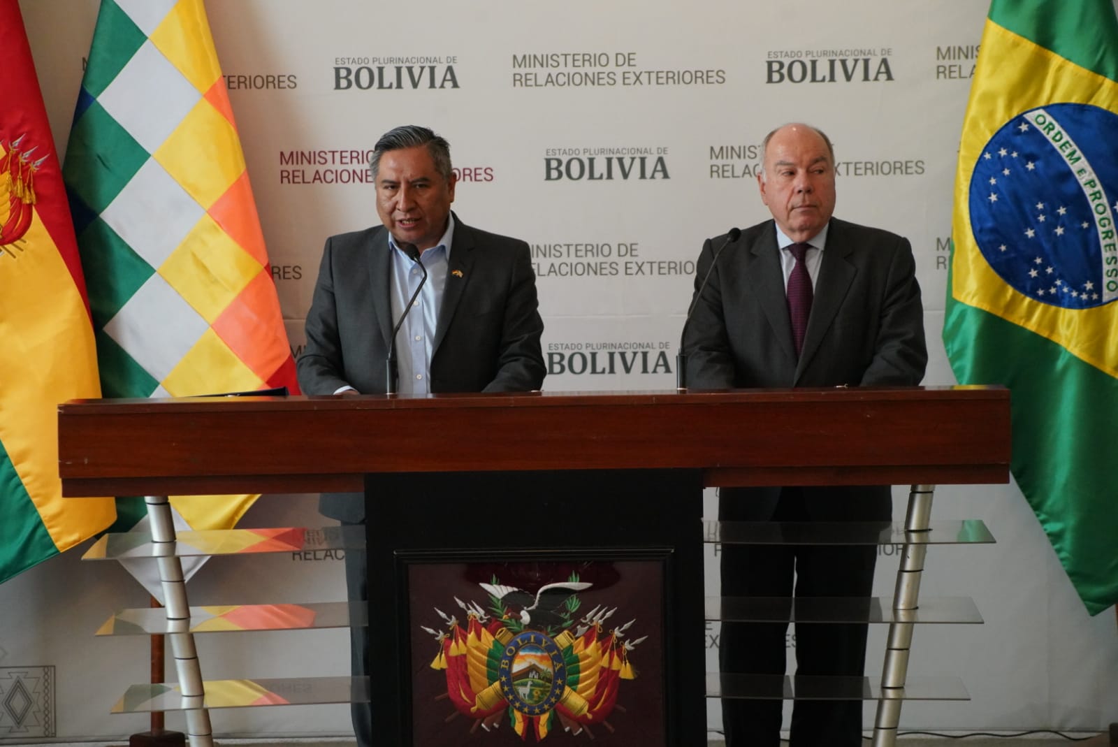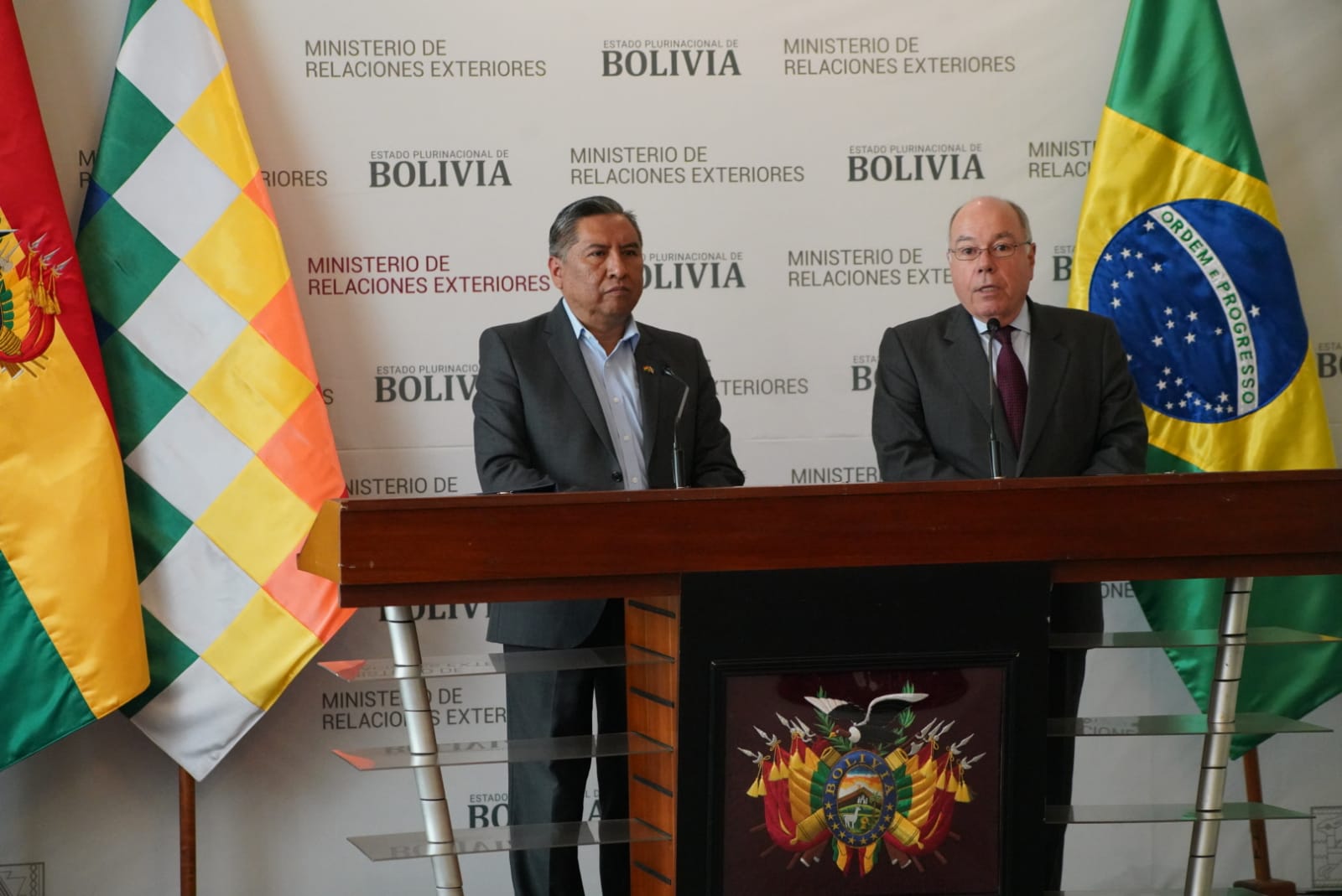 Conferencia de prensa conjunta entre el Canciller de Bolivia, Rogelio Mayta, y el Ministro de Relaciones Exteriores de la República de Brasil, Mauro Vieira