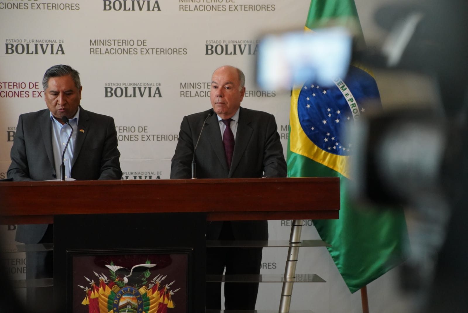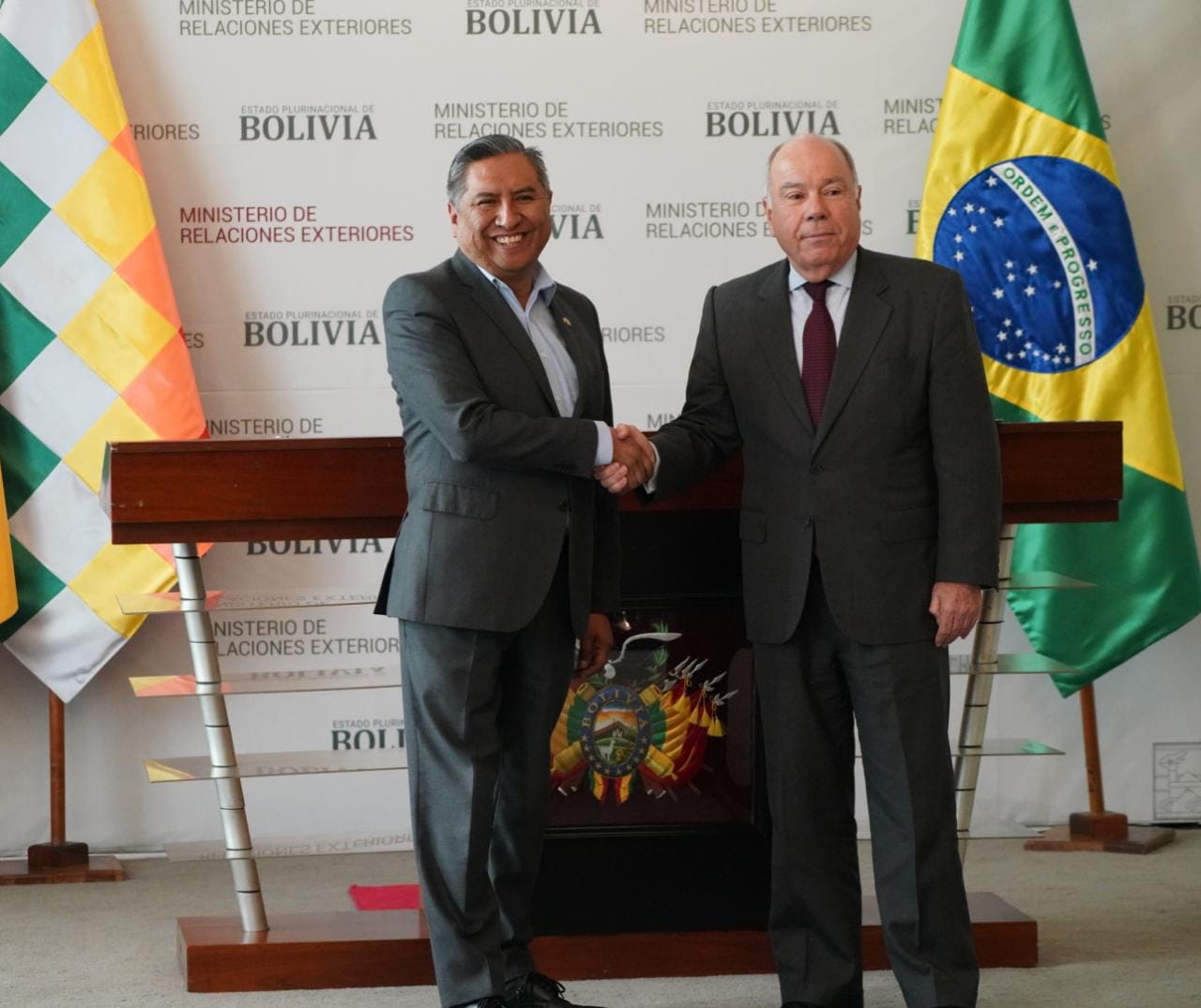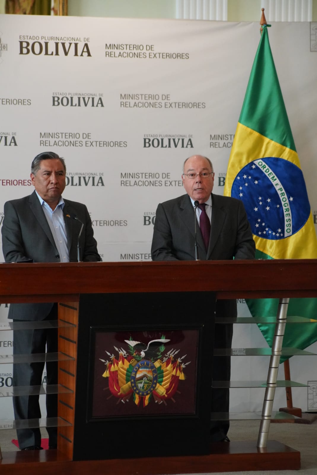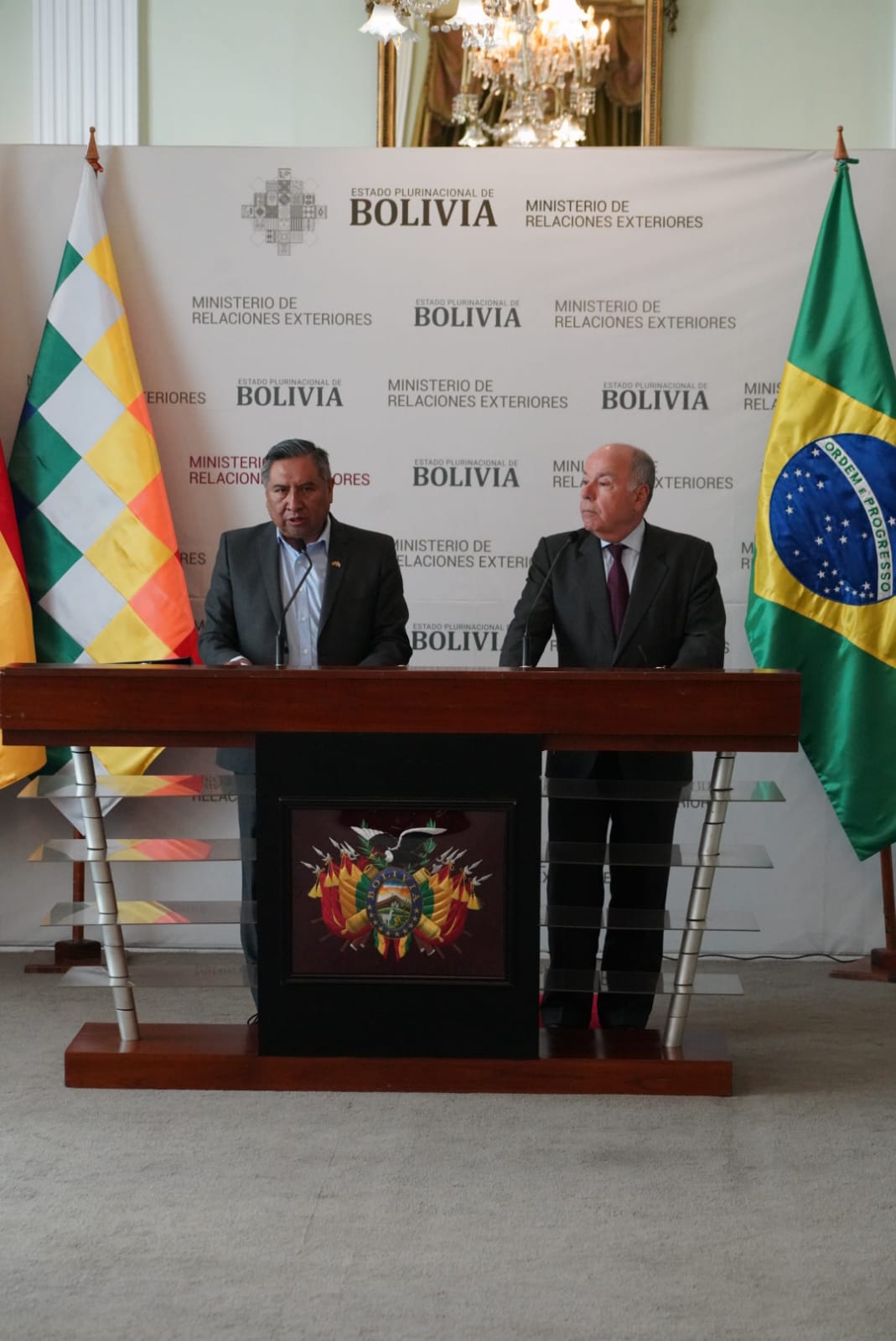 Conferencia de prensa conjunta entre el Canciller de Bolivia, Rogelio Mayta, y el Ministro de Relaciones Exteriores de la República de Brasil, Mauro Vieira