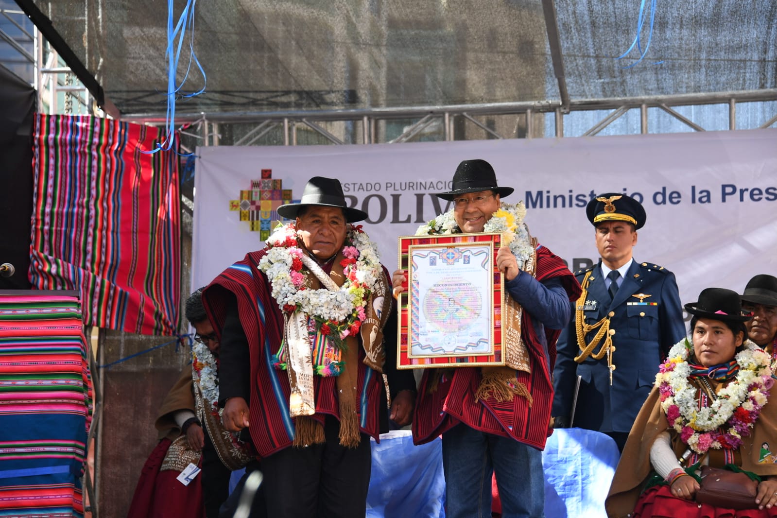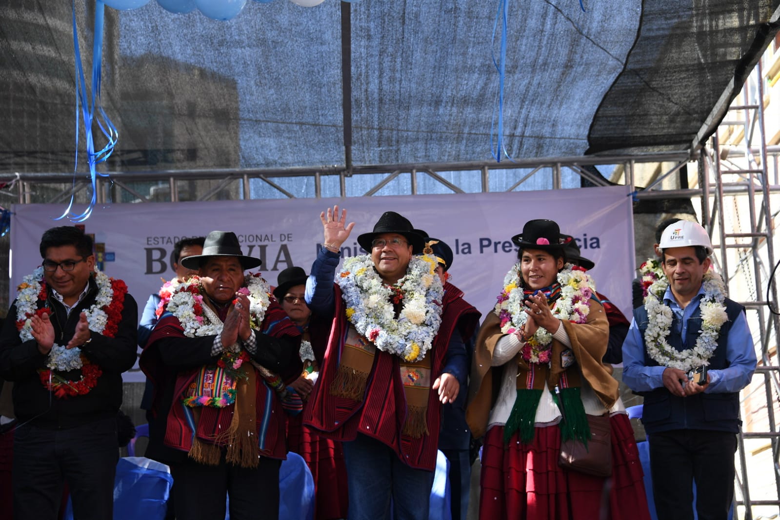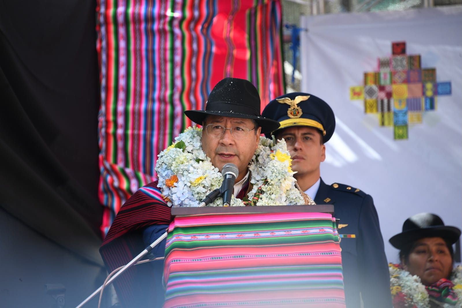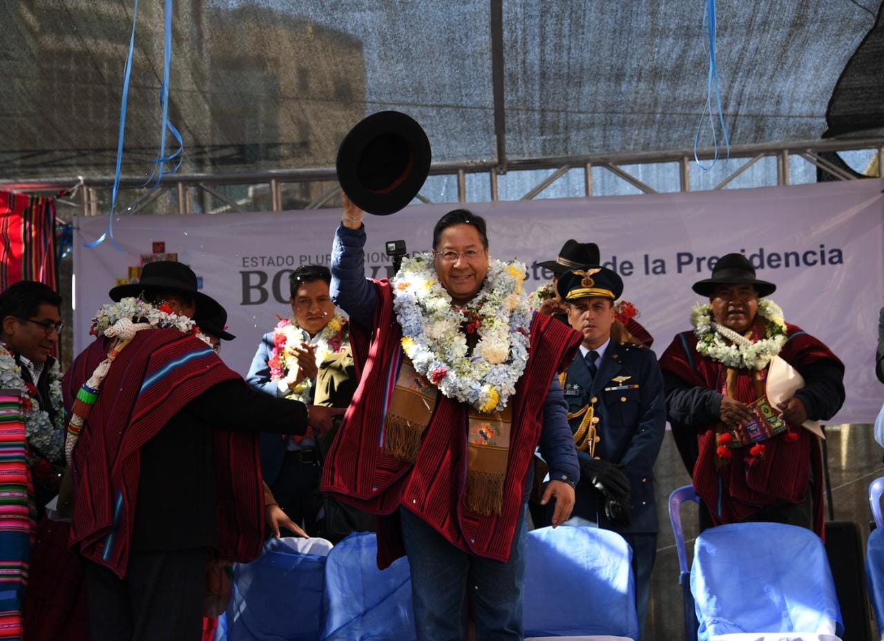 Presidente del Estado, Luis Arce en la entrega de Sede de la Federación Campesina Bartolina Sisa y Tupac Katari