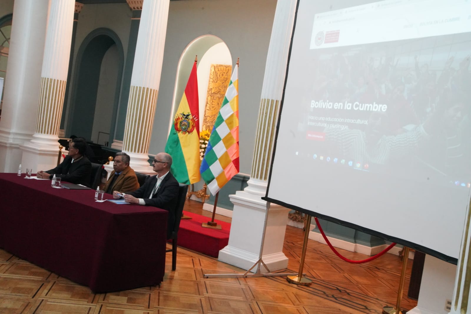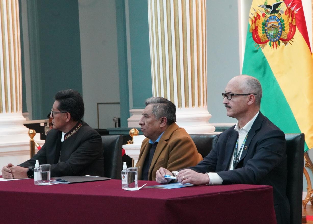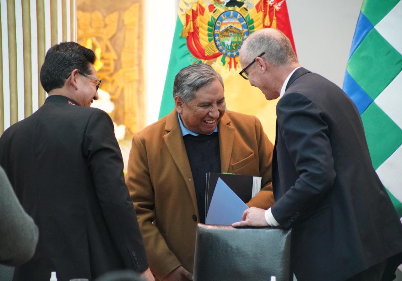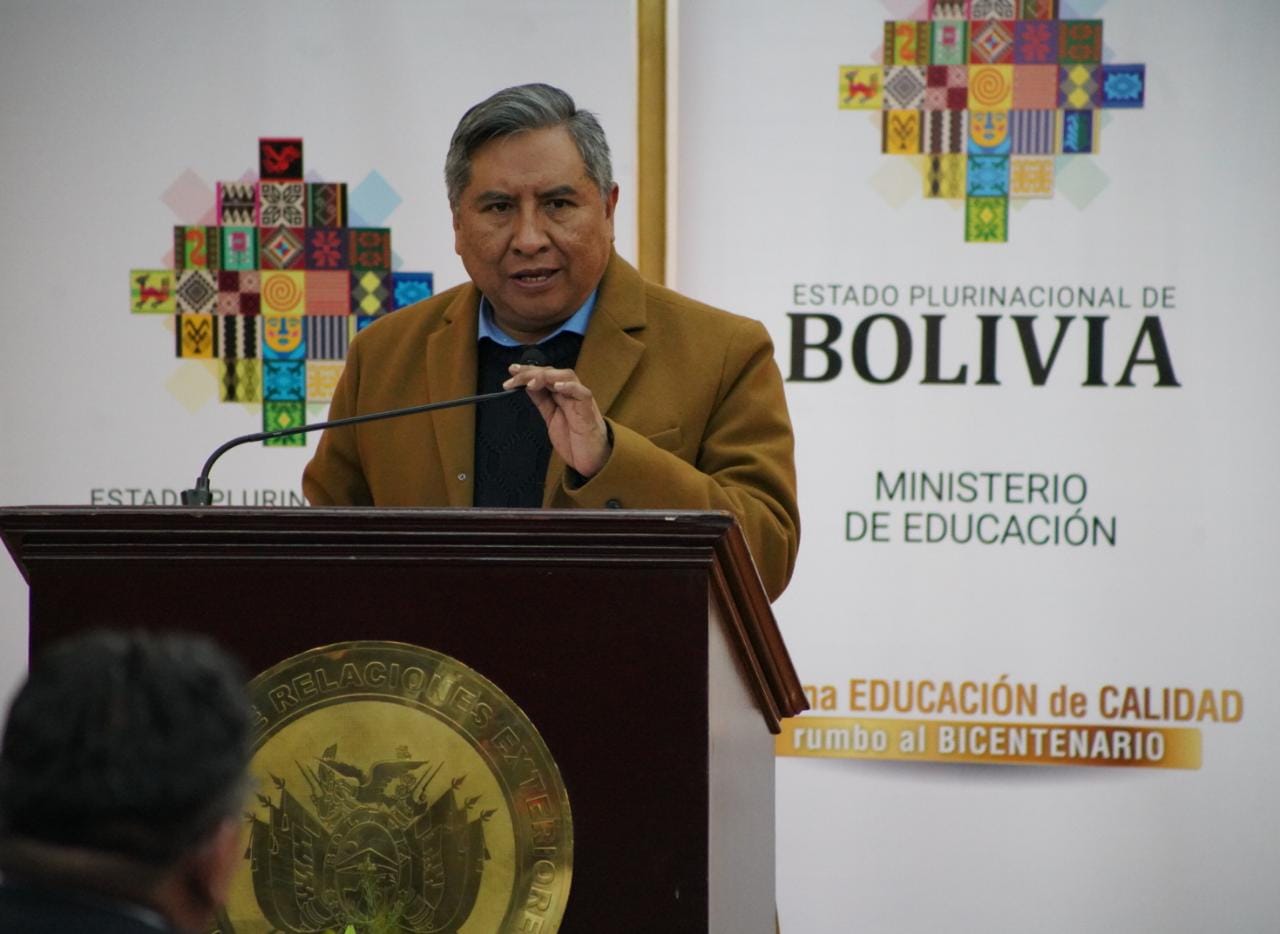 El ministro de Educación, Edgar Pary Chambi, y el ministro de Relaciones Exteriores, Rogelio Mayta, participa de la presentación y entrega de la página Web de la Cumbre de las Naciones Unidas sobre la transformación de la Educación. Fotos: Jorge Mamani