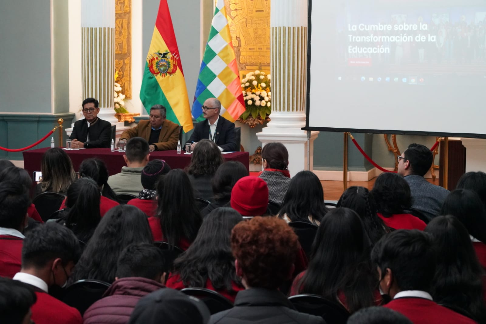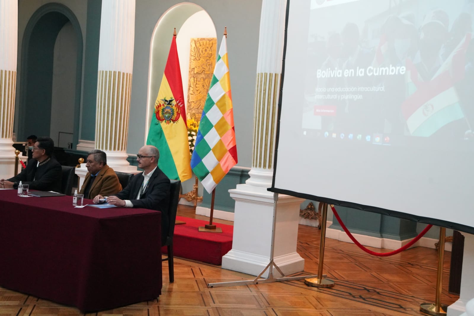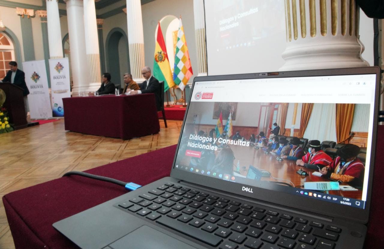 El ministro de Educación, Edgar Pary Chambi, y el ministro de Relaciones Exteriores, Rogelio Mayta, participa de la presentación y entrega de la página Web de la Cumbre de las Naciones Unidas sobre la transformación de la Educación. Fotos: Jorge Mamani