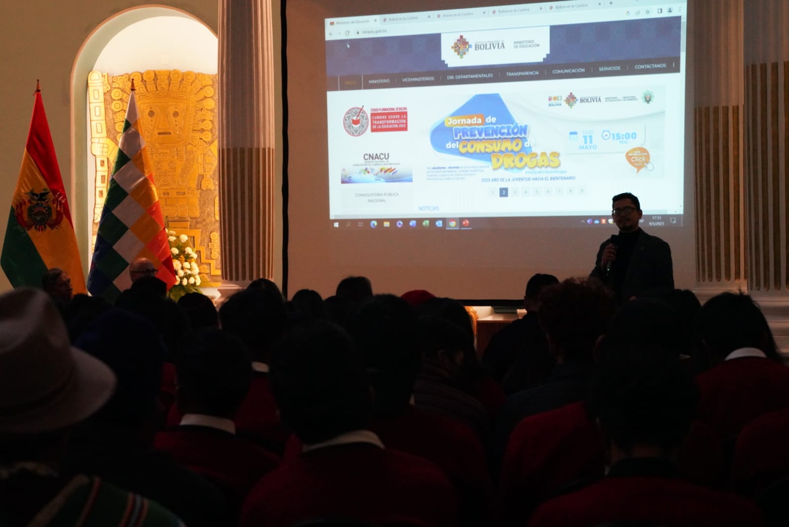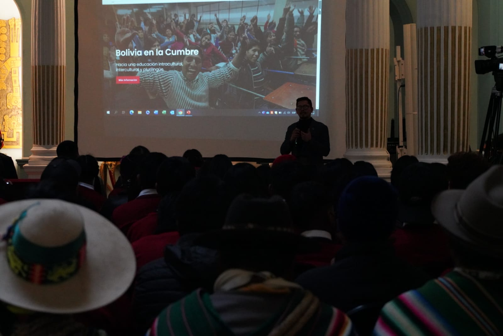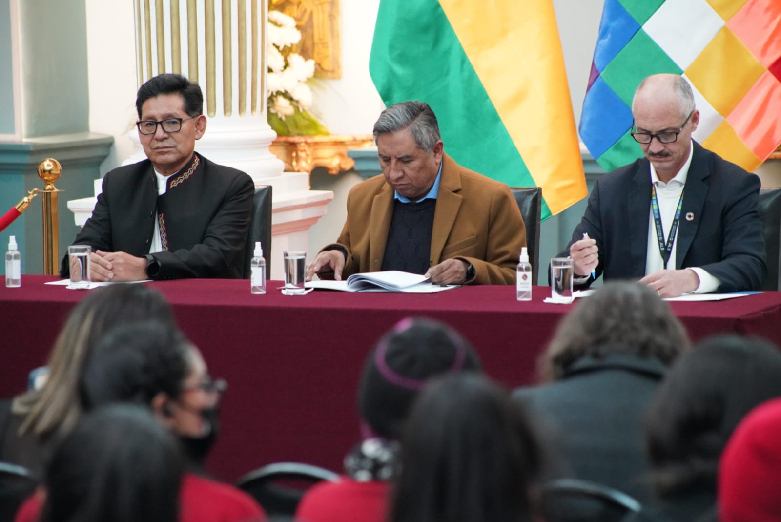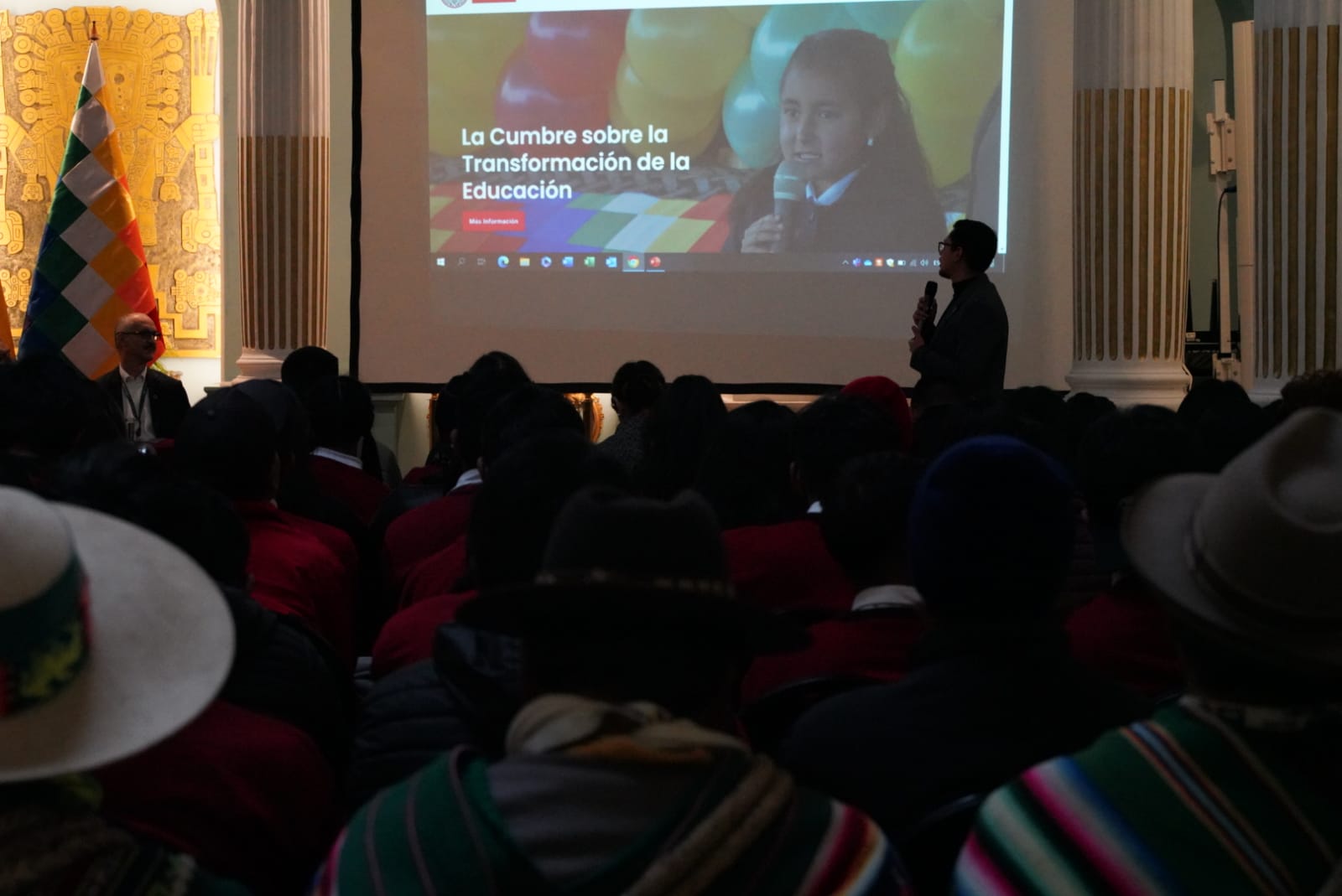El ministro de Educación, Edgar Pary Chambi, y el ministro de Relaciones Exteriores, Rogelio Mayta, participa de la presentación y entrega de la página Web de la Cumbre de las Naciones Unidas sobre la transformación de la Educación. Fotos: Jorge Mamani