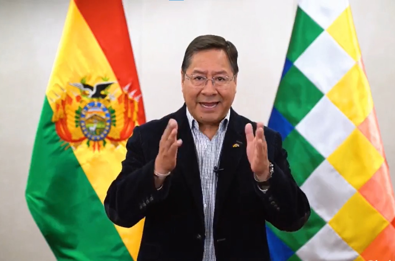 Presidente del Estado Luis Arce brinda mensaje al país, a dos años y medio de su gestión de Gobierno. Fuente: Comunicación Presidencial