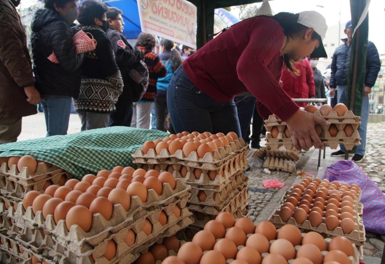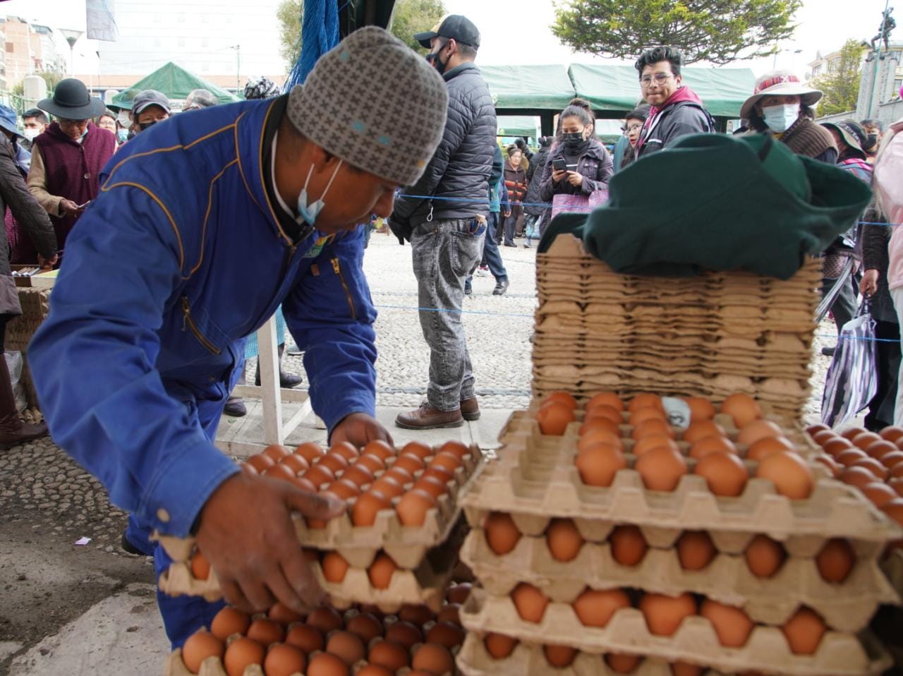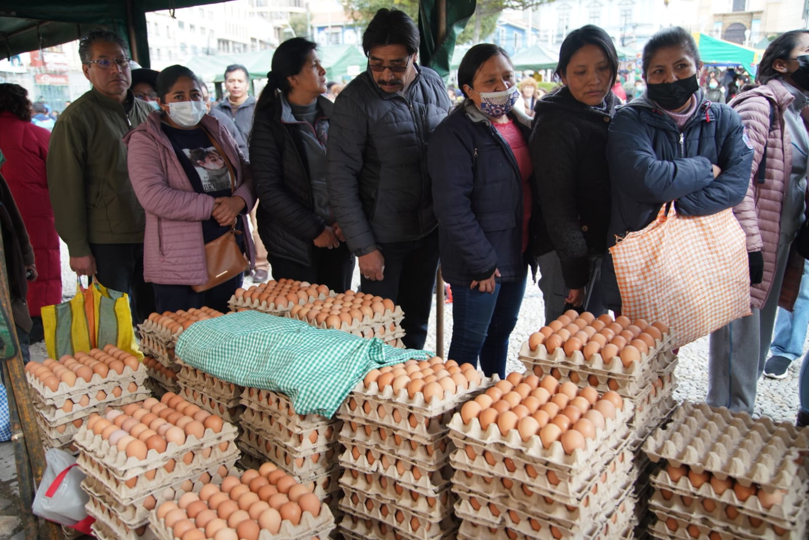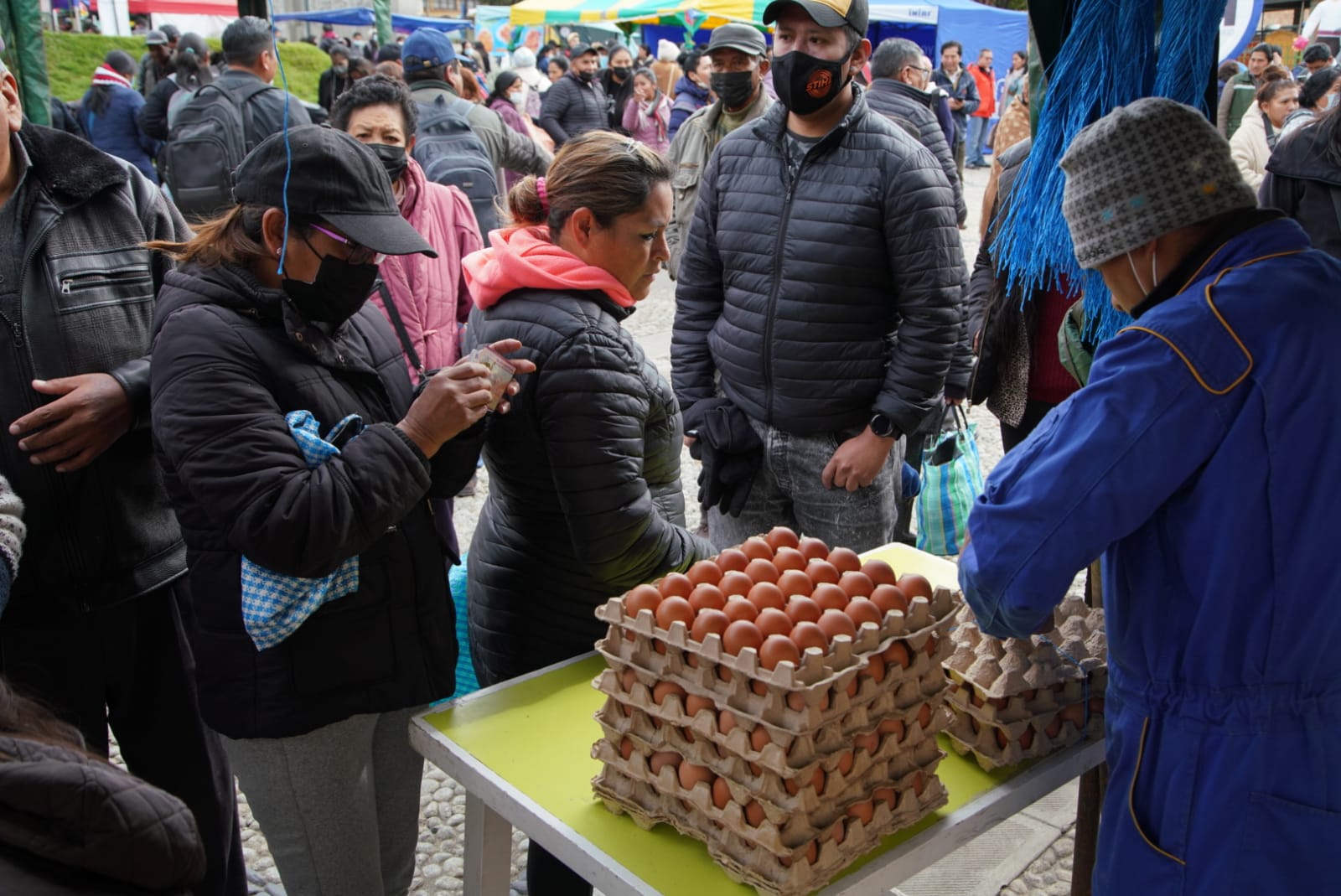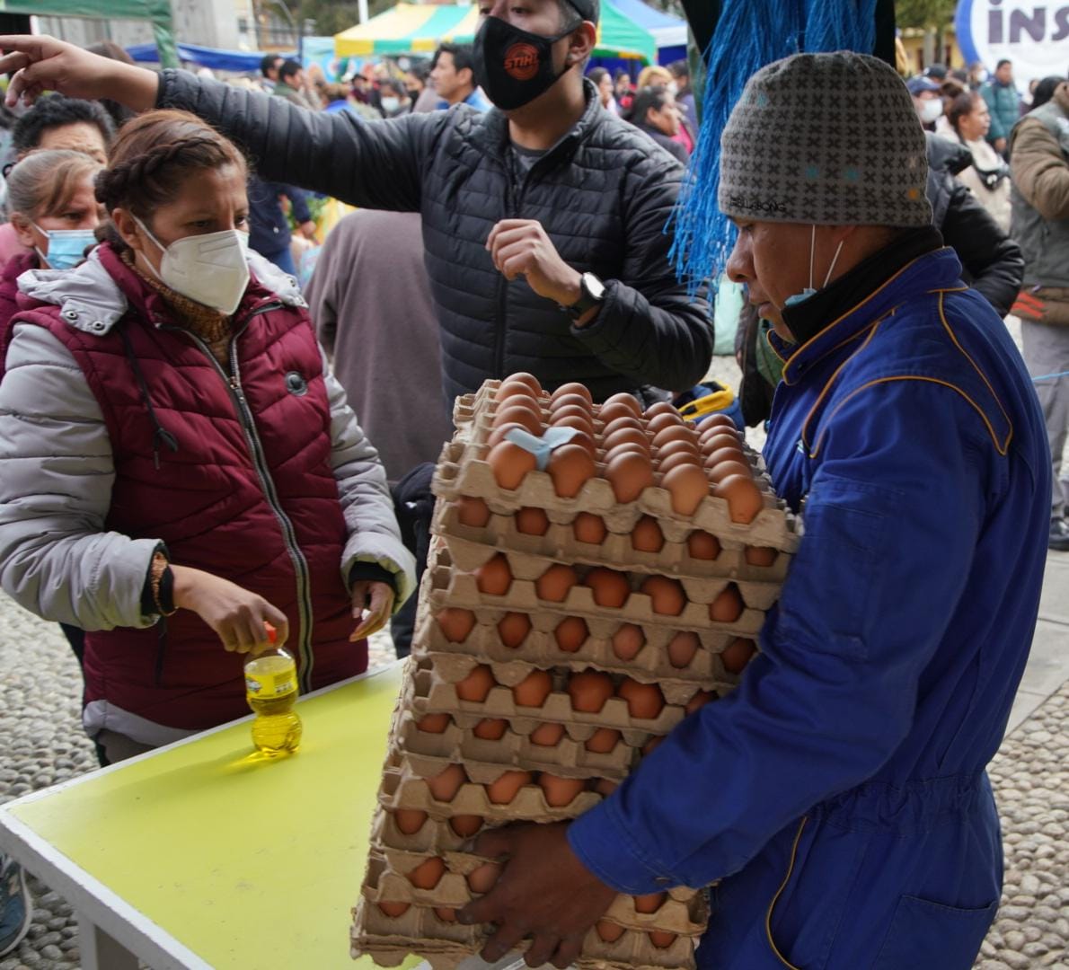 Inicio de la feria del huevo, carnes, hortalizas, tubérculos y frutas, que se realiza en la plaza Alonso de Mendoza, organizado por Ministerio de Desarrollo Rural y Tierras. Fotos: Jorge Mamani
